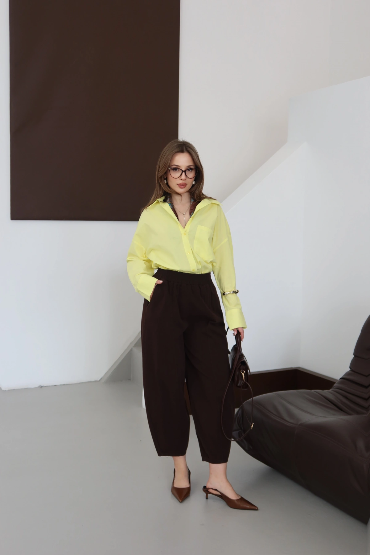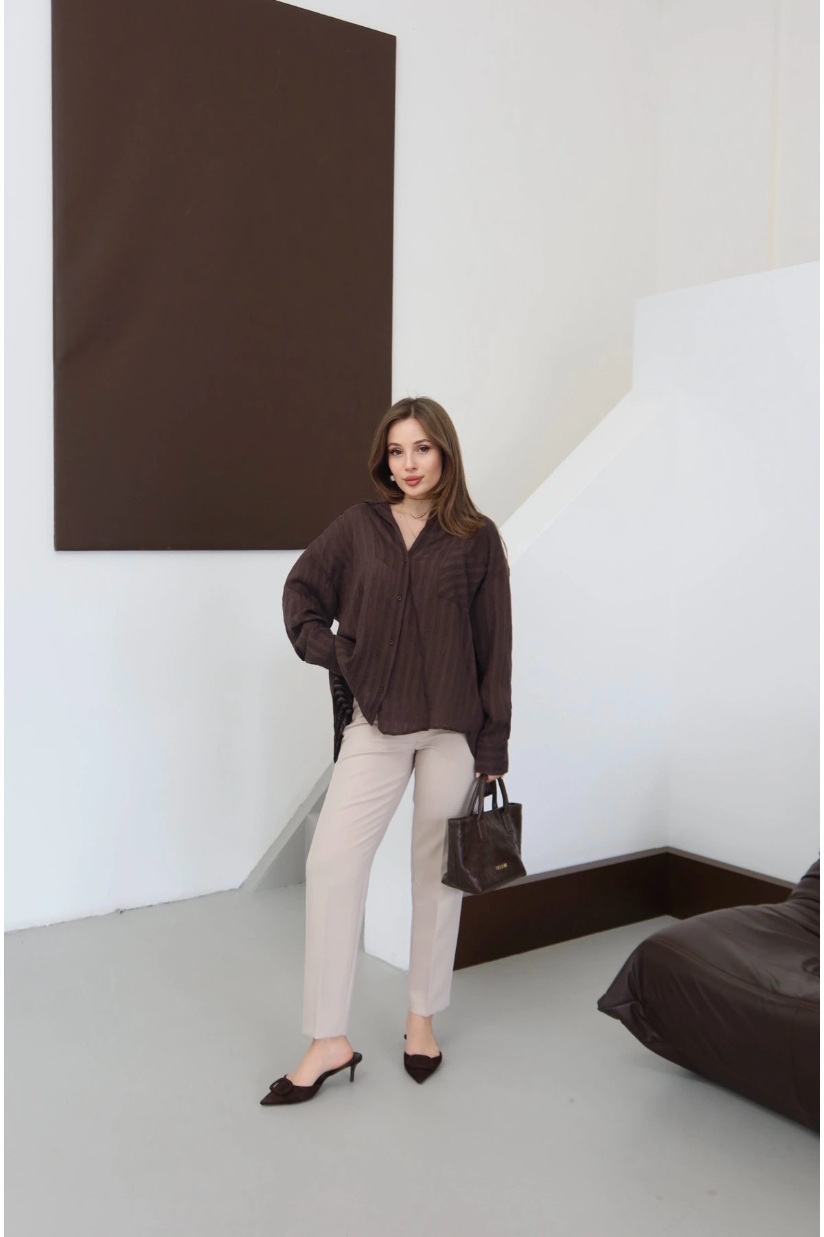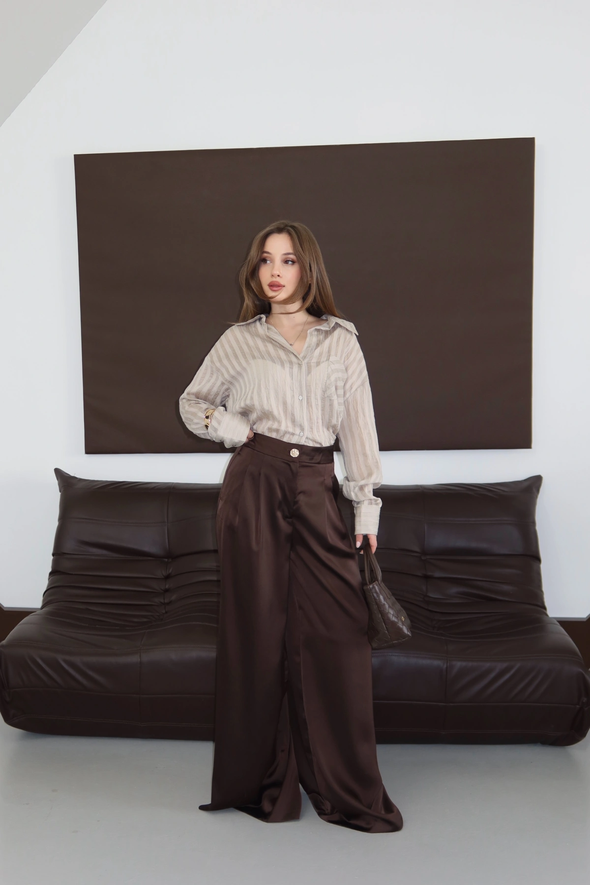 Saten Yüzeyli Dökümlü Pantolon Kahve