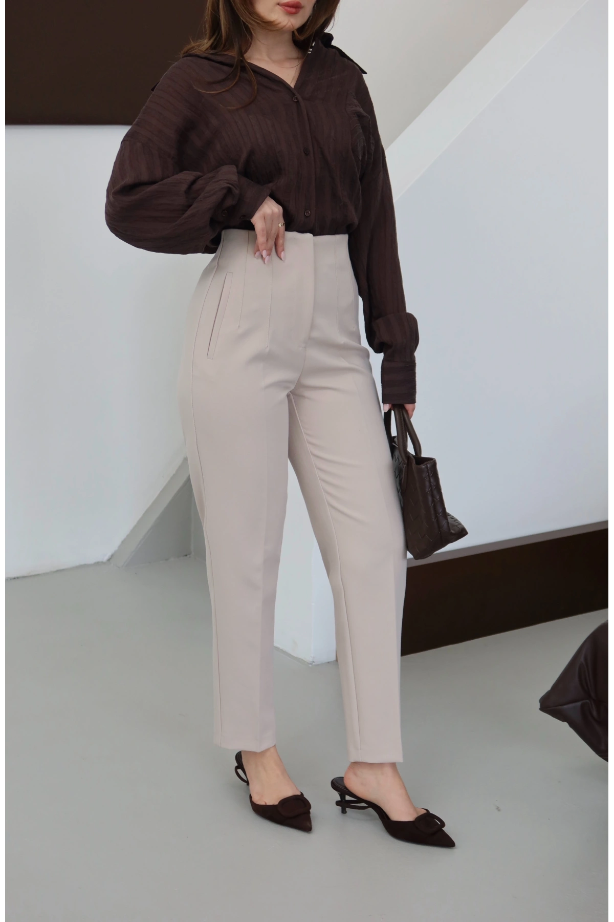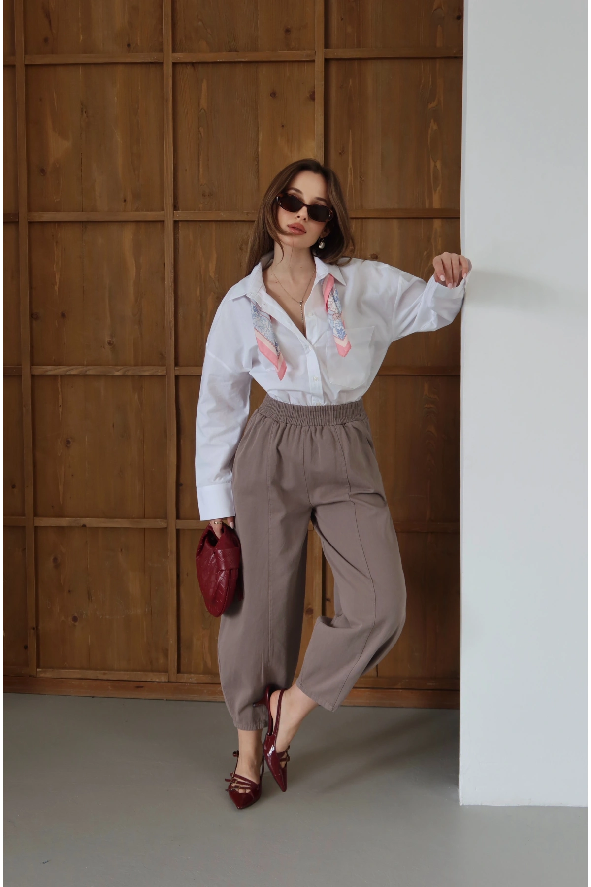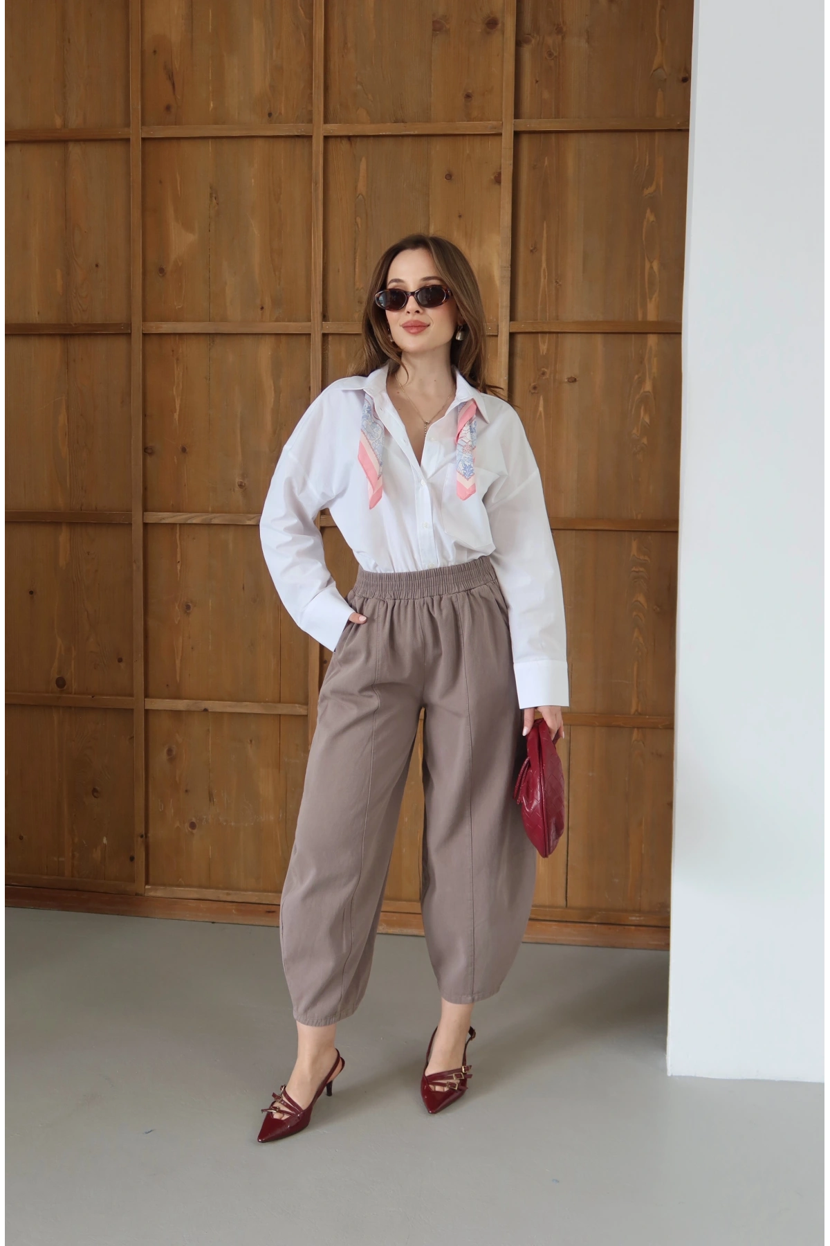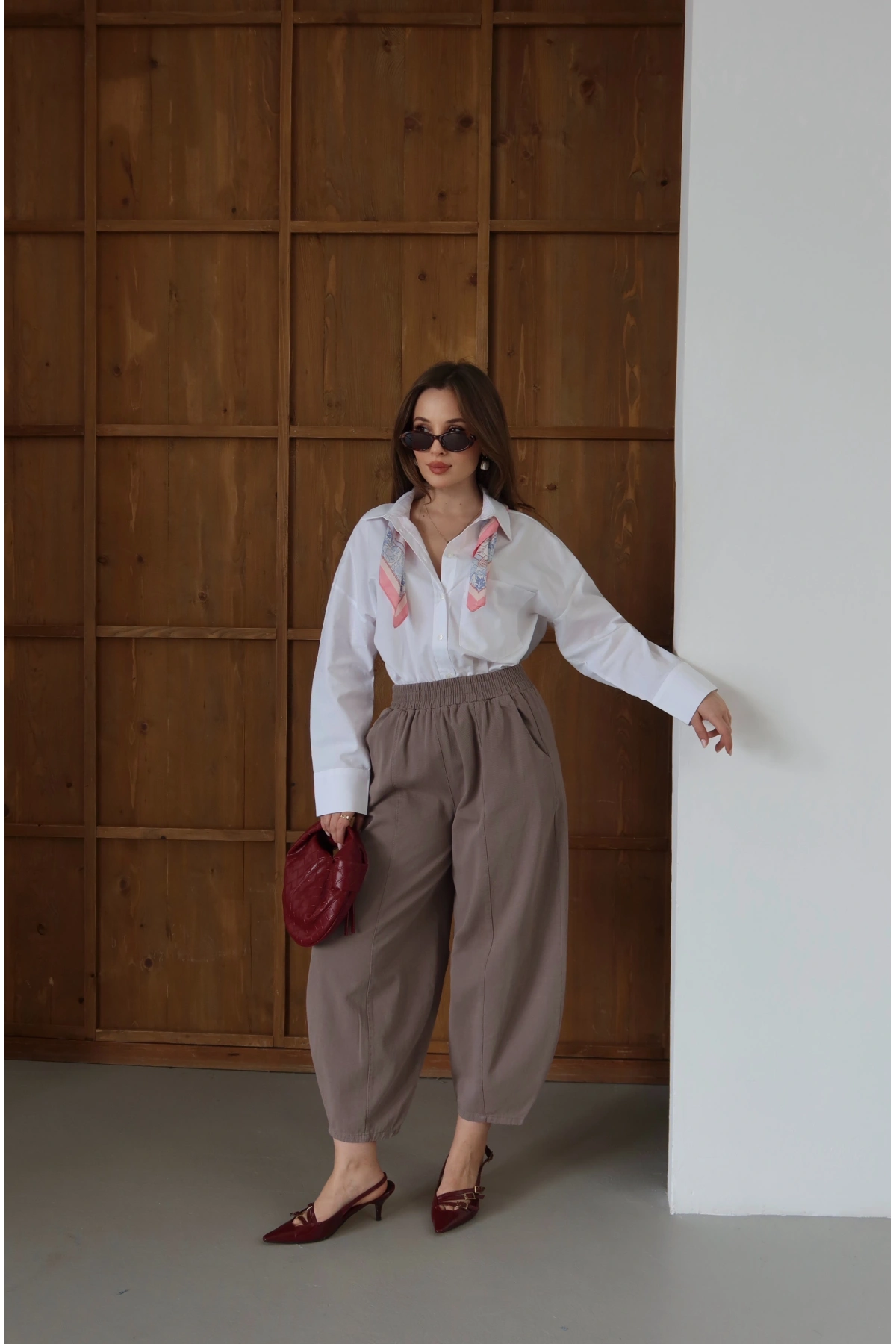 Çımalı Gabardin Şalvar Pantolon Vizon