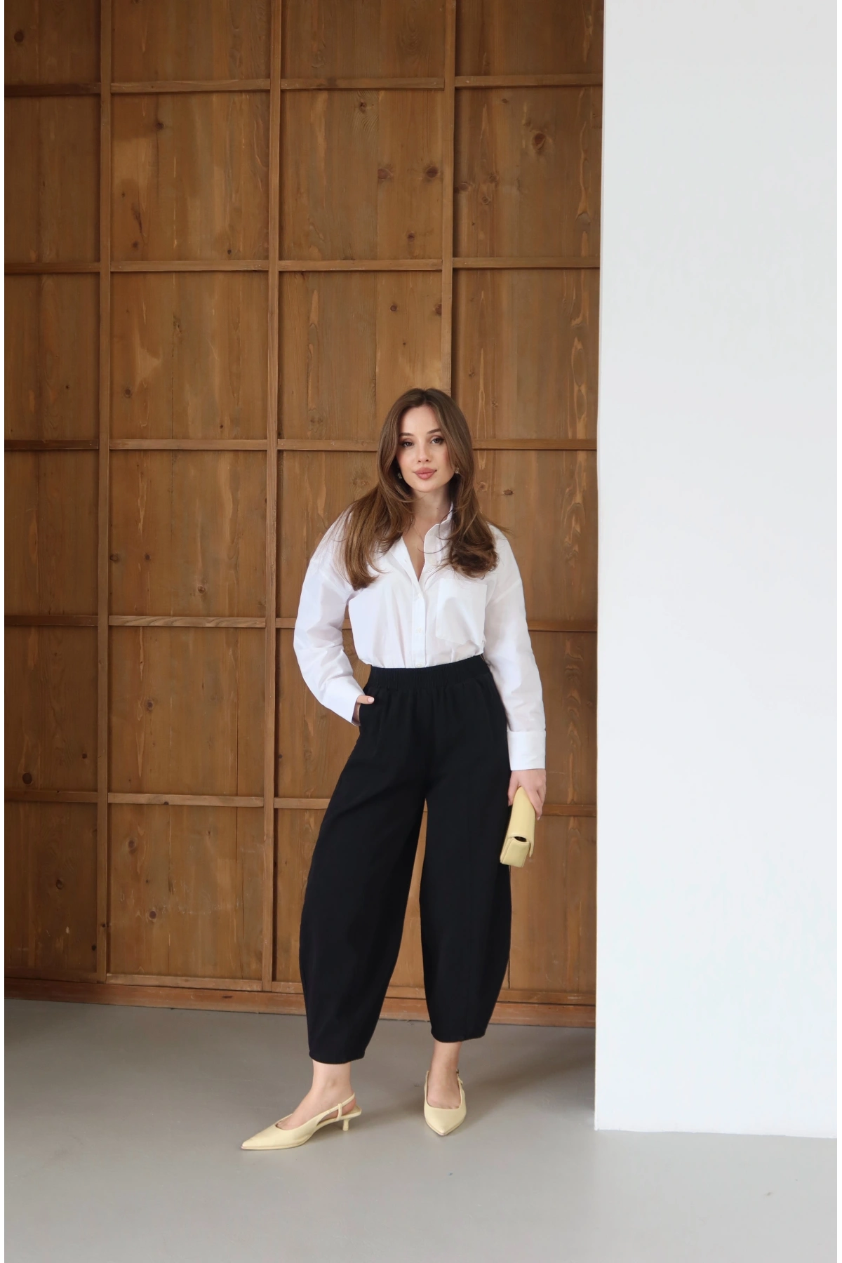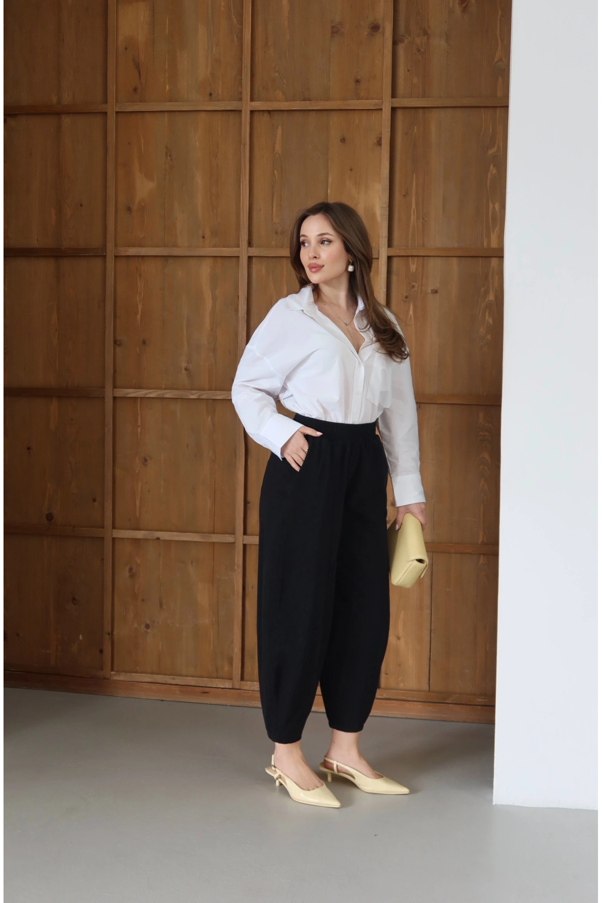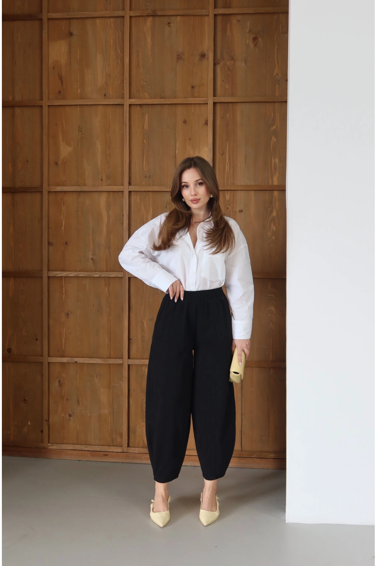 Çımalı Gabardin Şalvar Pantolon Siyah