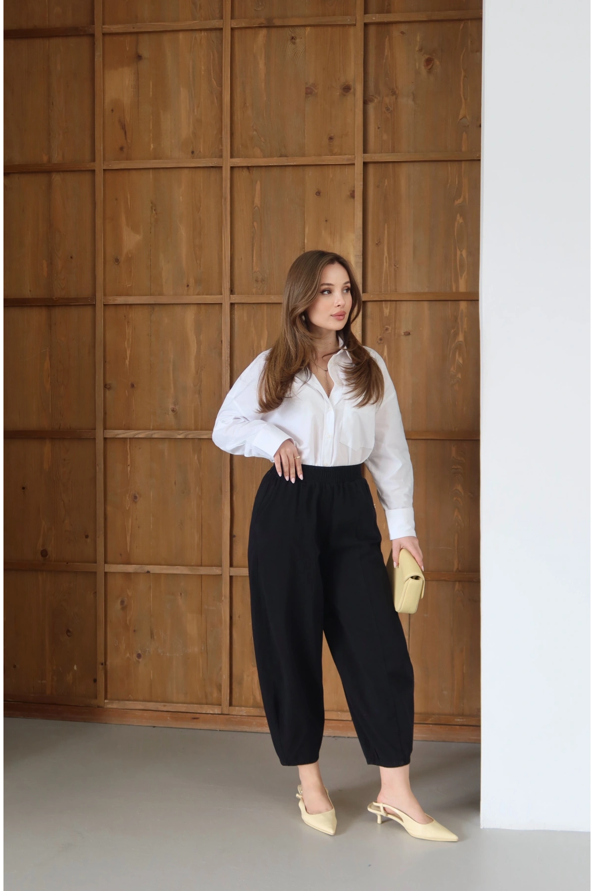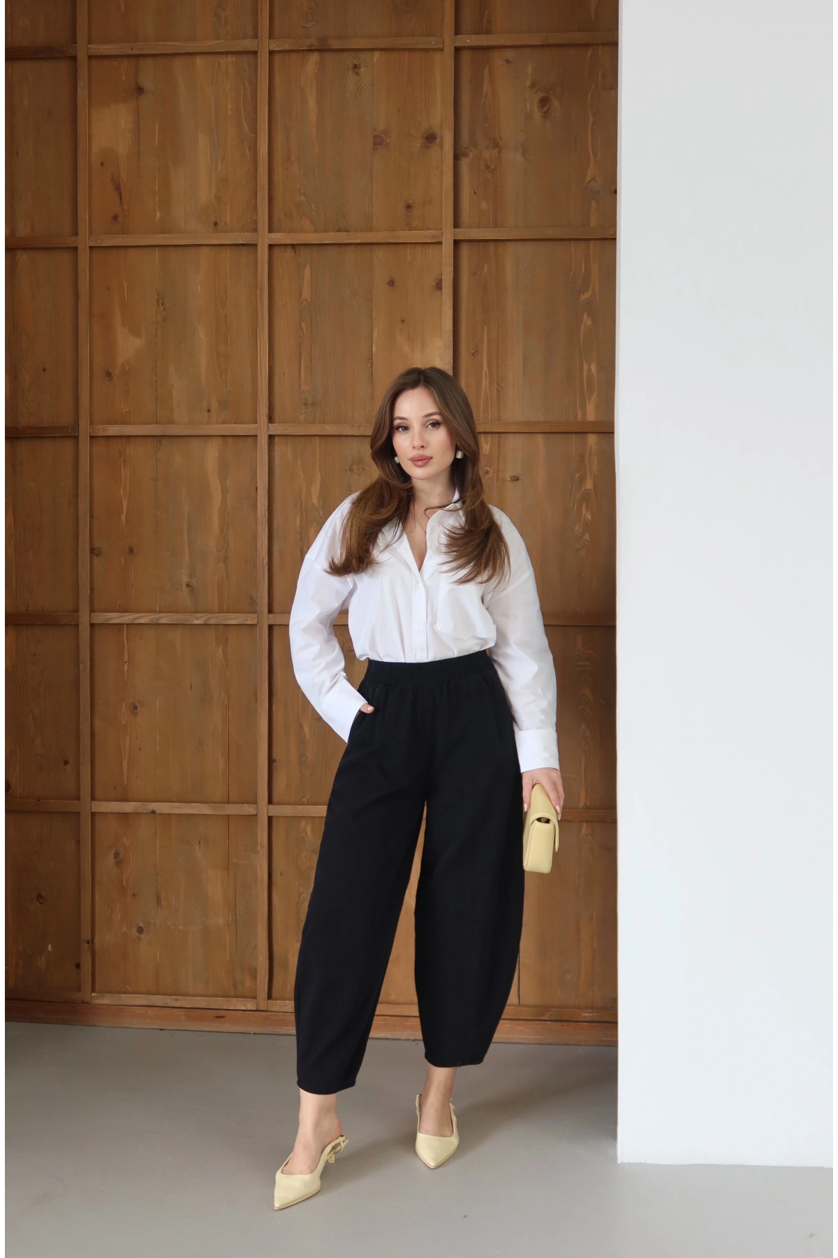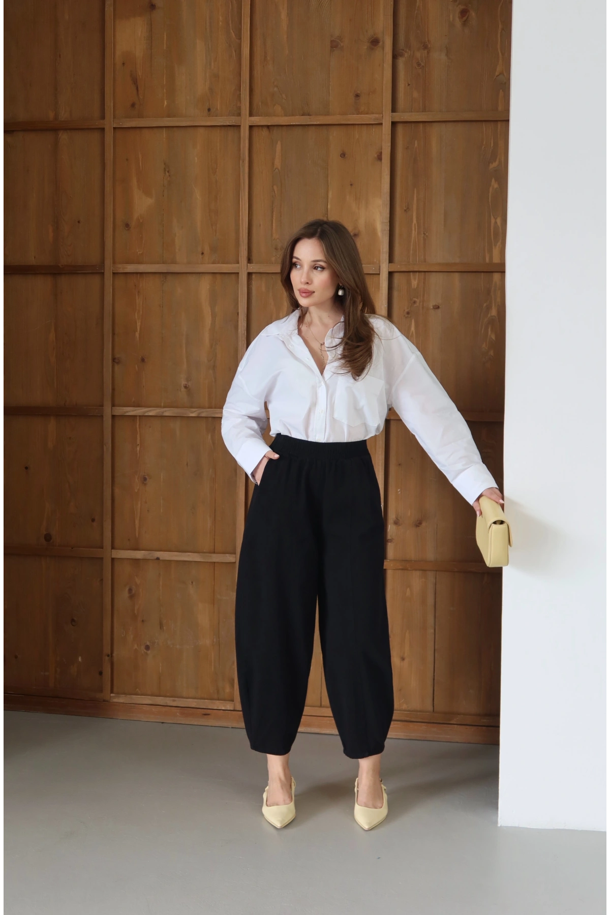 Çımalı Gabardin Şalvar Pantolon Siyah