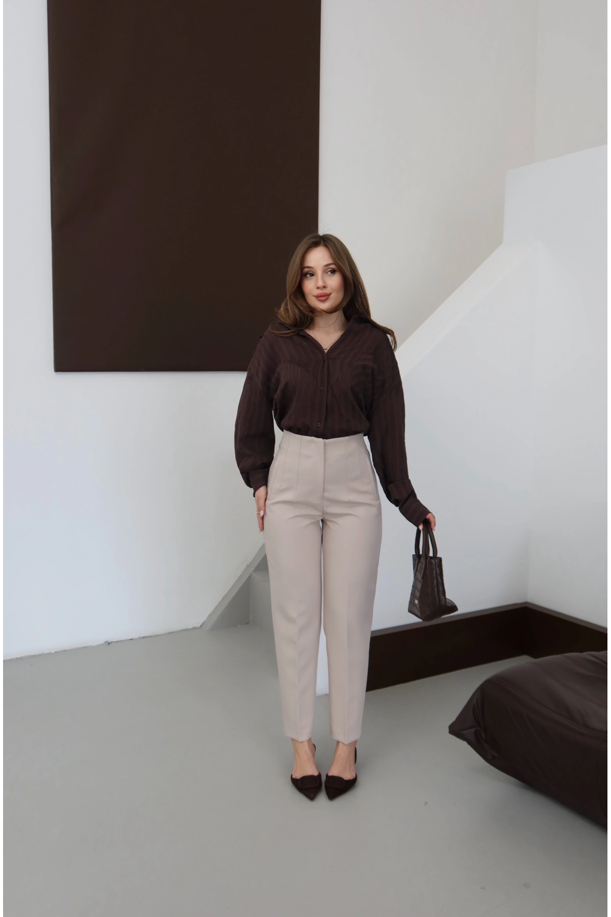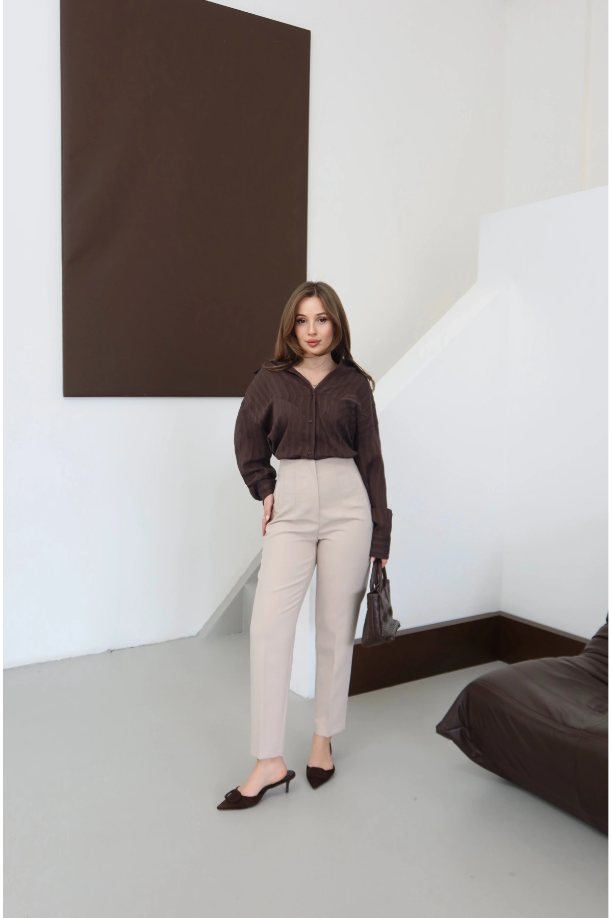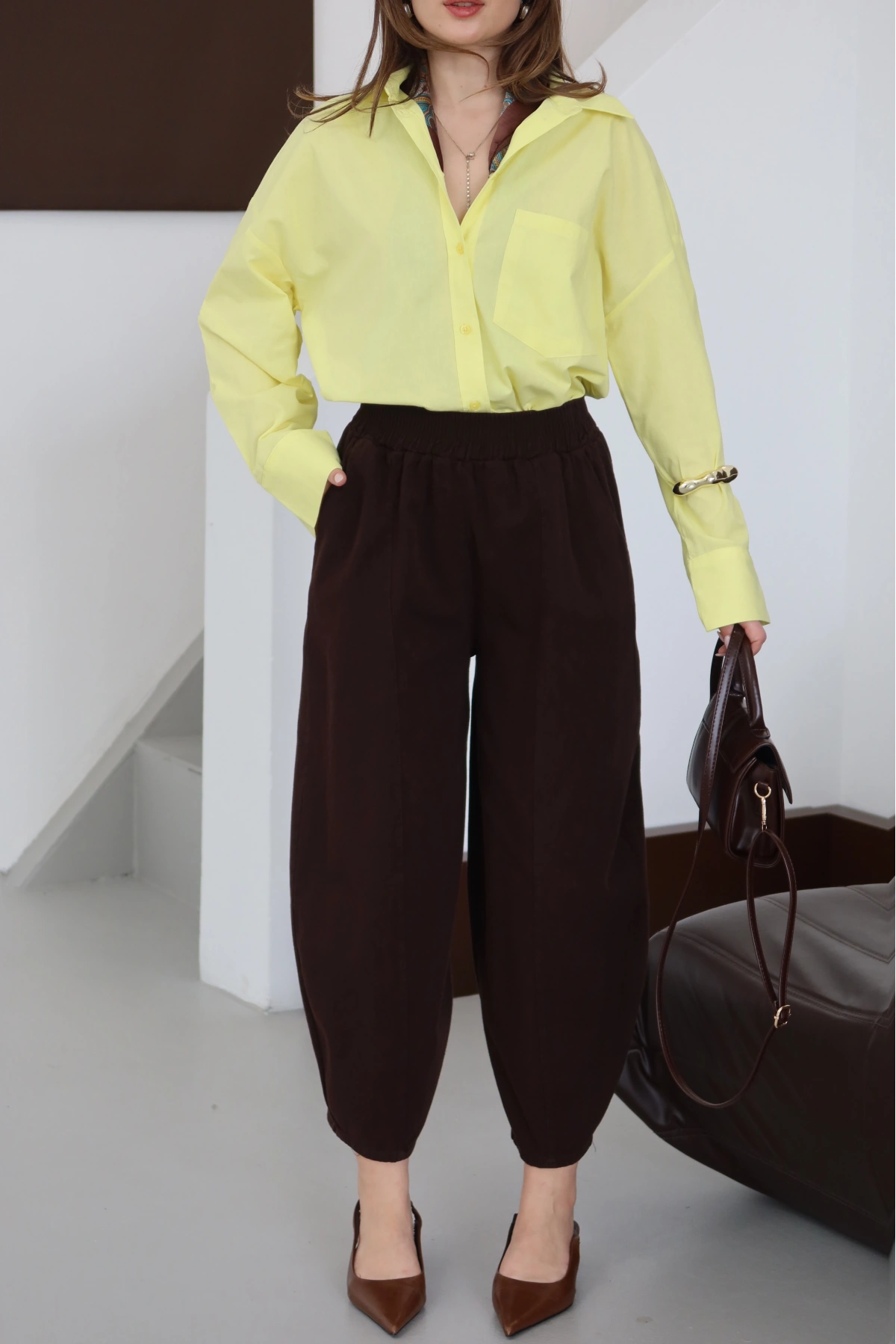 Çımalı Gabardin Şalvar Pantolon Kahve