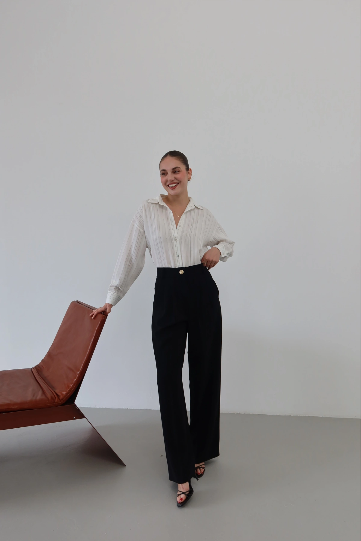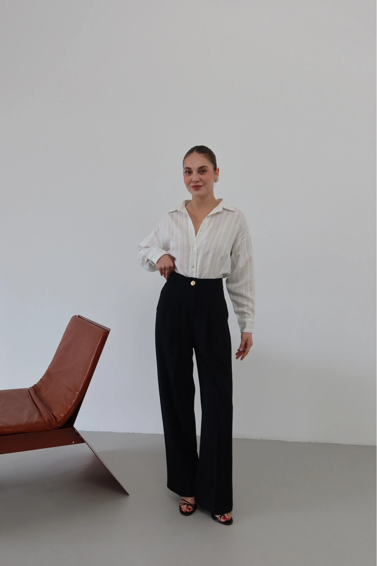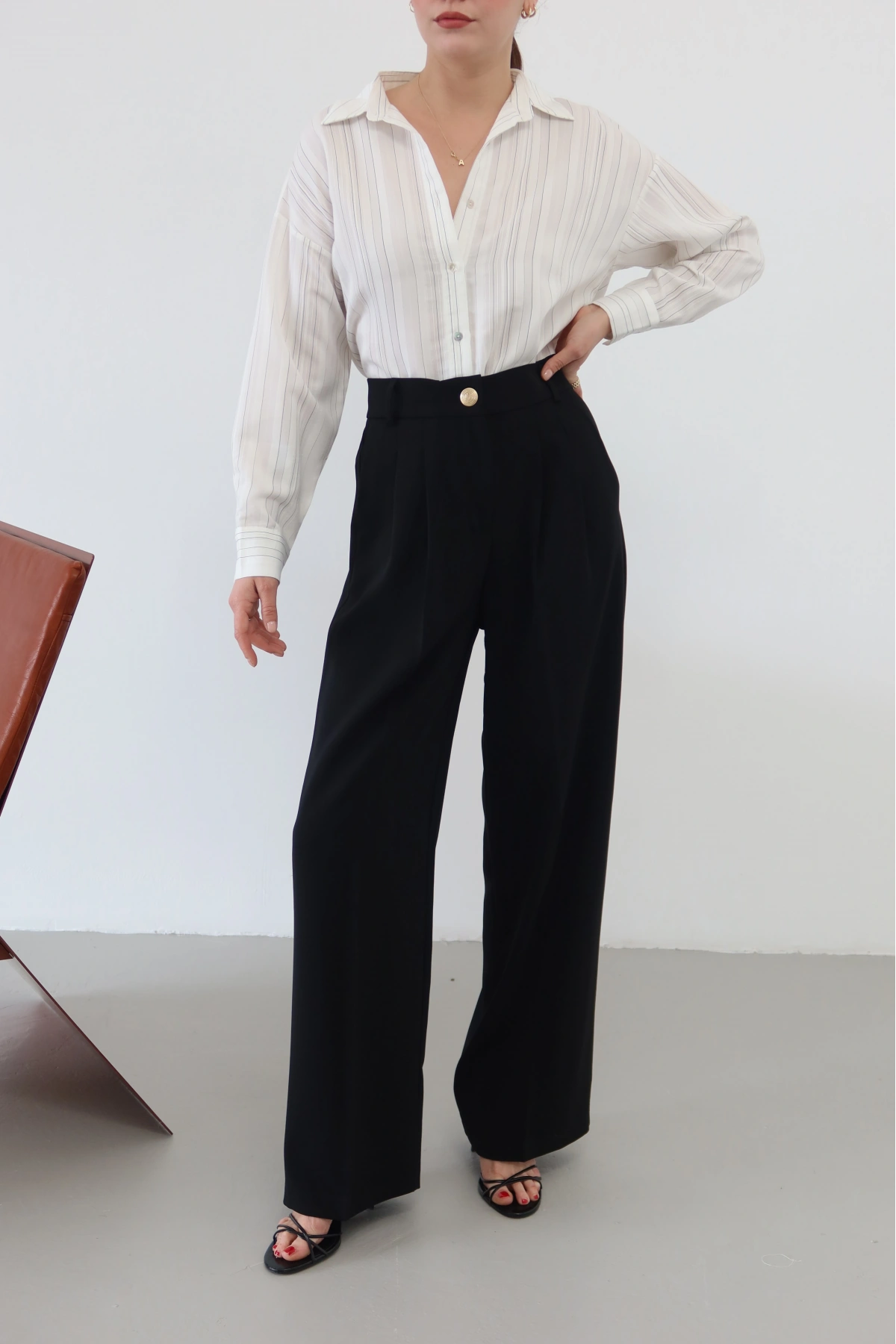 Beli Lastikli Gold Düğmeli Klasik Pantolon Siyah