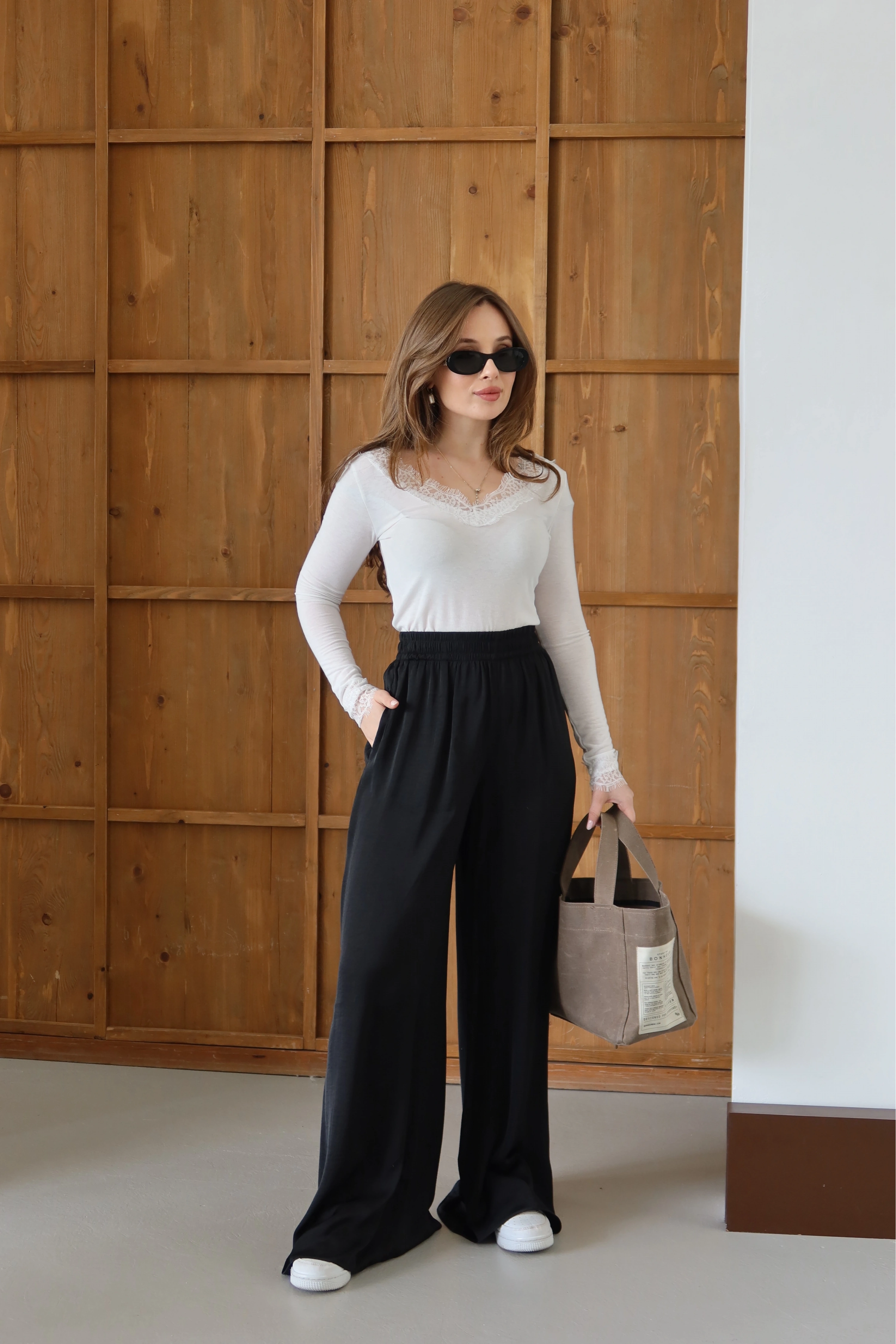 ROÉA Dökümlü Geniş Paça Pantolon, şıklık için konfordan ödün vermeyen kadınların vazgeçilmezi olacak. Beli lastikli tasarımı sayesinde bel hattınıza mükemmel uyum sağlarken, akışkan kumaşı her adımda etrafınızda zarif bir rüzgar yaratır. Geniş paça kesimiyle bacak boyunuzu olduğundan uzun, silüetinizi ise çok daha ince gösteren bu parça, gardırobunuzun en sadık üyesi olmaya aday.