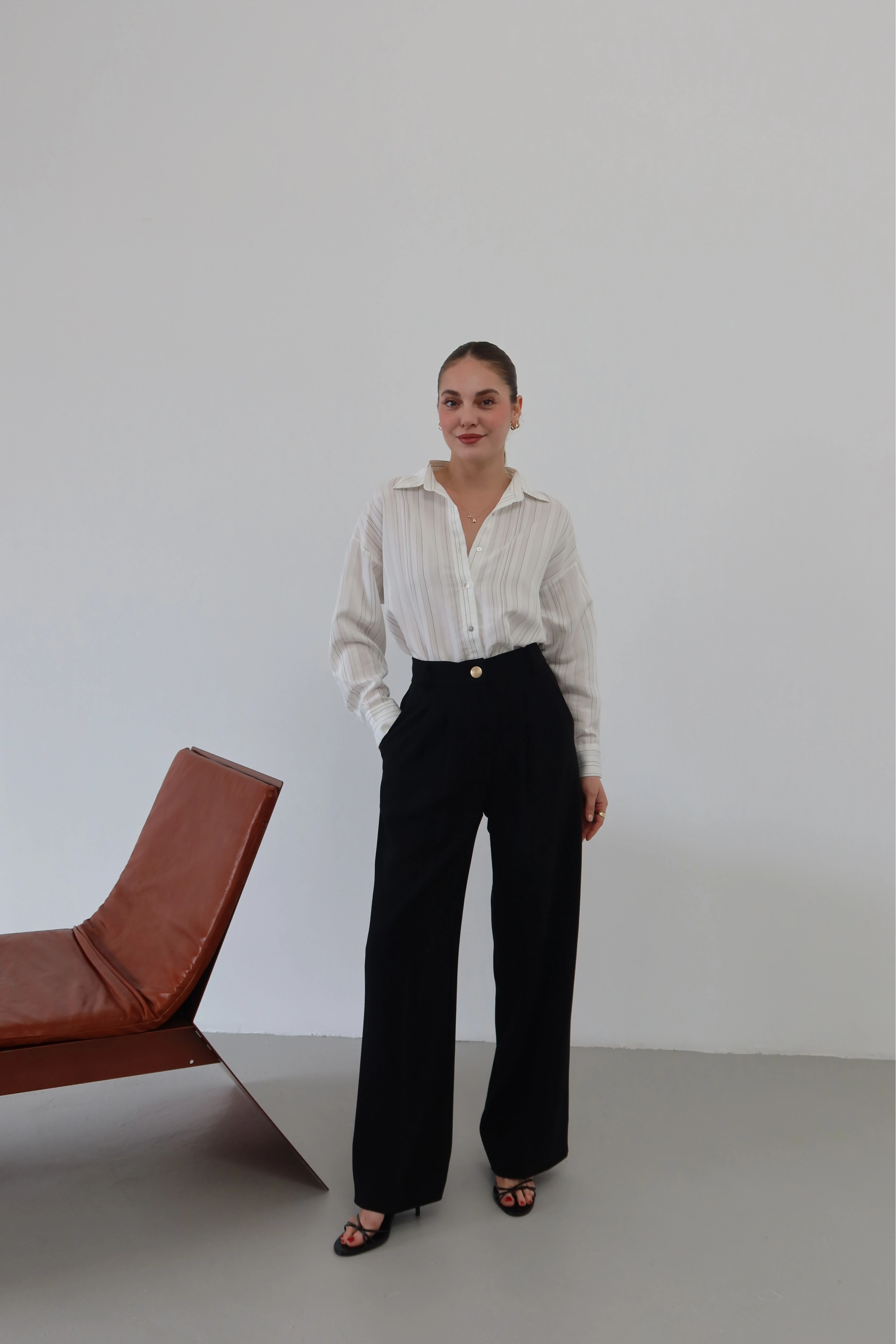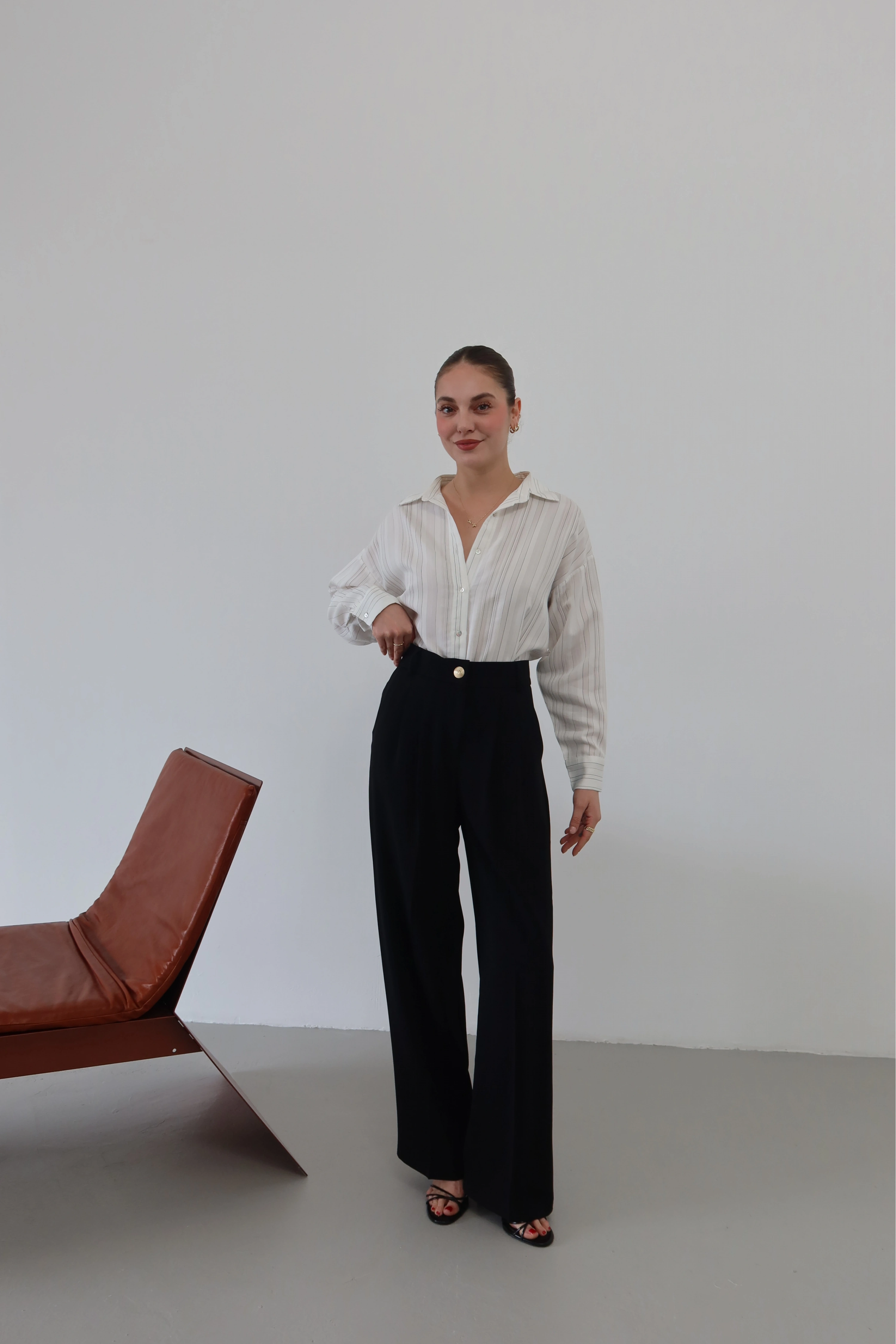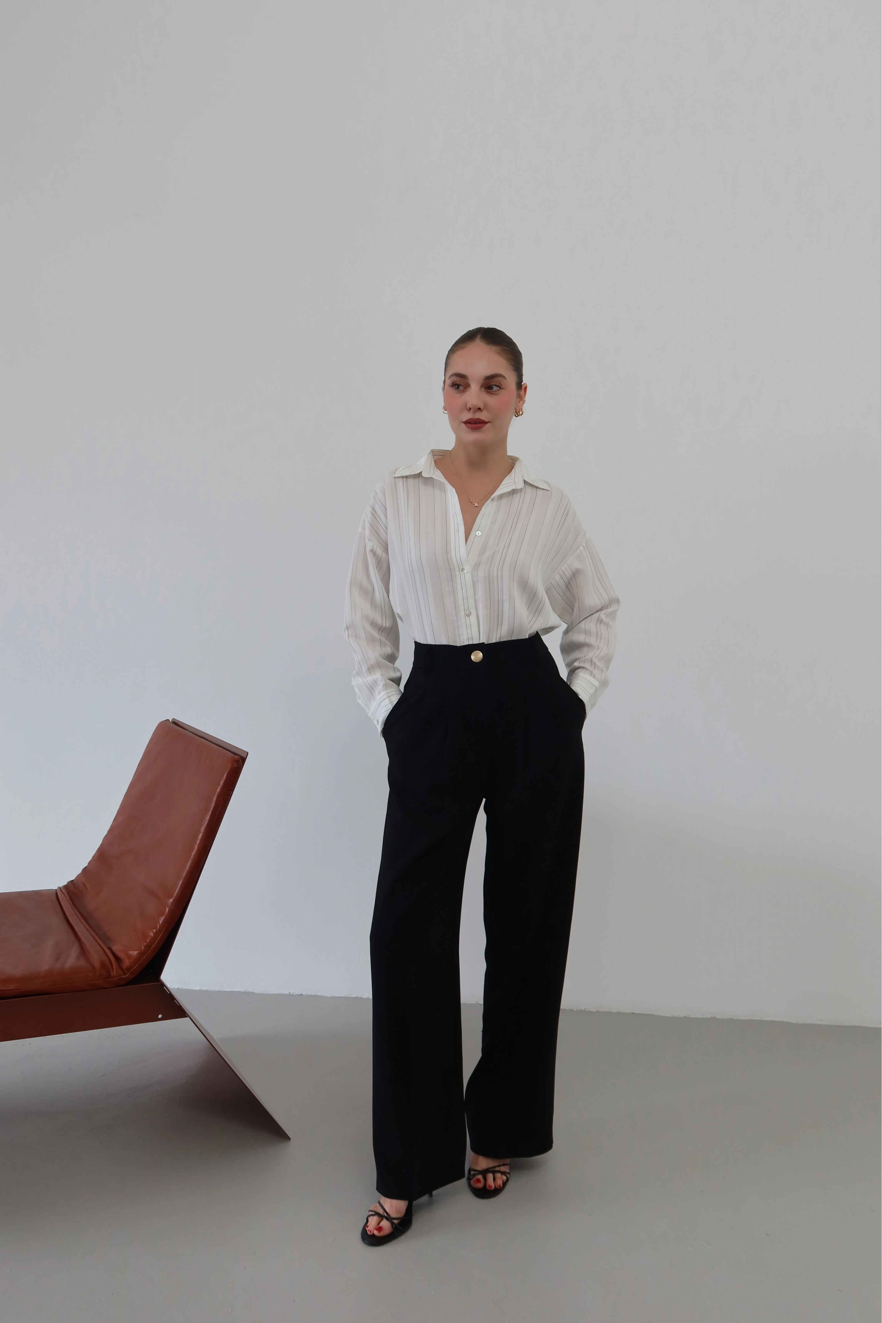 ROÉA’nın tasarım vizyonuyla yeniden hayat bulan bu klasik pantolon, geleneksel şıklığı beli lastikli yapısının sunduğu eşsiz konforla birleştiriyor. Kusursuz bir ütü izi ve keskin hatlarla şekillenen maskülen silüet, cep kısımlarında yer alan ikonik gold düğme detaylarıyla feminen bir ışıltı kazanıyor. Gün boyu formunu kaybetmeyen yüksek kaliteli kumaşı ve bele tam oturan elastik yapısı, stilden ödün vermeden özgürce hareket etmenizi sağlıyor.