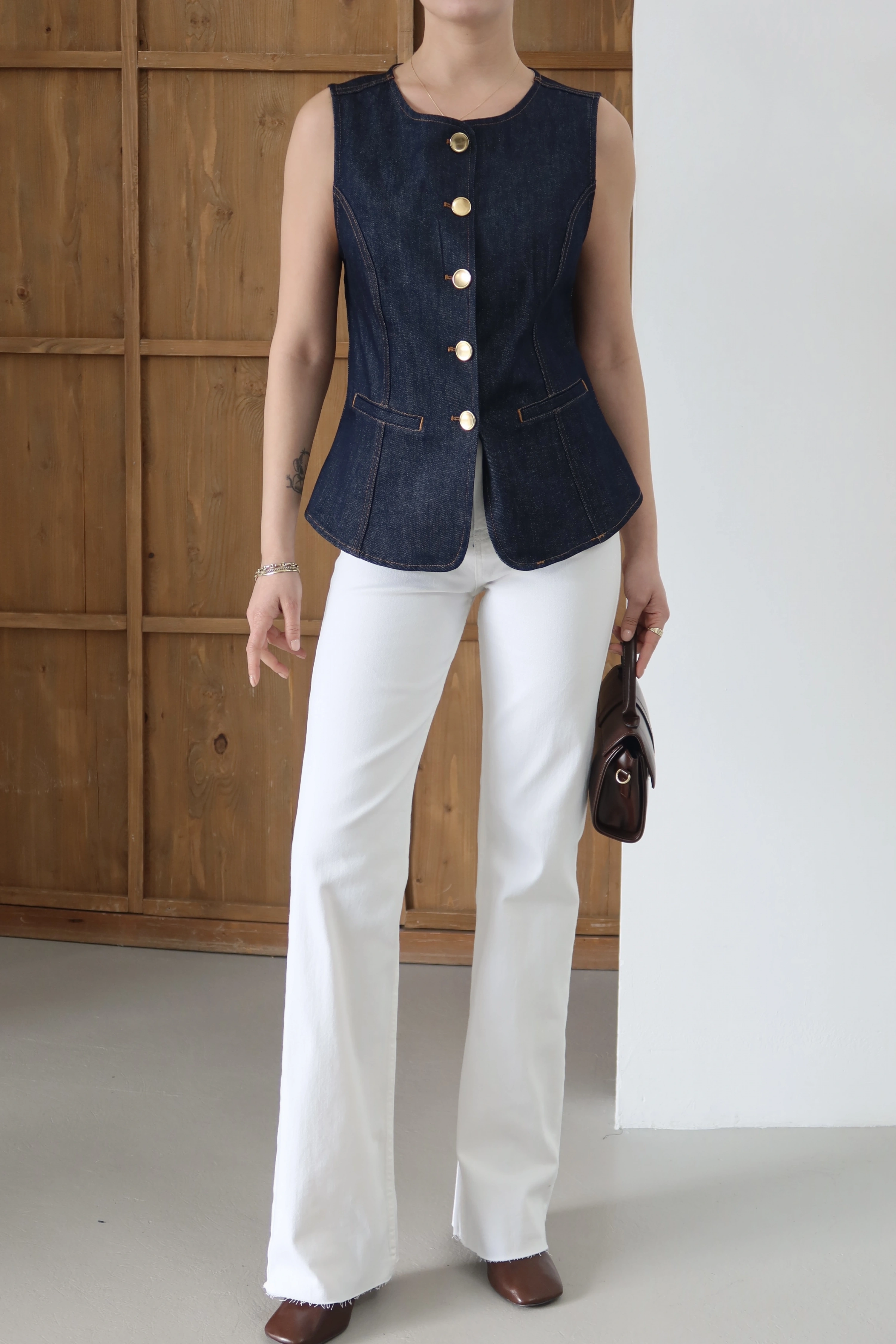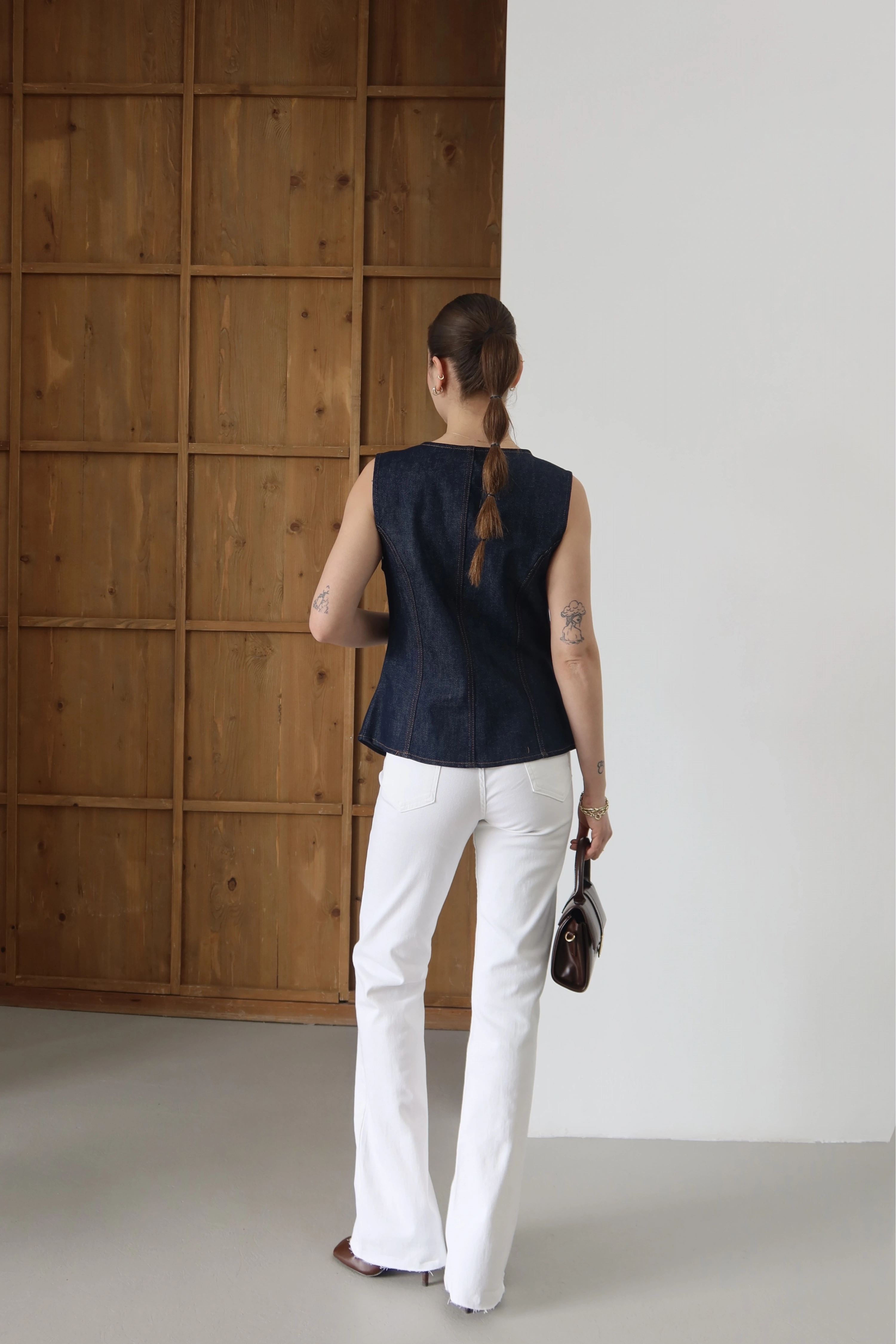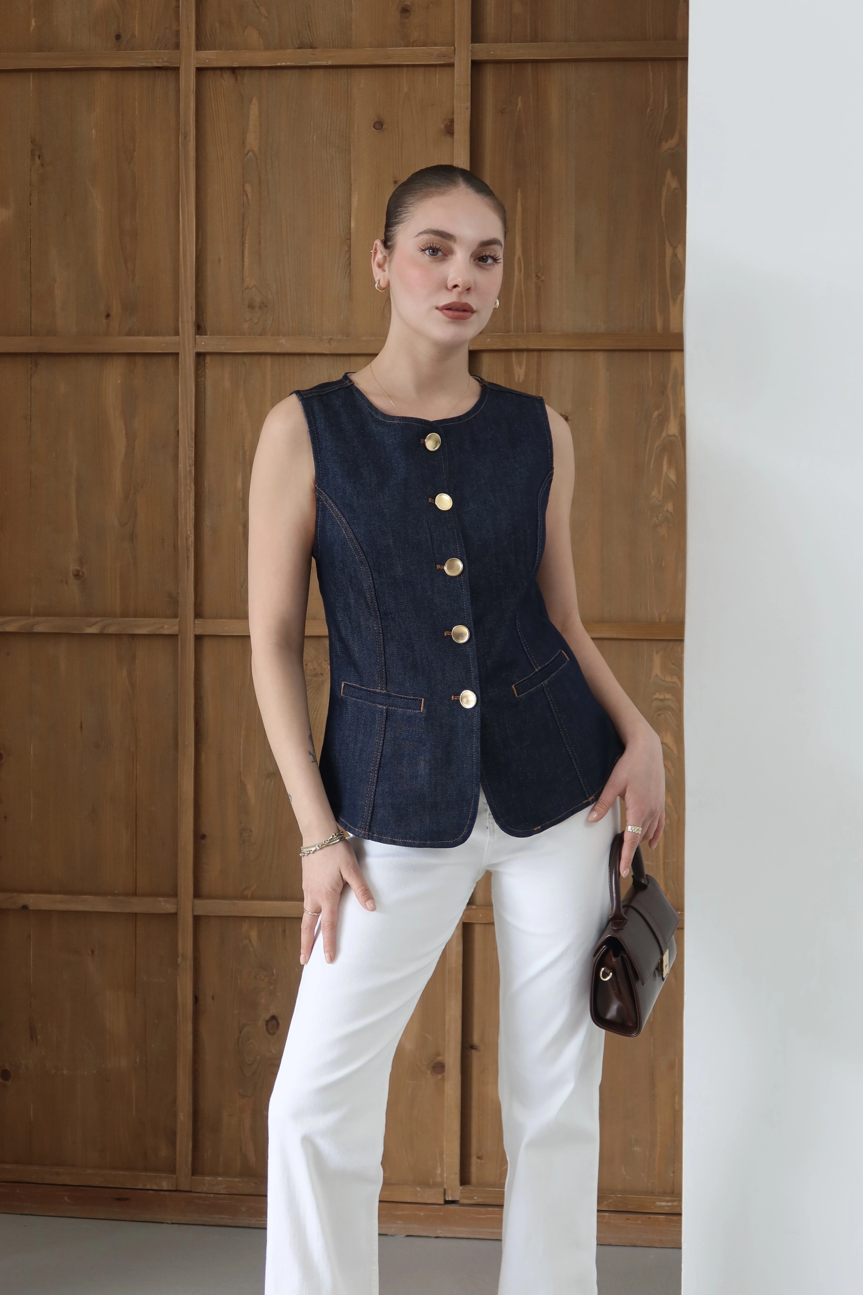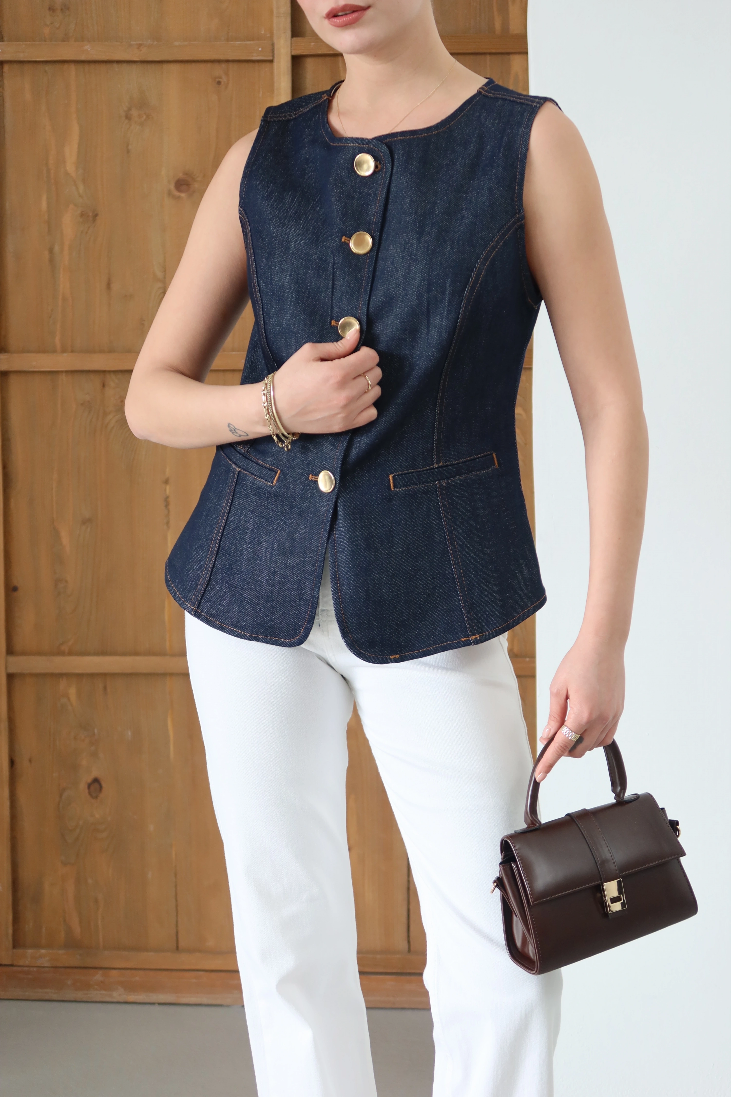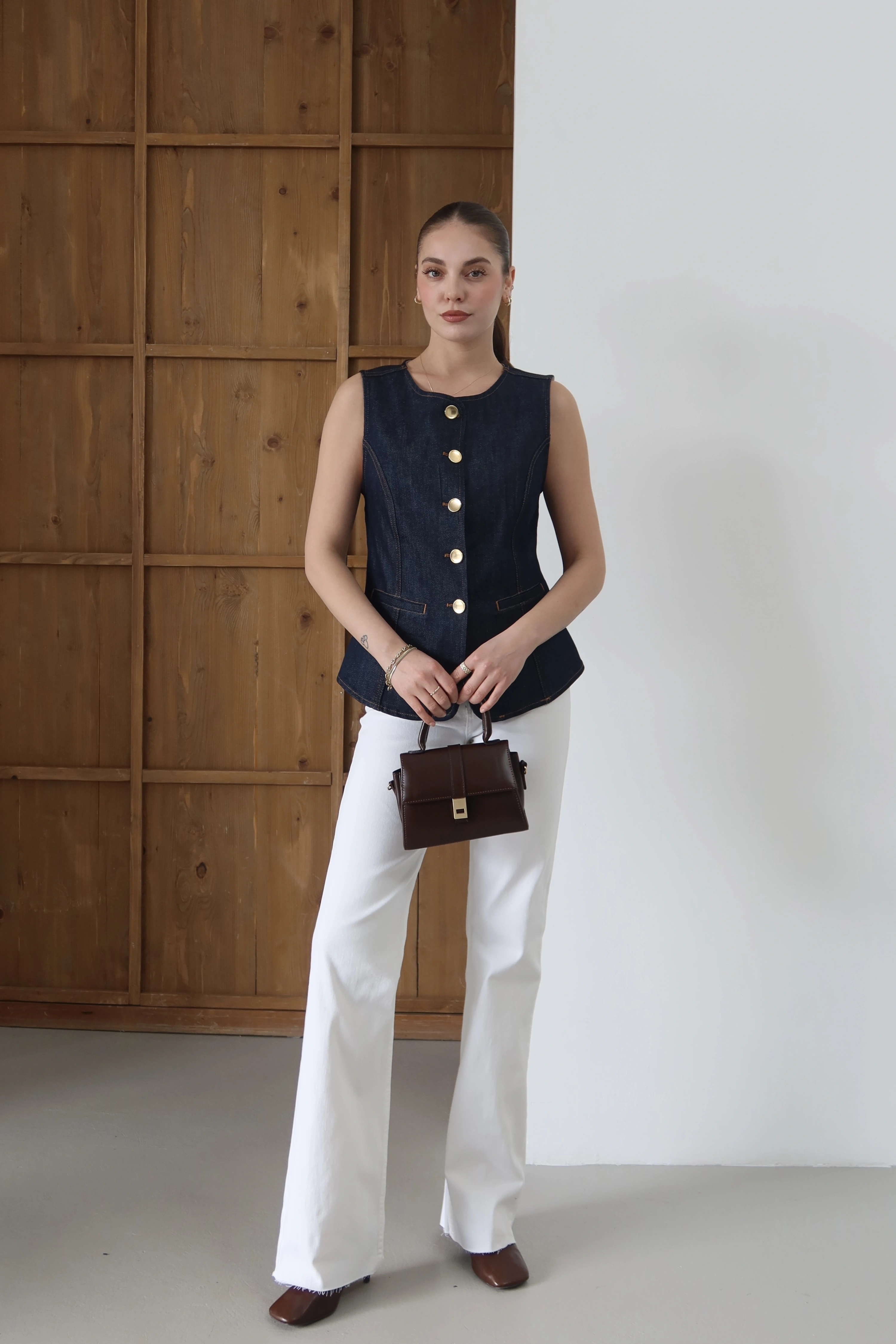 ROÉA Denim Yelek, klasik denim dokusunu bisiklet yakanın zarafeti ve gold düğmelerin lüks tavrıyla yeniden yorumluyor. Vücuda tam oturan kusursuz kalıbı, stilinize hem maskülen bir güç hem de feminen bir zarafet katıyor. İster jean pantolonlarla "denim on denim" akımını yakalayın, ister şık kumaş pantolonların üzerine giyerek stilinizi bir üst seviyeye taşıyın.