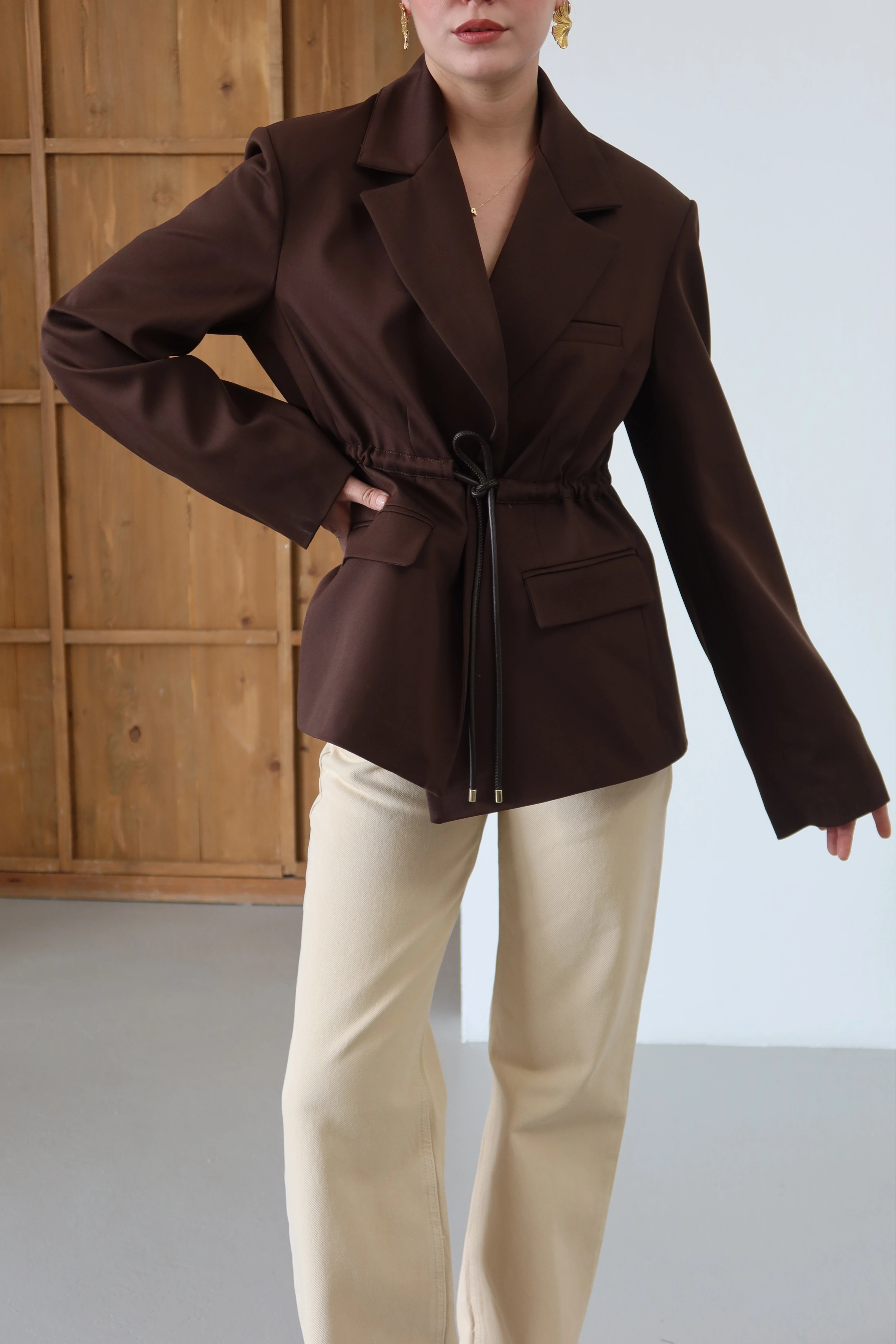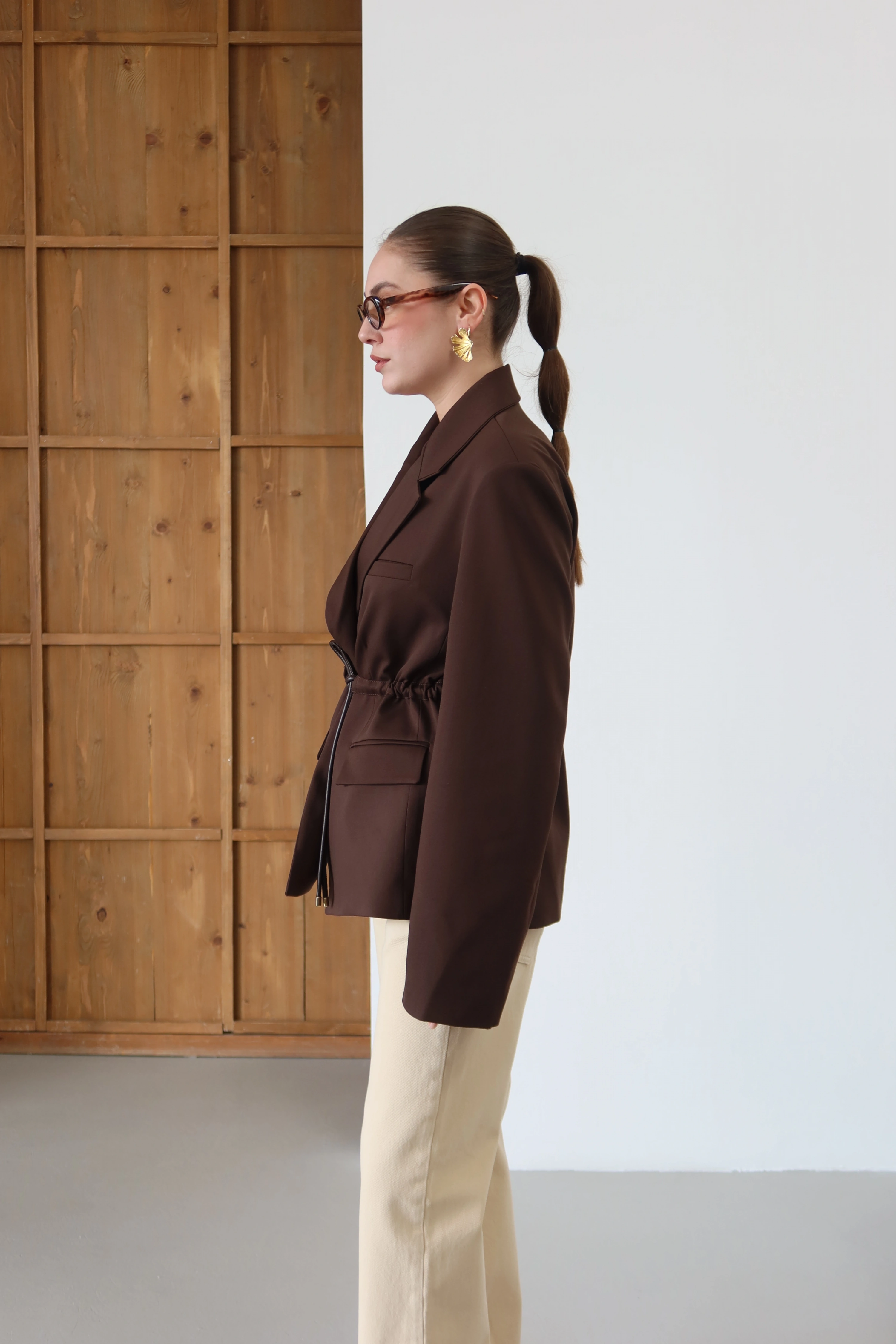 Geleneksel ceket formunu, beldeki tünel bağcık detayıyla yeniden yorumluyoruz. İster maskülen bir oversized hacim, ister beli vurgulayan feminen bir hat; silüetin kontrolü tamamen sizin elinizde. Büyük cep detaylarının kattığı utilitaryan duruş, yüksek kaliteli iç astarın sunduğu konforla birleşiyor. Hem dış giyim gücü hem de ceket şıklığı bir arada.