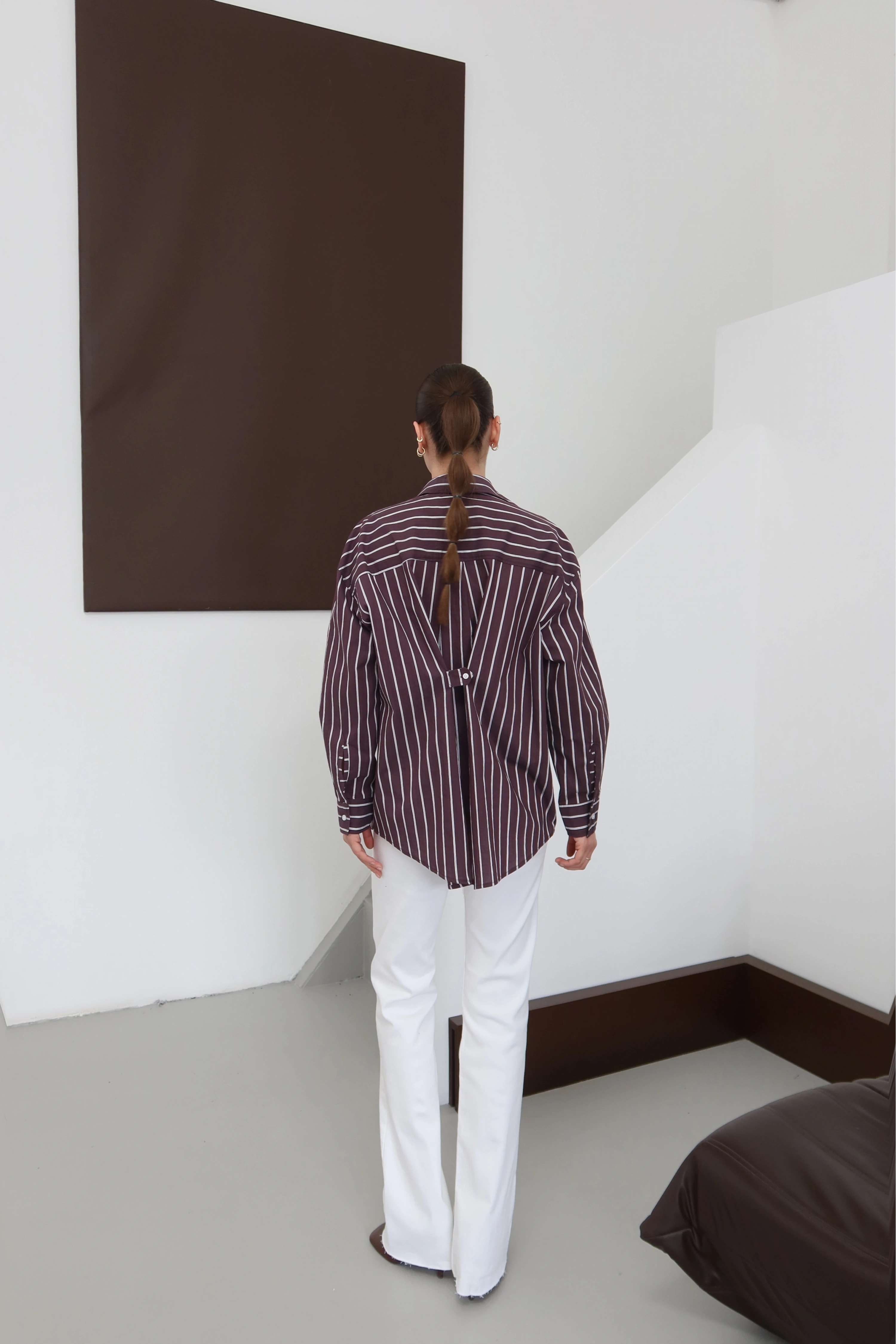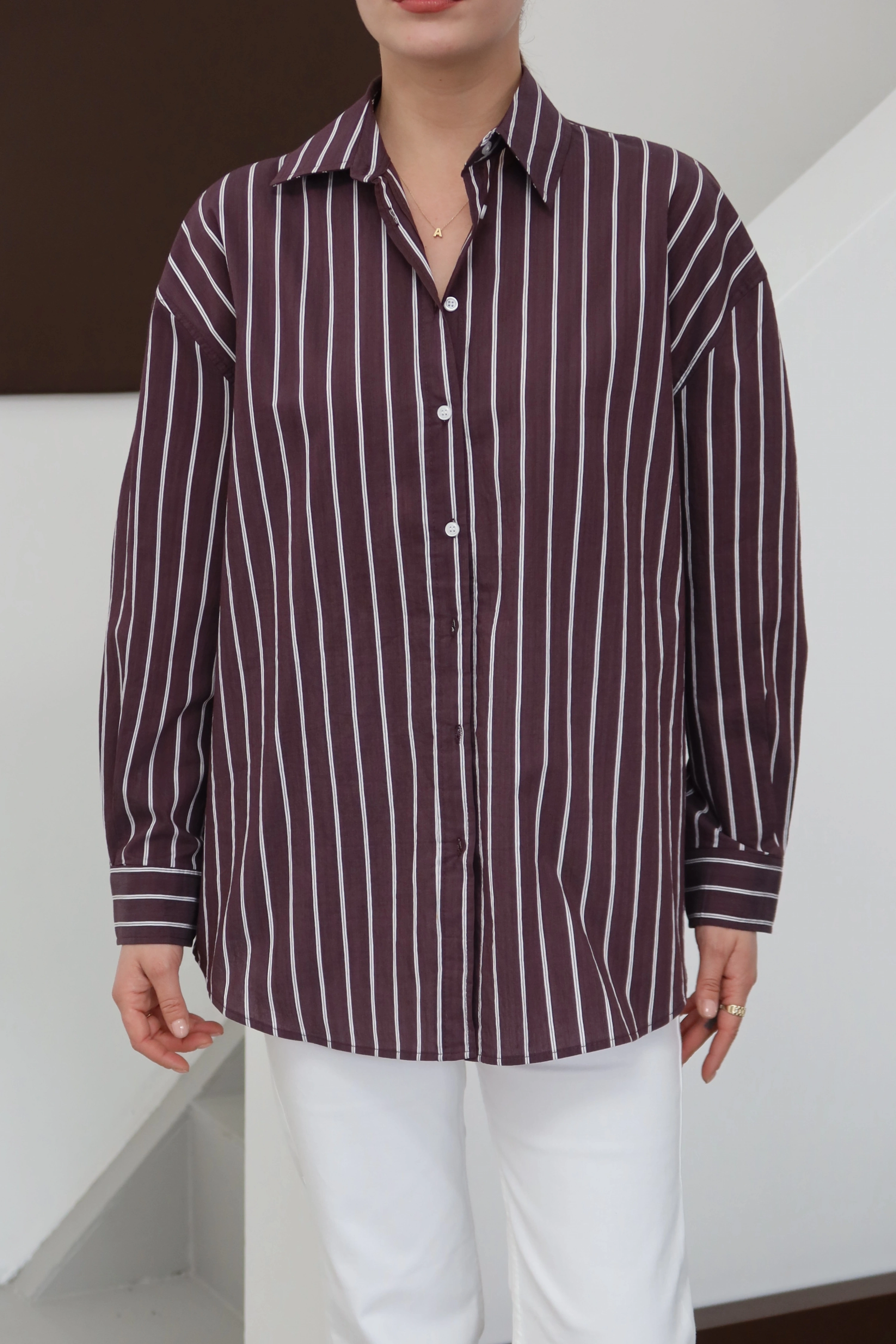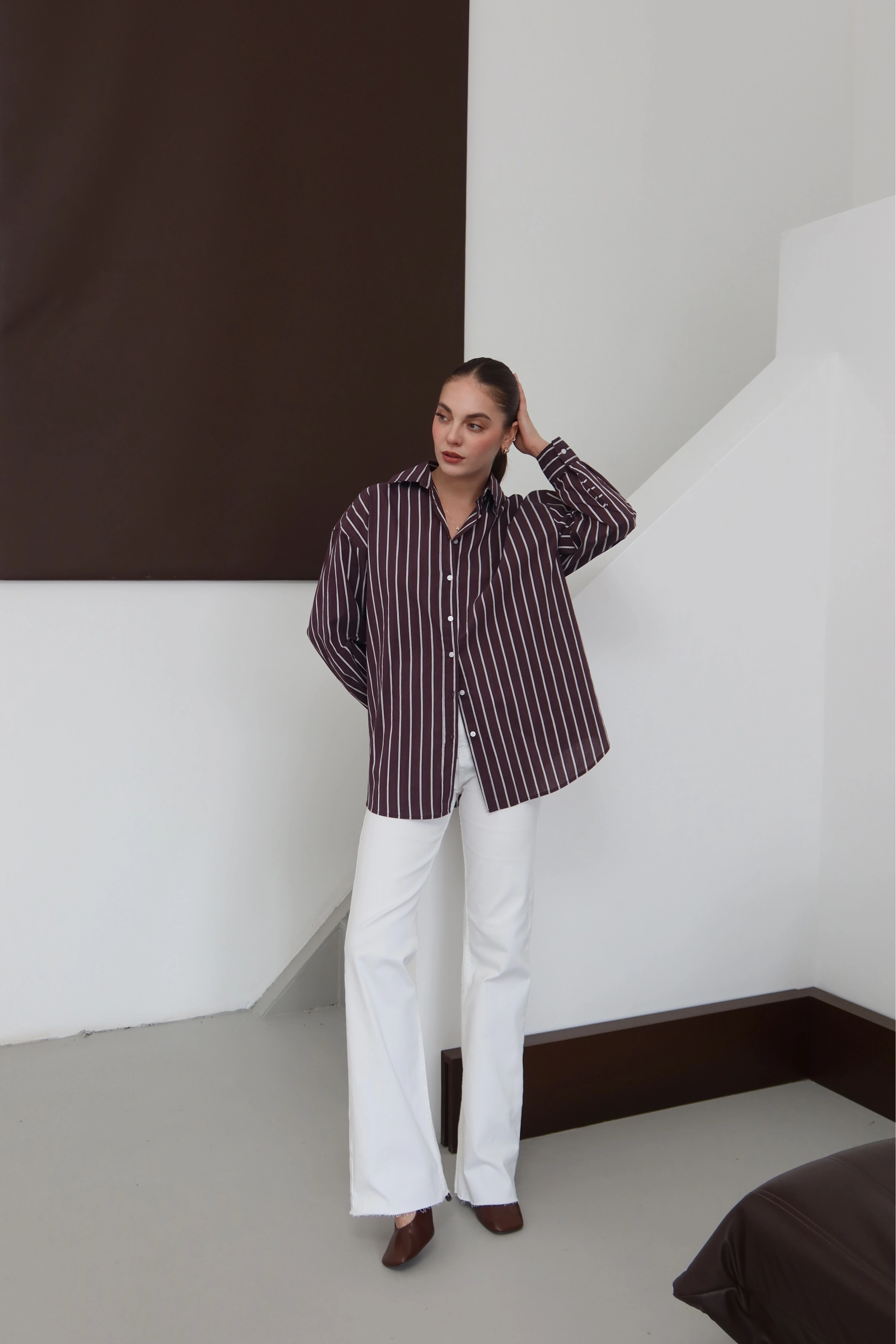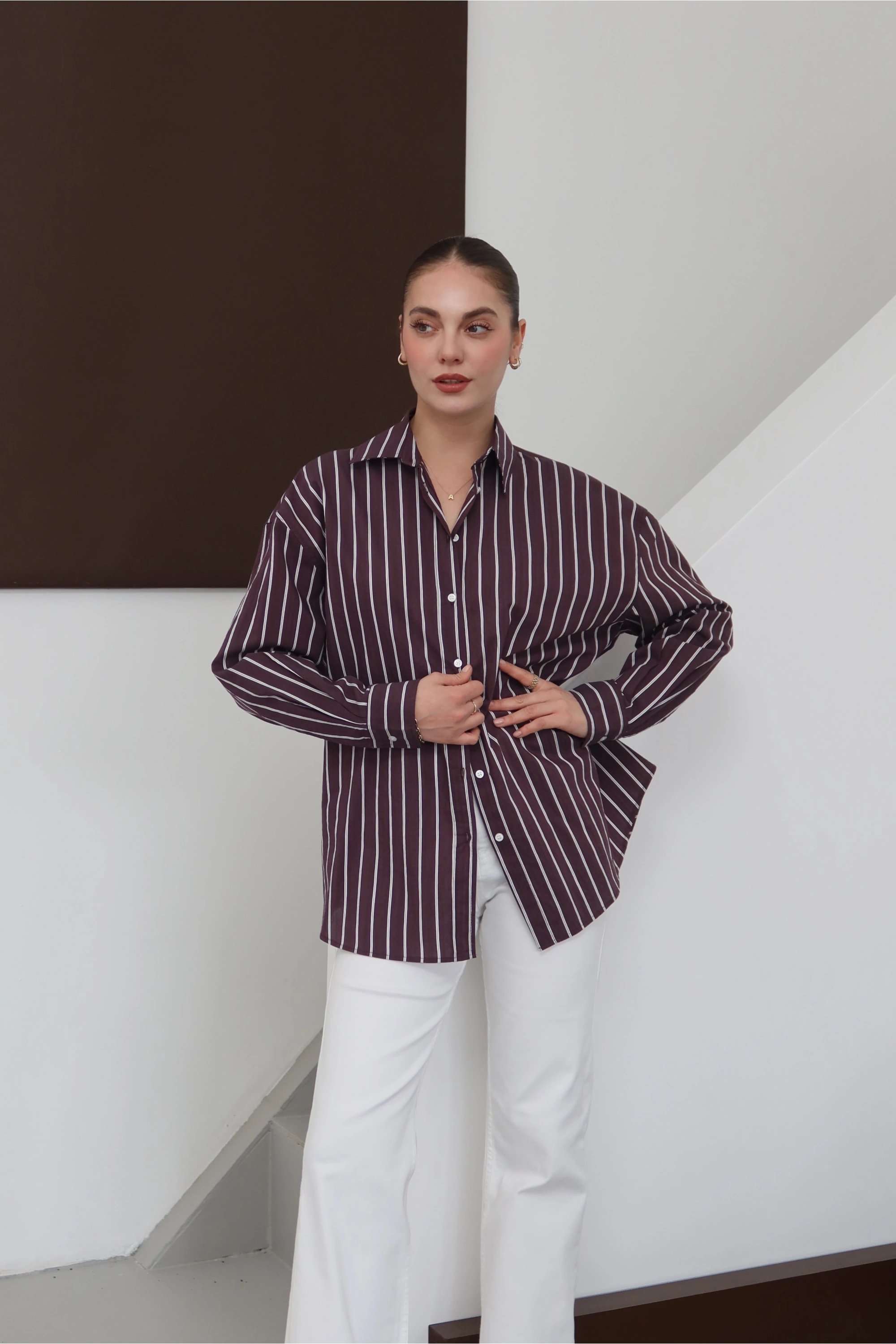 ROÉA kadınının özgüvenli duruşunu simgeleyen bu gömlek, kırmızının enerjisini dikey çizgilerin zayıf ve uzun gösteren etkisiyle birleştiriyor. Standart bedeni sayesinde her vücut tipine modern bir oversize hava katarken, dokusuyla gün boyu konfor sağlıyor. Klasik bir parçanın, en cesur rengiyle tanışmaya hazır olun.