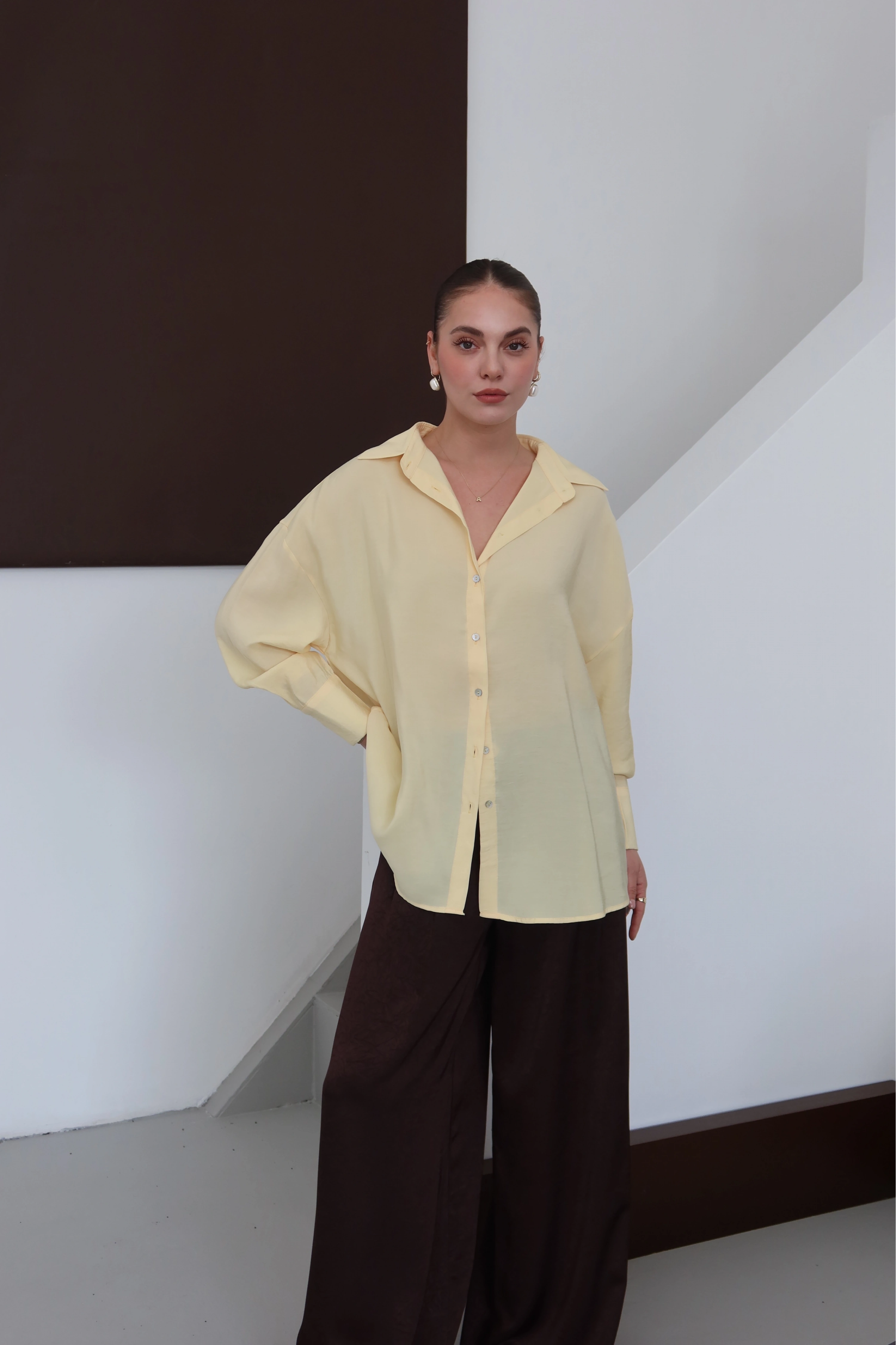ROÉA Dökümlü Oversize Modal Gömlek, bedeni özgür bırakan geniş kesimiyle konforu en üst seviyeye taşırken, kumaşın ipeksi ağırlığıyla asil bir döküm sergiliyor. Doğal modal liflerinin nefes alan, cilde dost dokusu, her hareketinizde vücudunuzla birlikte akan bir zarafet sunuyor. Klasik gömlek detaylarını modern ve eforsuz bir hacimle yeniden yorumlayan bu tasarım, hem yalın hem de çarpıcı görünmek isteyen ROÉA kadınının gardırop anahtarı.