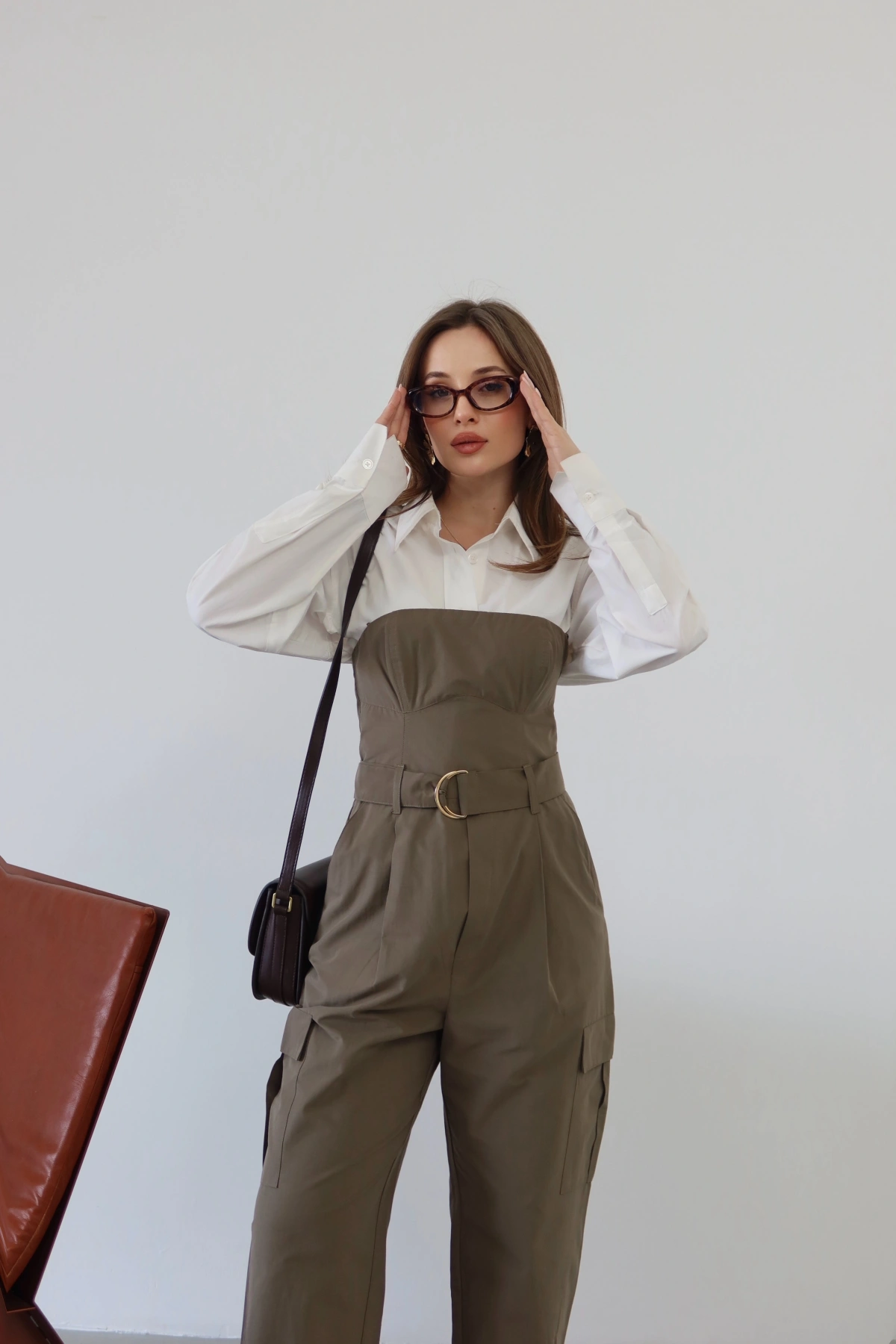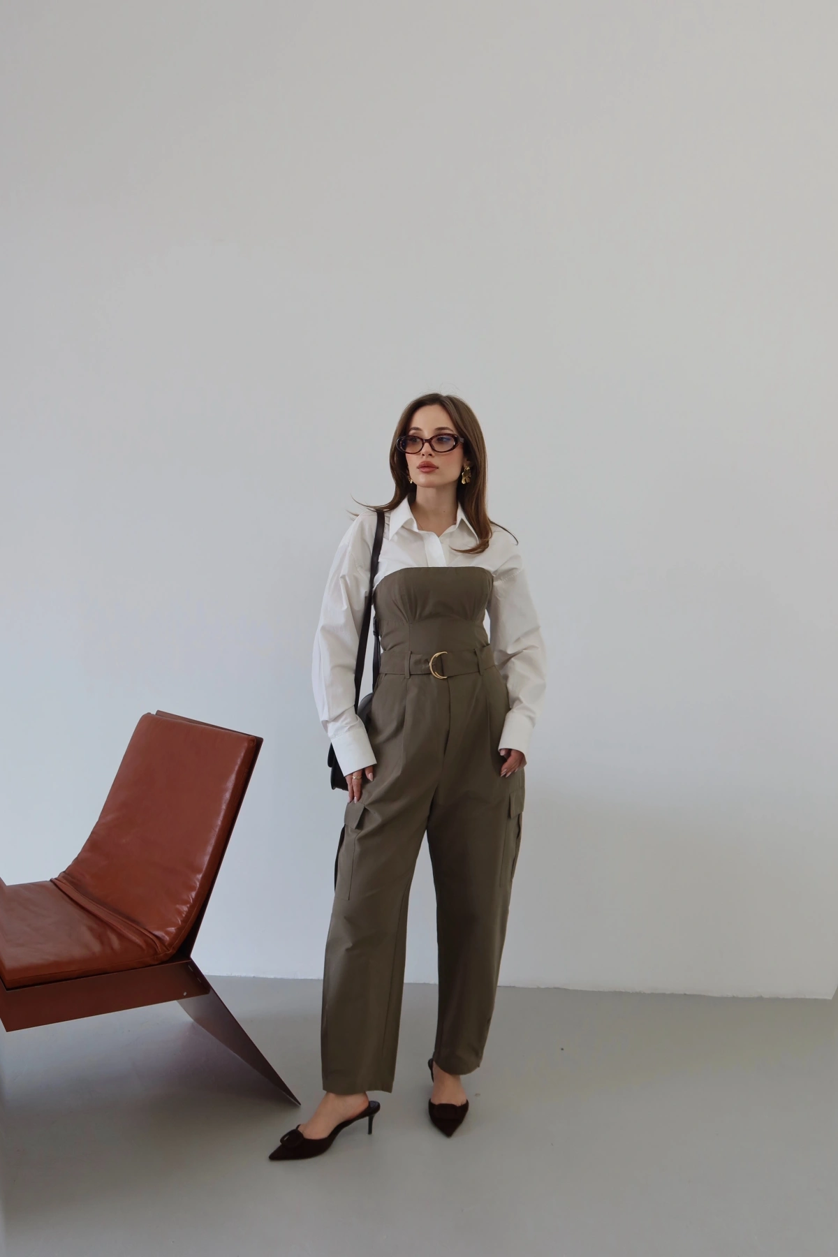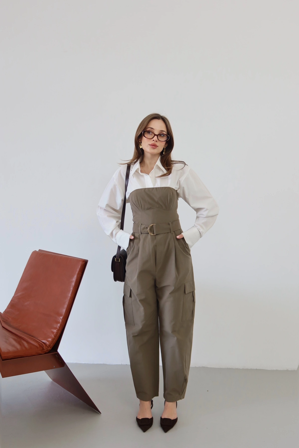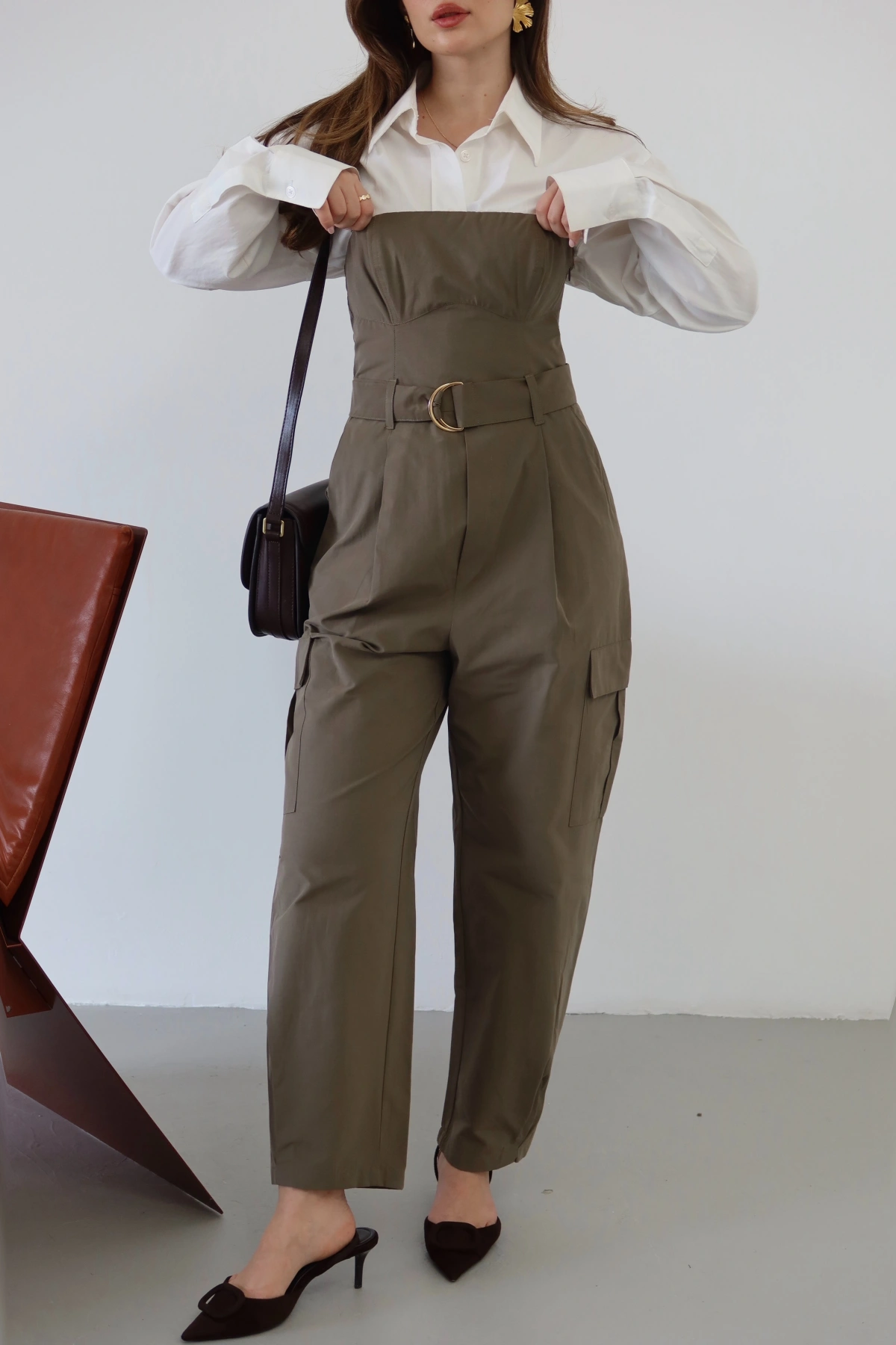 Kemer Detaylı Straplez Kargo Tulum Haki