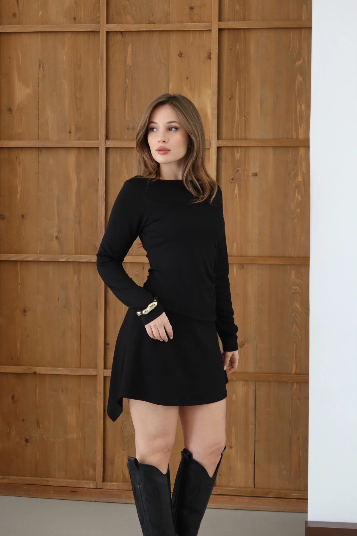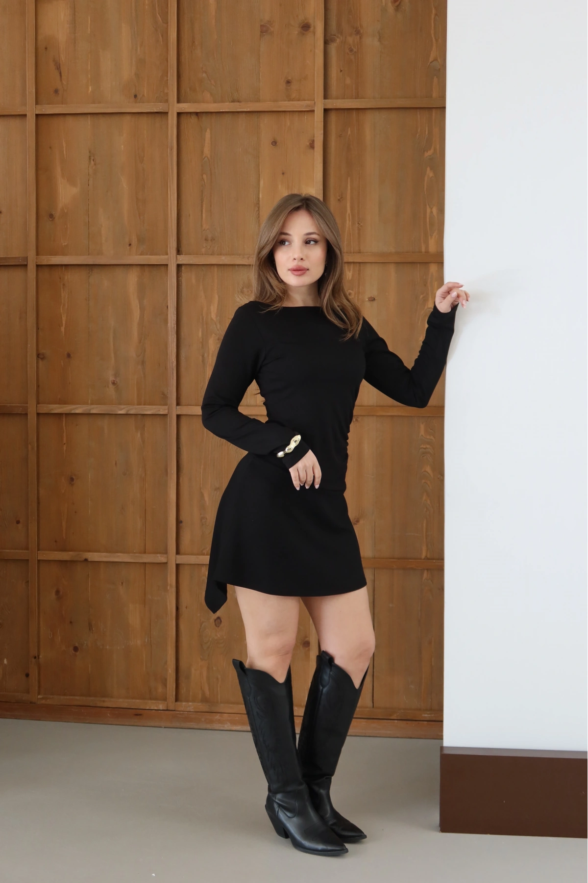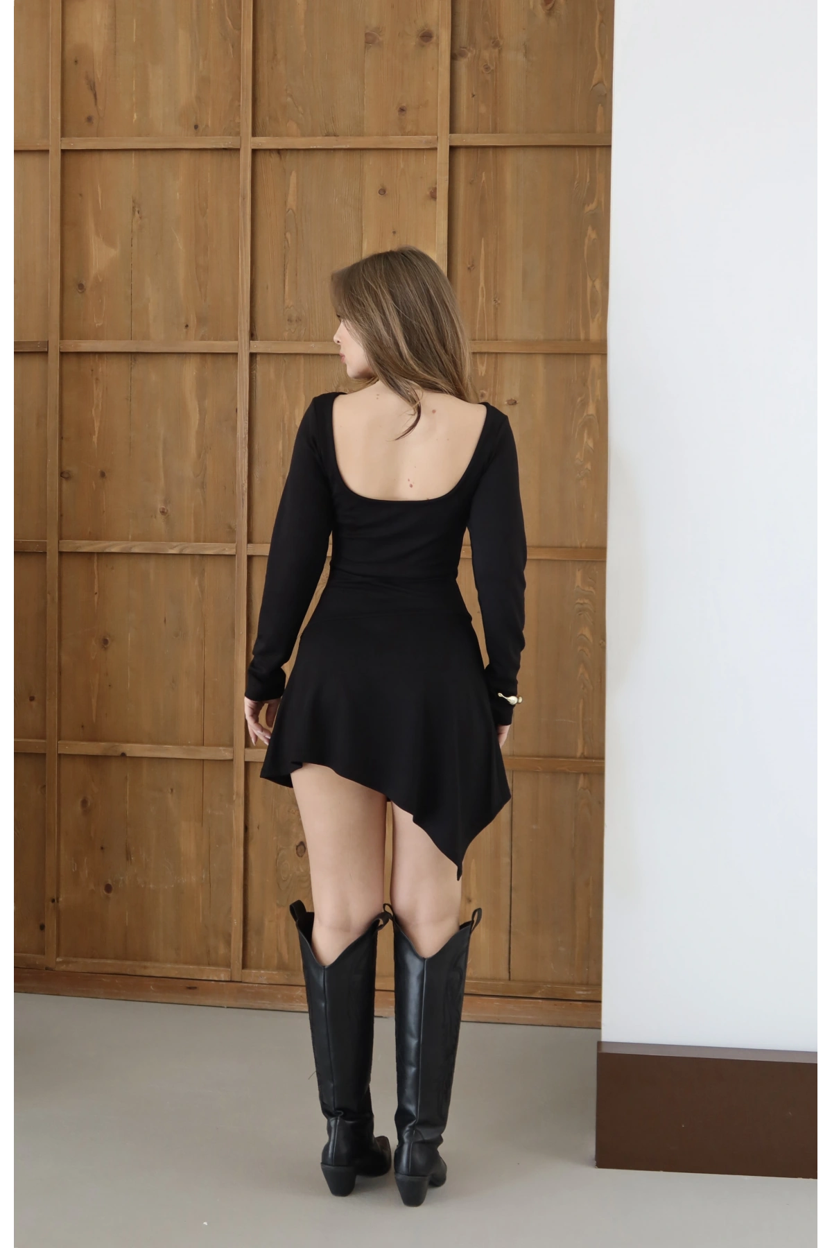 Sırt Detaylı Uzun Kollu Elbise Siyah
