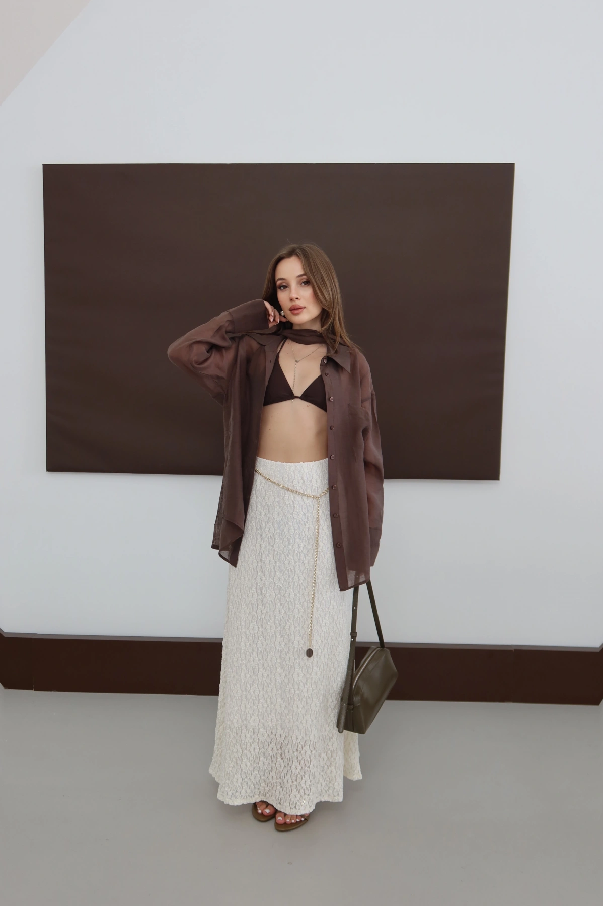 Zincir Detaylı Astarlı Dantel Etek Ekru