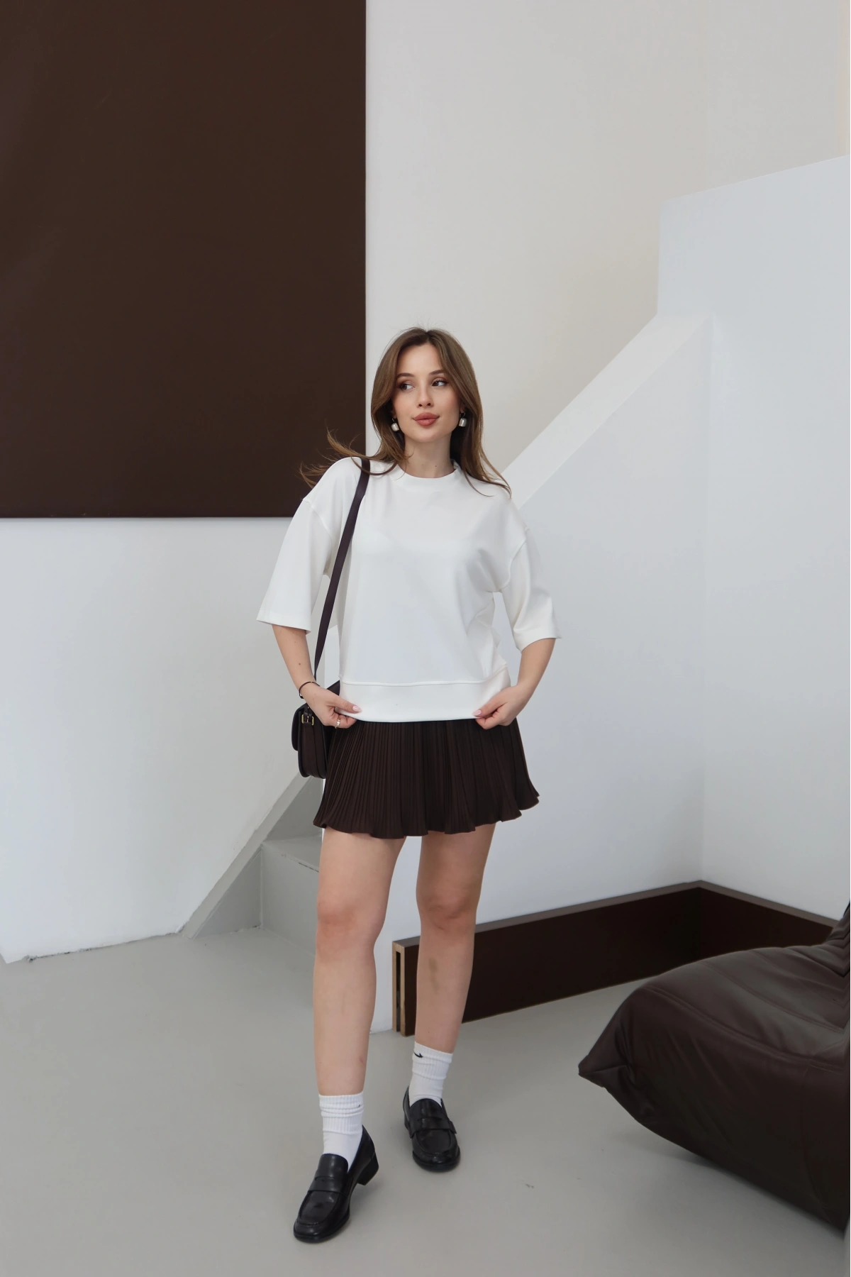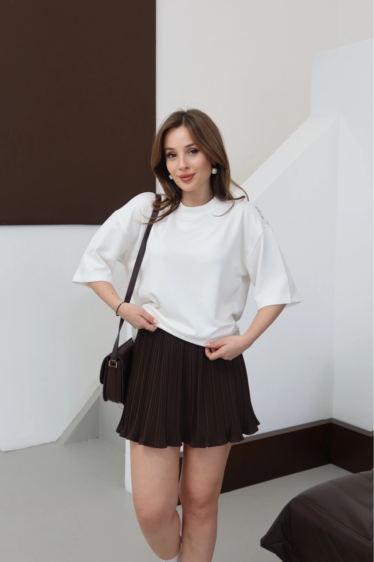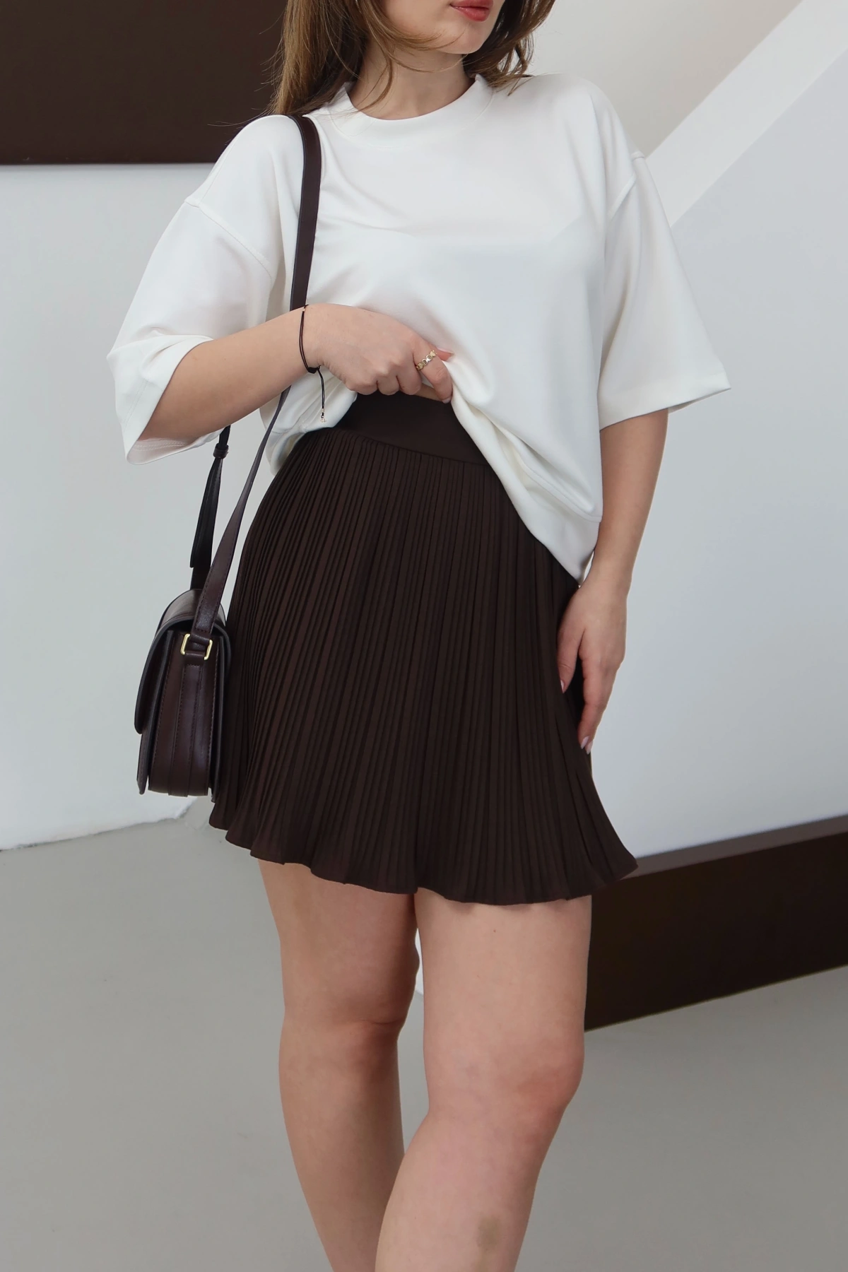 Piliseli Şort Astarlı Şort Etek Kahve