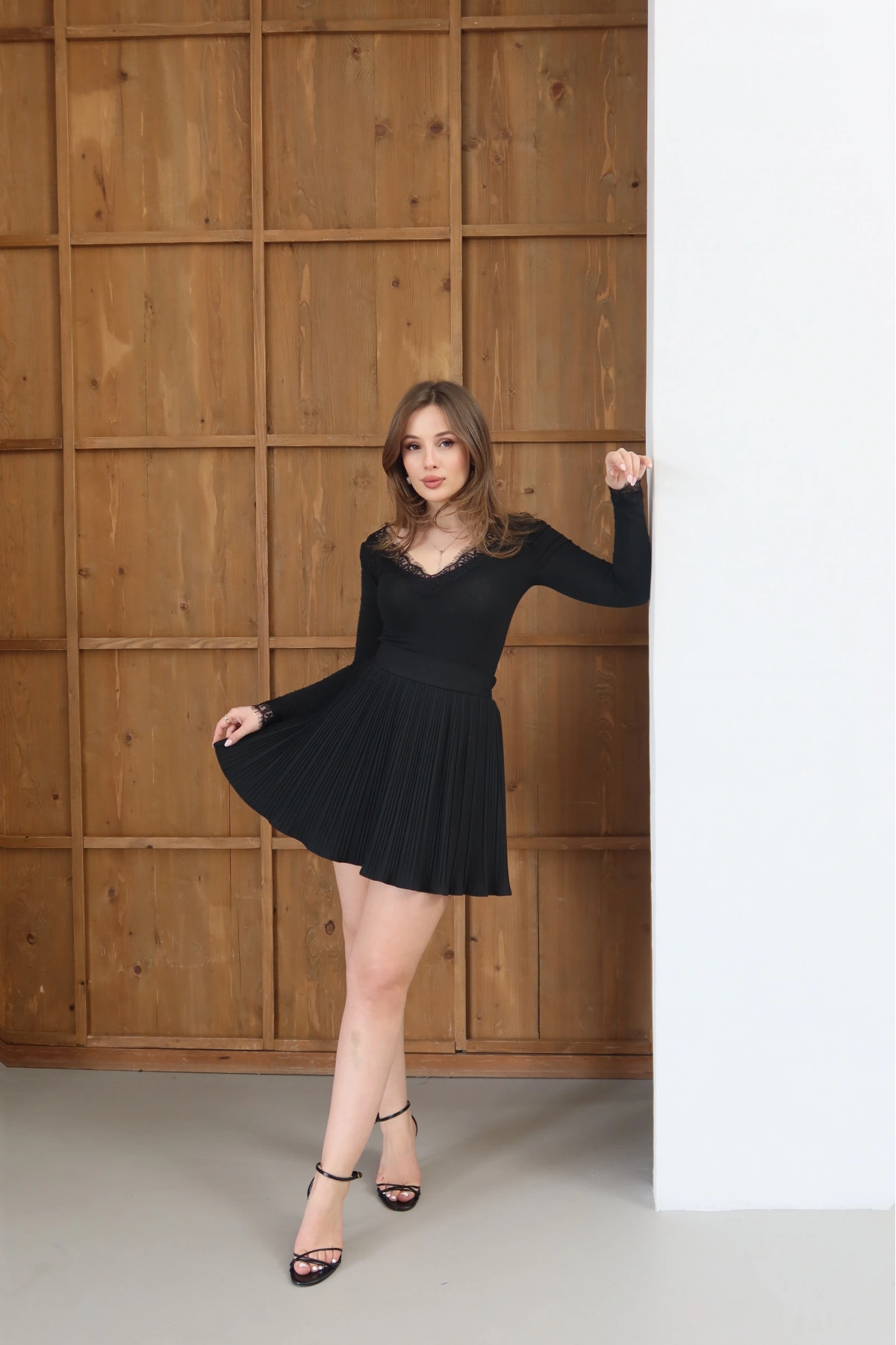 Piliseli Şort Astarlı Şort Etek Siyah