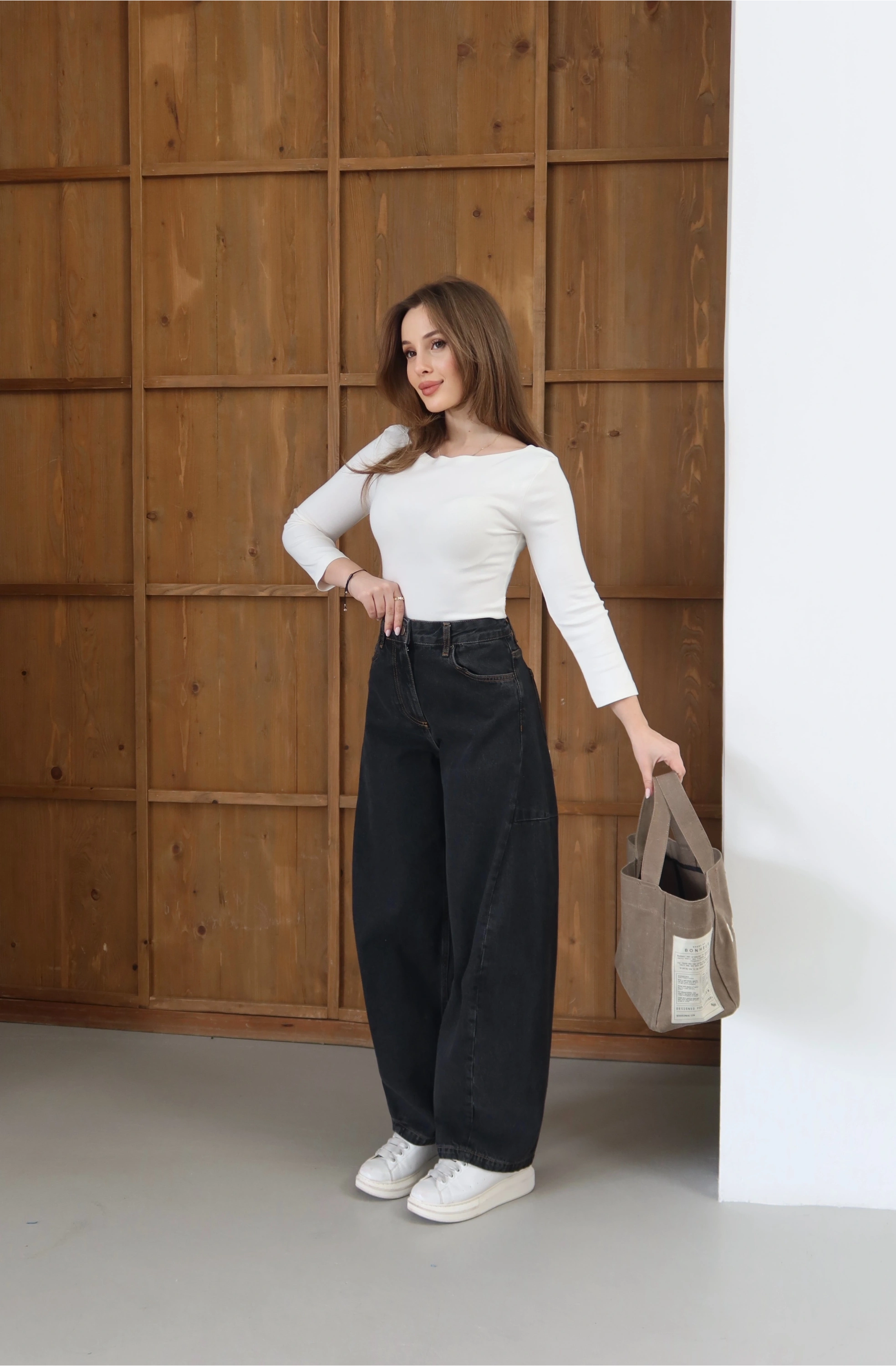 ROÉA Geniş Yakalı Bluz, omuz hattını vurgulayan mimari yaka kesimiyle klasik üst giyim anlayışını yeniden yorumluyor. Göğüs dekoltesini modern ve asil bir çerçeveye alan geniş yaka formu, bluzun vücudu saran kalıbıyla birleşerek kusursuz bir silüet yaratıyor. Hem maskülen ceketlerin içinde bir "statement" parça olarak hem de tek başına, zarafetiyle dikkat çeken bu tasarım, gardırobunuzun en kilit parçalarından biri olmaya aday.