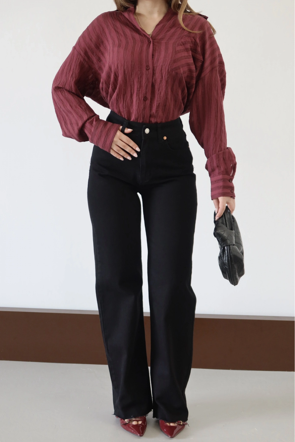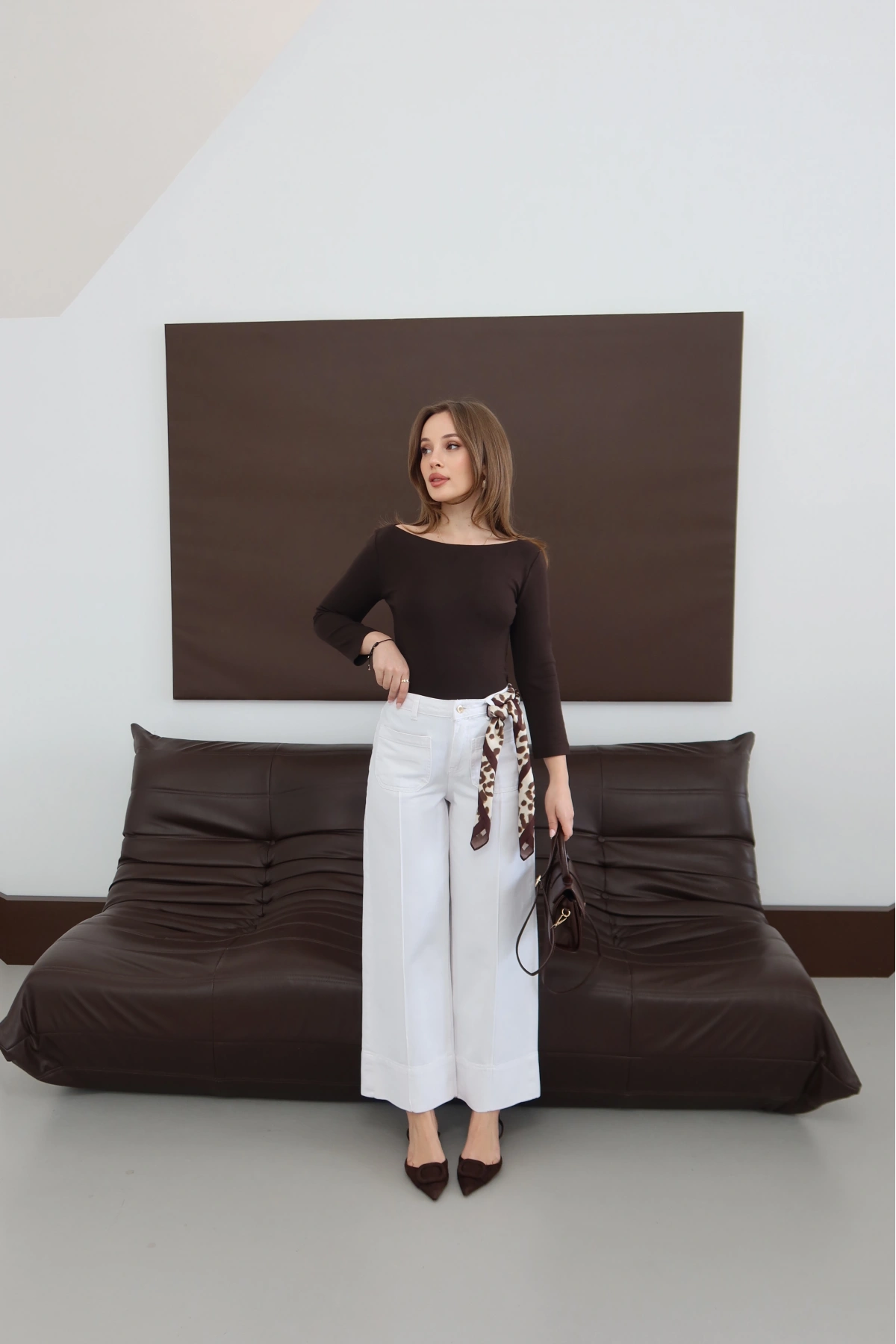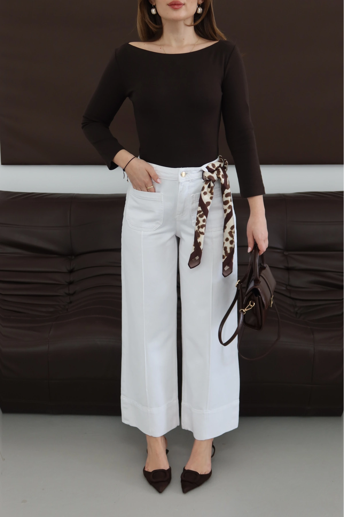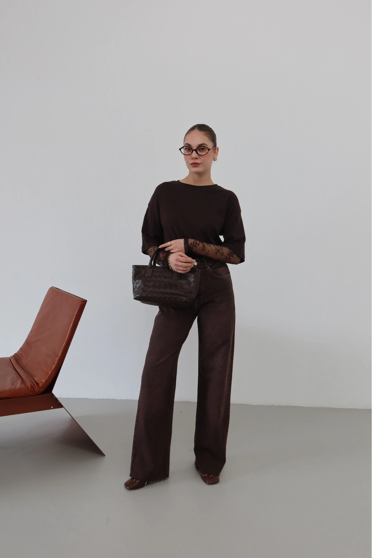 Yüksek Bel Kesik Boru Paça Jean Kahve