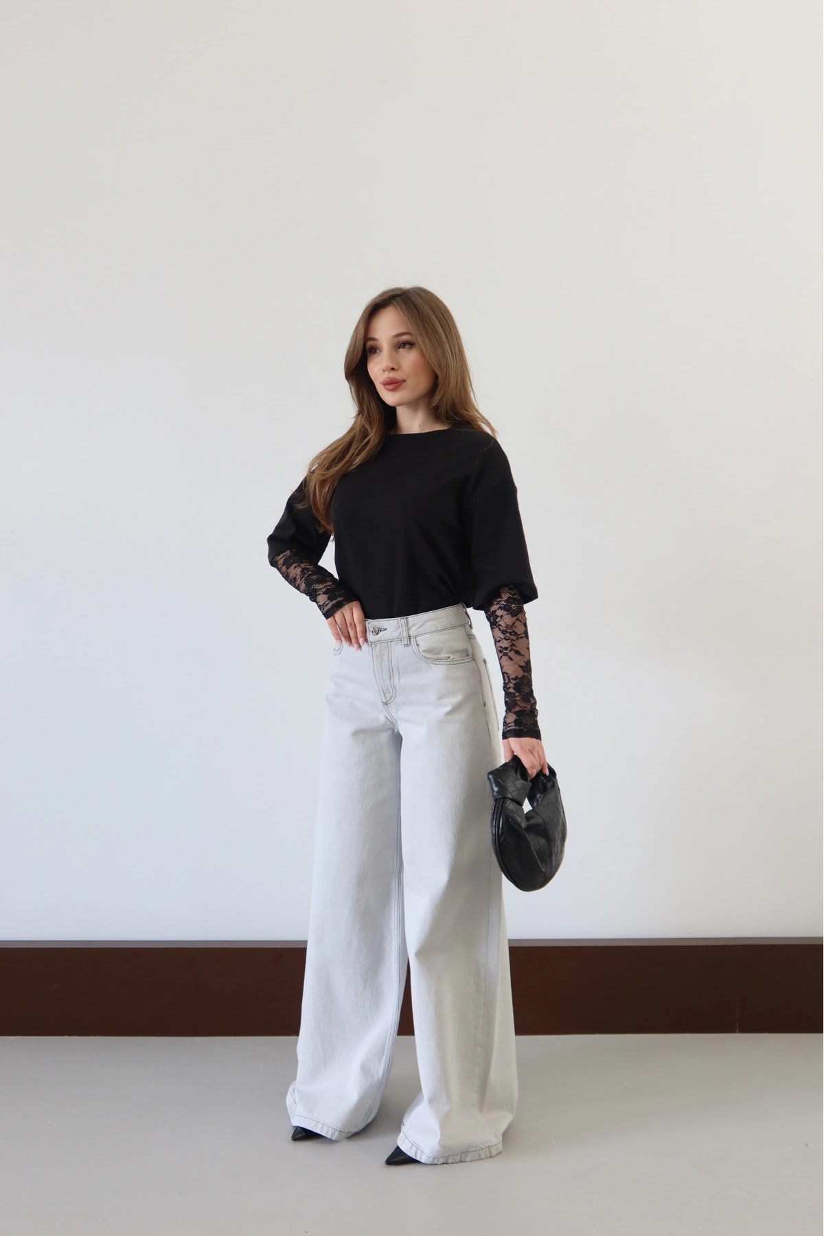 Orta Bel Geniş Paça Jean Buz Mavisi