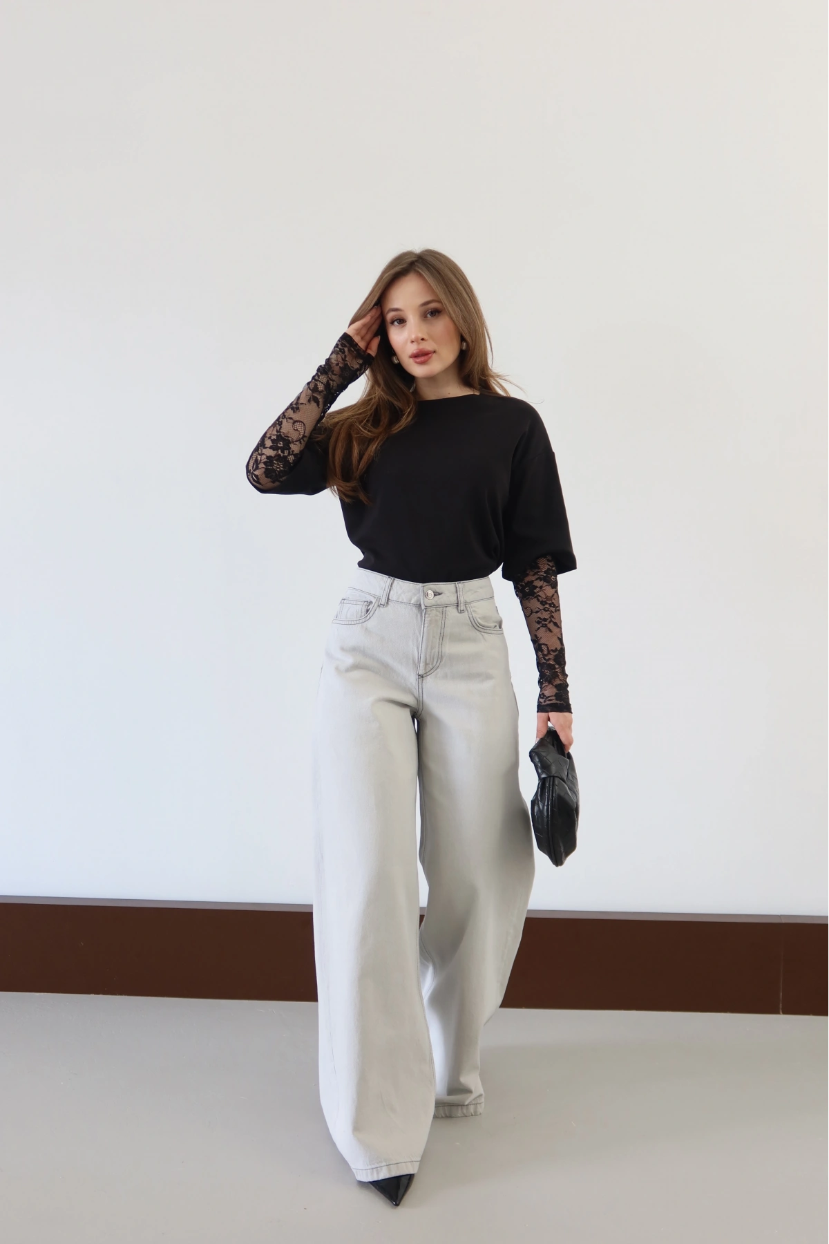 Yüksek Bel Extra Wide-Leg Jean Gri