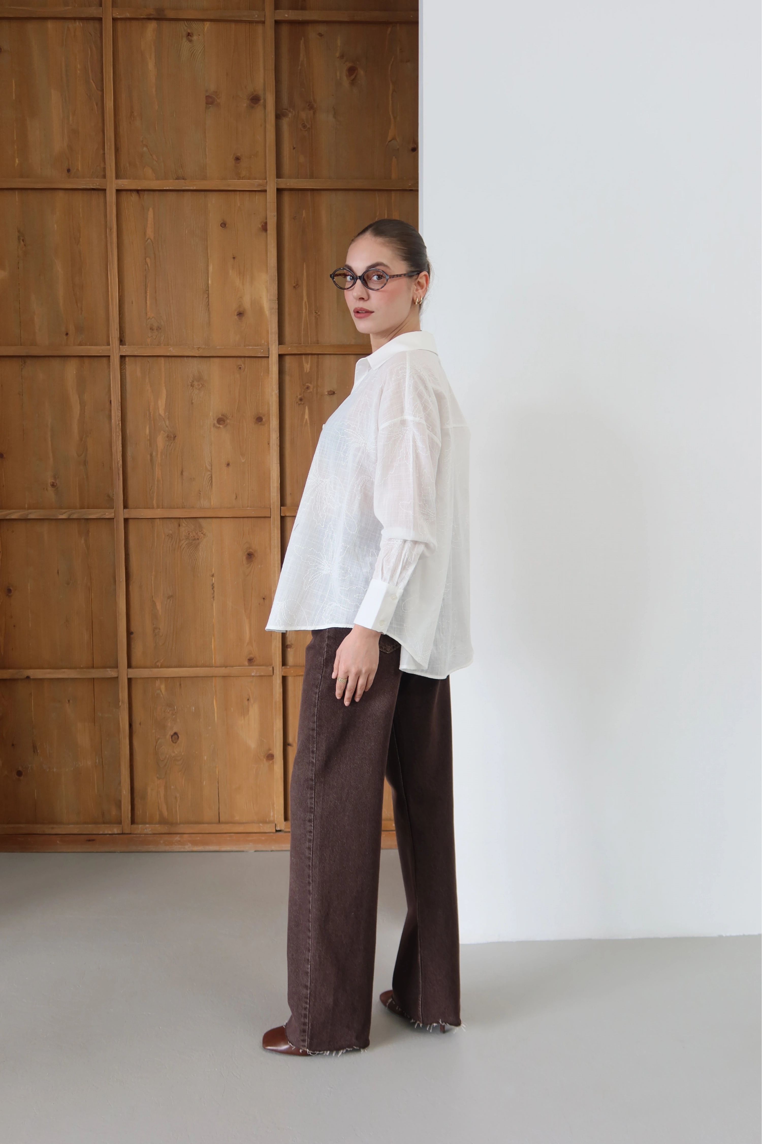 ROÉA Nakış İşlemeli Gömlek, klasik beyaz gömlek formunu yüksek terzilik detaylarıyla bir üst seviyeye taşıyor. %100 Premium pamuklu dokusu üzerinde yükselen zarif nakış işlemeleri, tasarıma derinlik ve karakter katıyor. Her bir dikişi özenle işlenen bu parça, hem maskülen kesimiyle güçlü bir duruş sergiliyor hem de nakışların sunduğu romantik detaylarla feminen bir zarafet sunuyor. Nefes alan dokusuyla cildinize dost, tasarımıyla ise stilinize imza niteliğinde bir dokunuş.