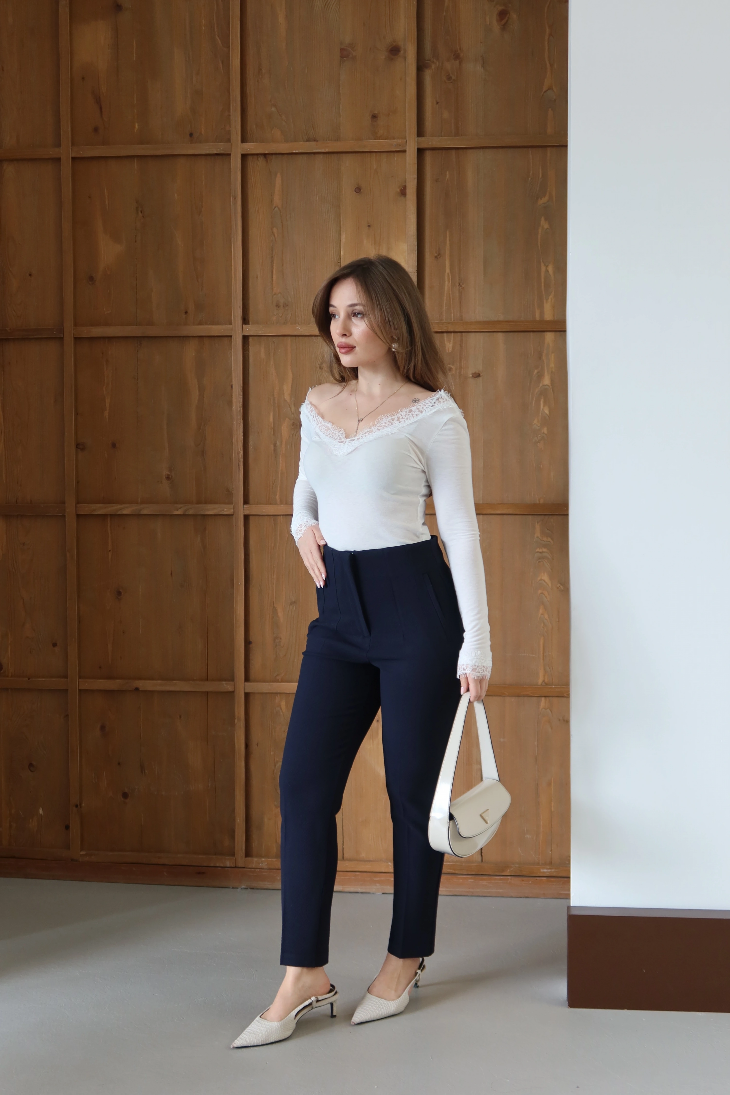 ROÉA’nın bu özel bluz tasarımı, feminen detayları cesur ve zarif bir silüetle buluşturuyor. Hem ön hem de sırt dekoltesinde yer alan derin V yaka kesimi, kenarlarda kullanılan yüksek kaliteli dantel işlemeleriyle sofistike bir dokunuş kazanıyor. Akışkan dokusu ve vücudu nazikçe saran formuyla bu parça, her hareketinizde dantelin romantik ruhunu stilinize yansıtıyor.