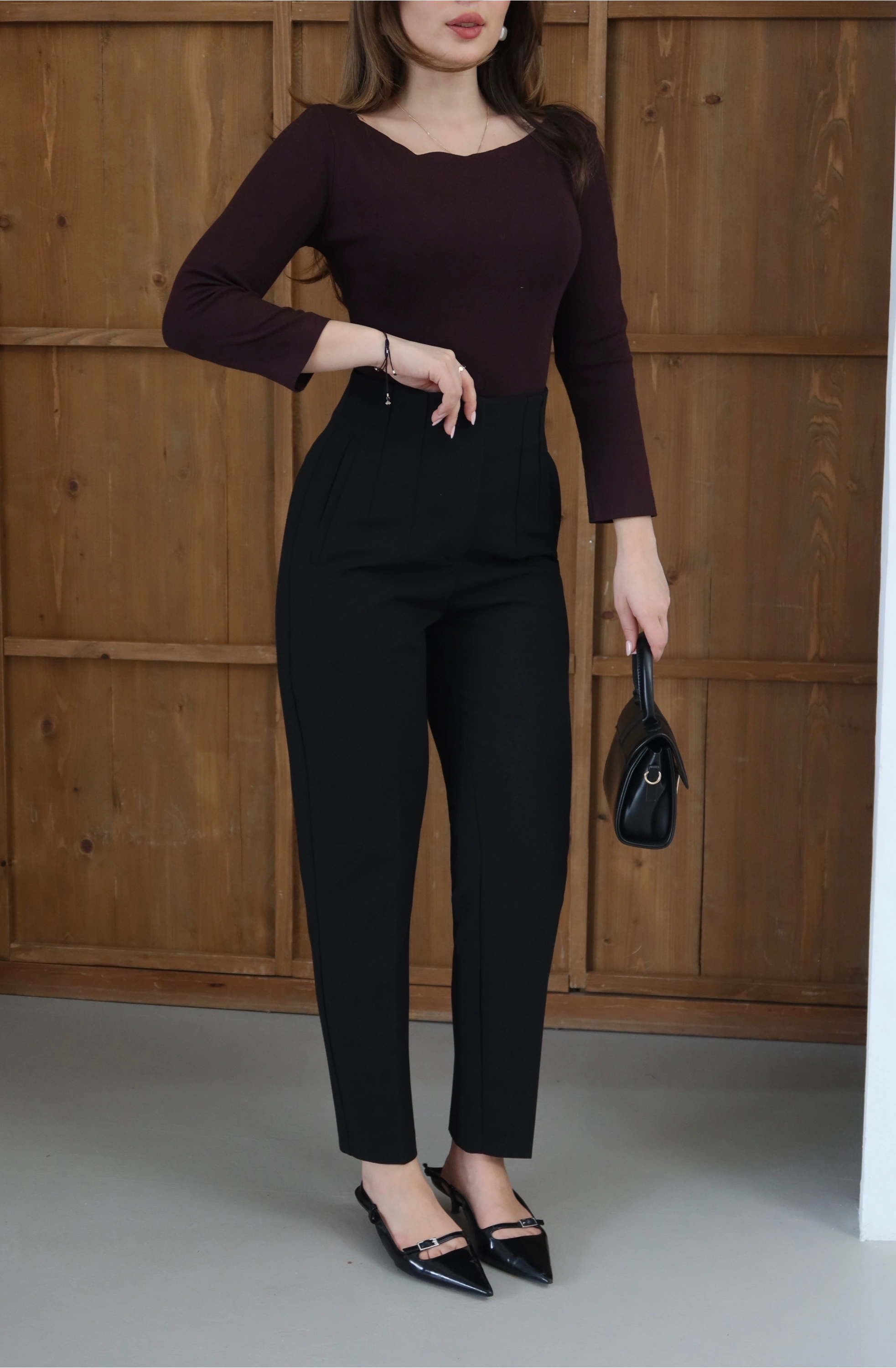 Tasarım: Ön panelde zarif flato detayları, yüksek bel.