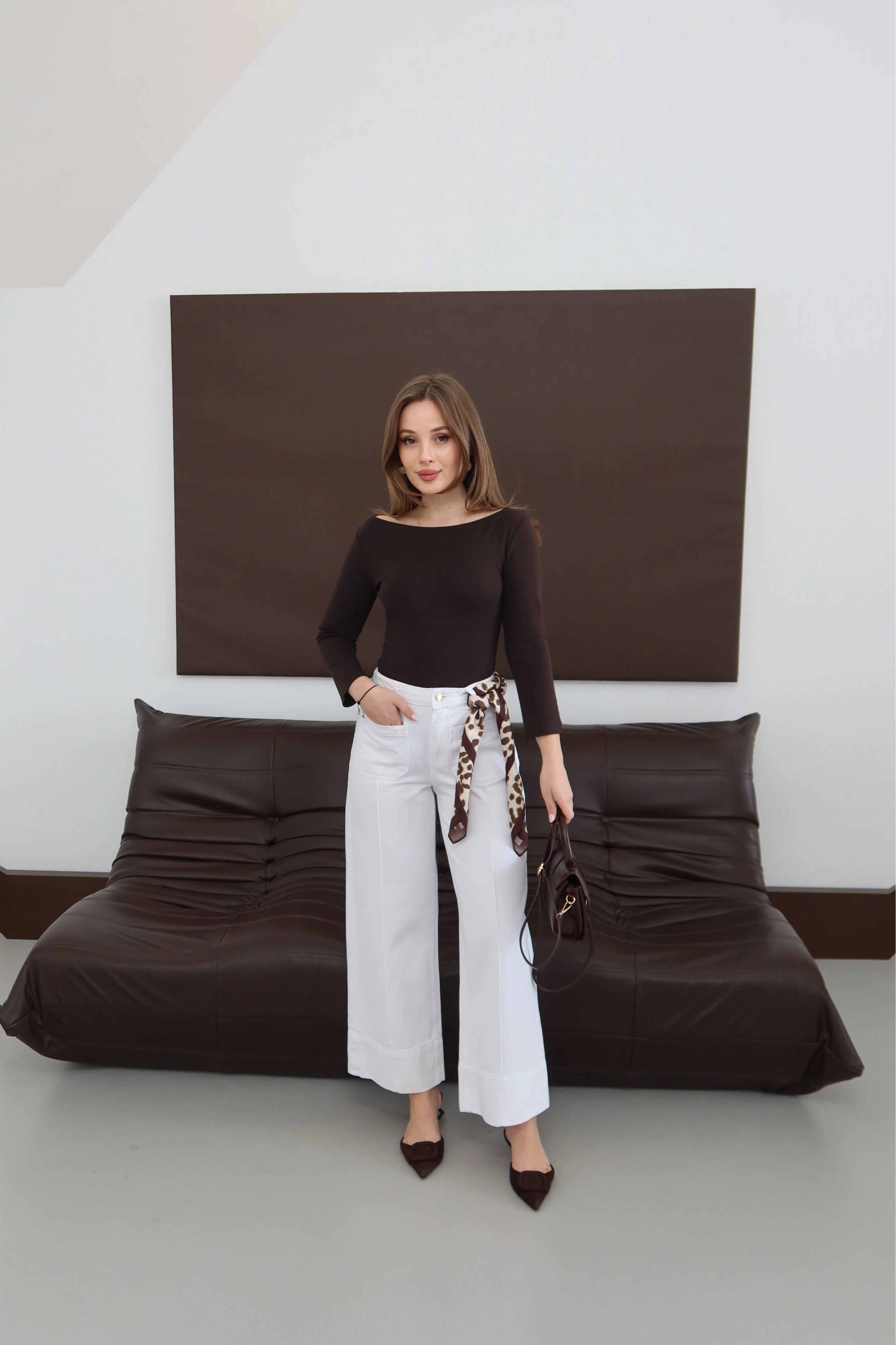 ROÉA’nın beyaz jean tasarımı, alışılagelmiş denim anlayışını ön kısımdaki karakteristik cep detayları ve paça hattındaki özgün dokunuşlarla bir üst seviyeye taşıyor. Beyazın ferahlığını yüksek kaliteli tok denim dokusuyla buluşturan bu parça, yüksek bel kalıbı sayesinde vücudu kusursuzca sarar. Ön taraftaki yama cep detayları pantolona modern bir işlevsellik katarken, paçadaki özel bitişler her adımda stilinizin altını çizer.