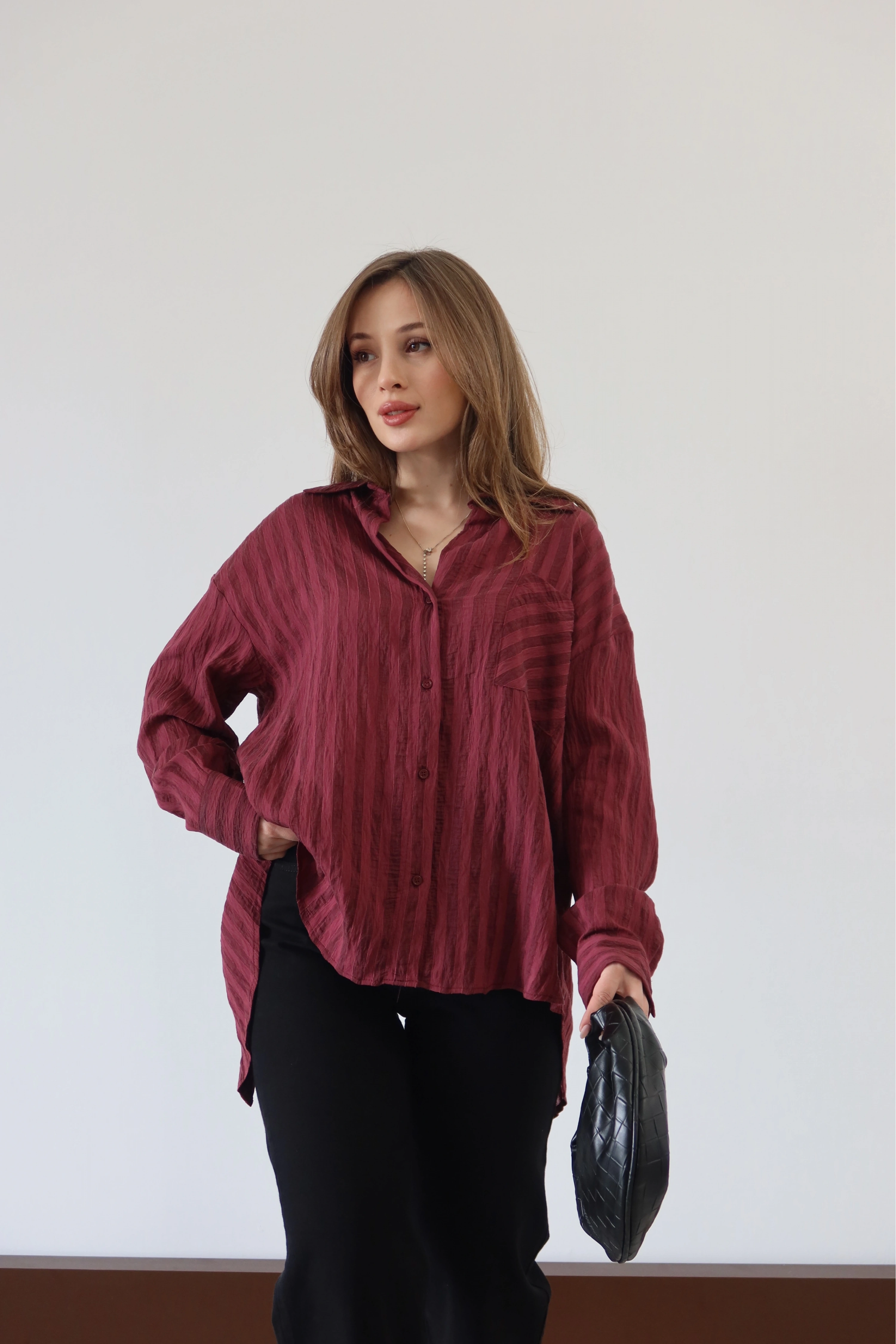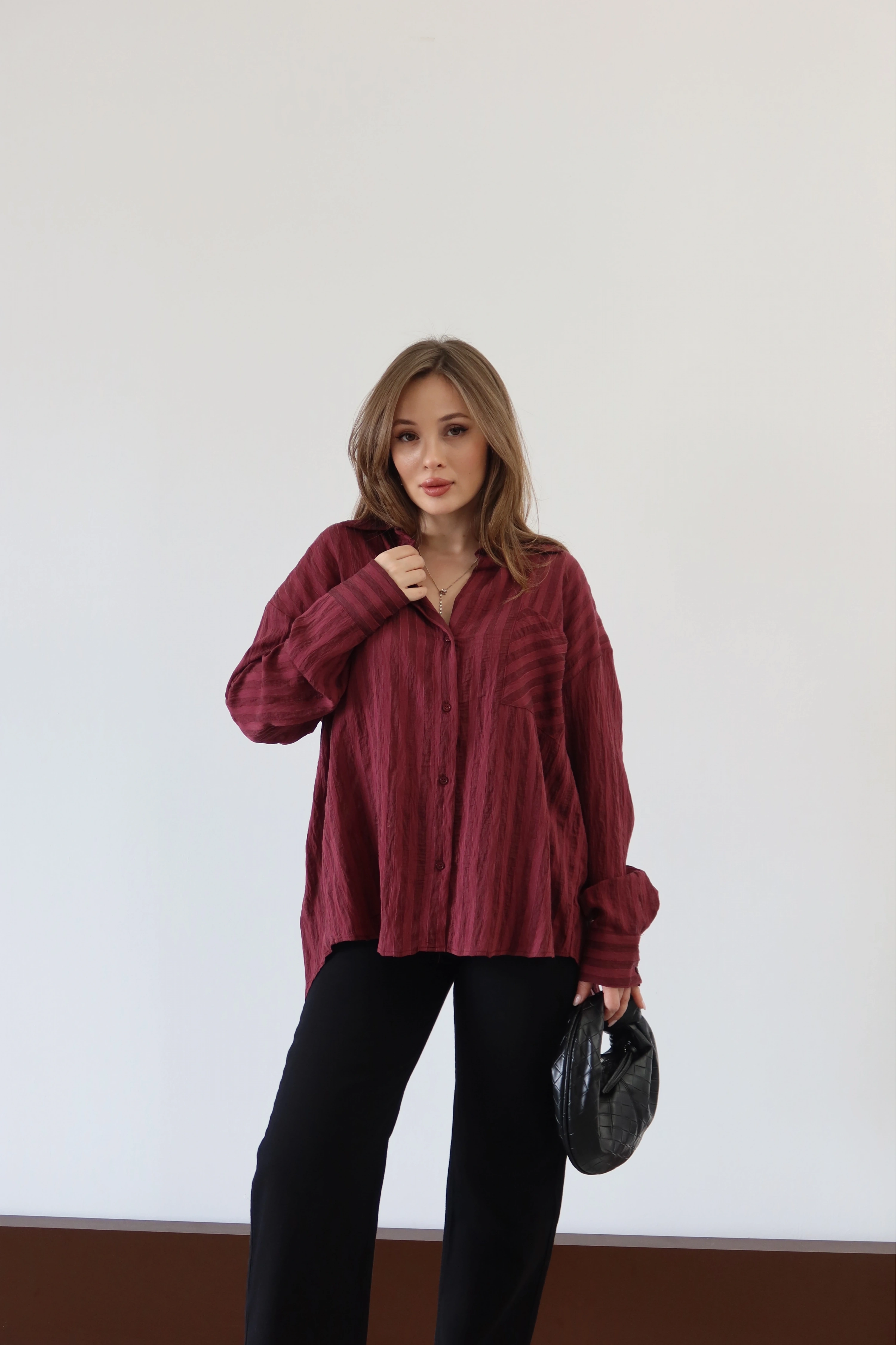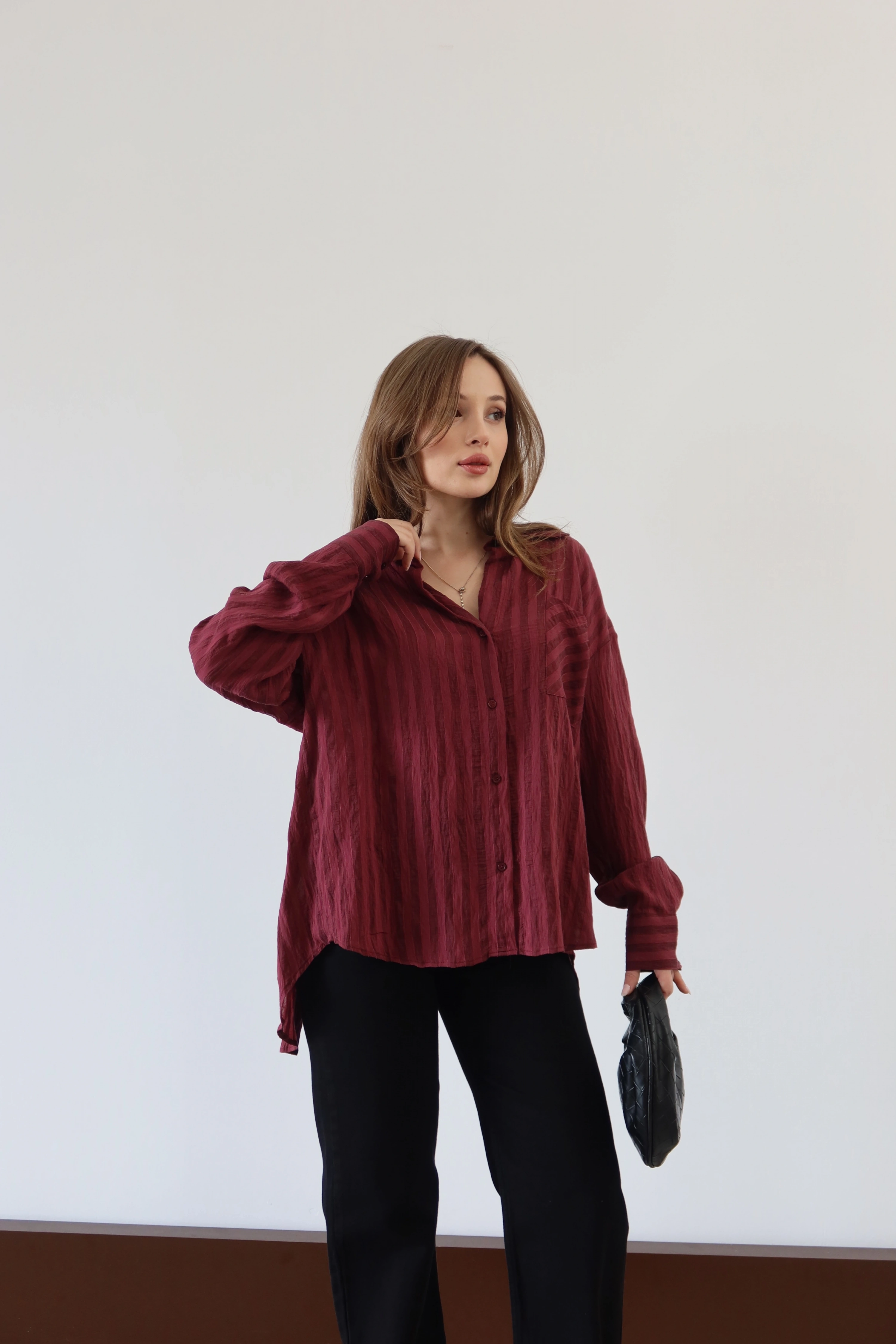 ROÉA’nın bu tasarımı, geleneksel çizgili gömlek mirasını sırt kısmındaki pencereli bağlama detayıyla yeniden yorumluyor. Ön tarafta sergilediği ciddi ve zamansız duruş, arkadaki dekolte ve zarif bağlama şeritleriyle sofistike bir karaktere bürünüyor. Nefes alan pamuklu dokusu ve rahat kesimi, ofis şıklığından akşamüstü buluşmalarına zahmetsizce geçiş yapmanızı sağlıyor.