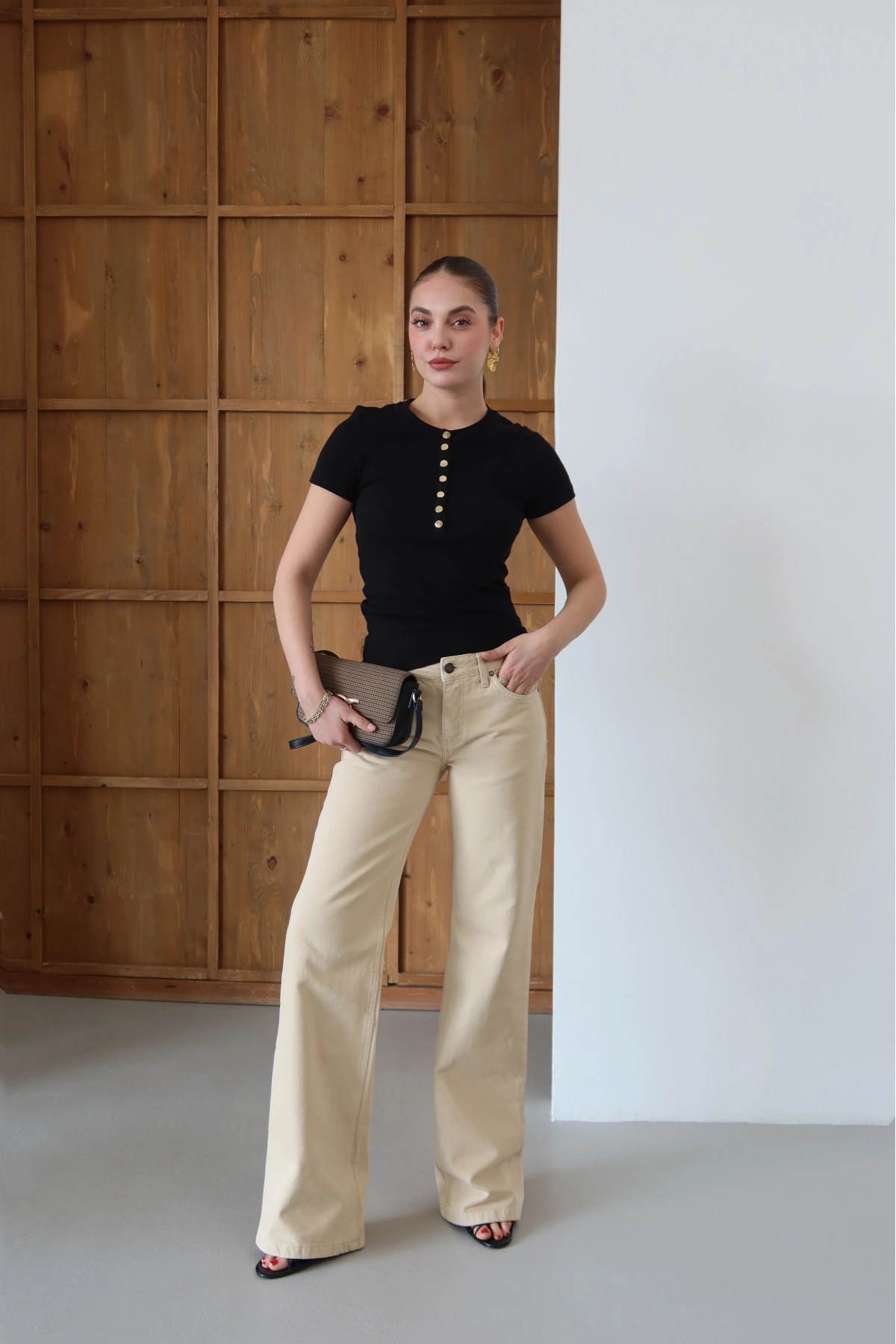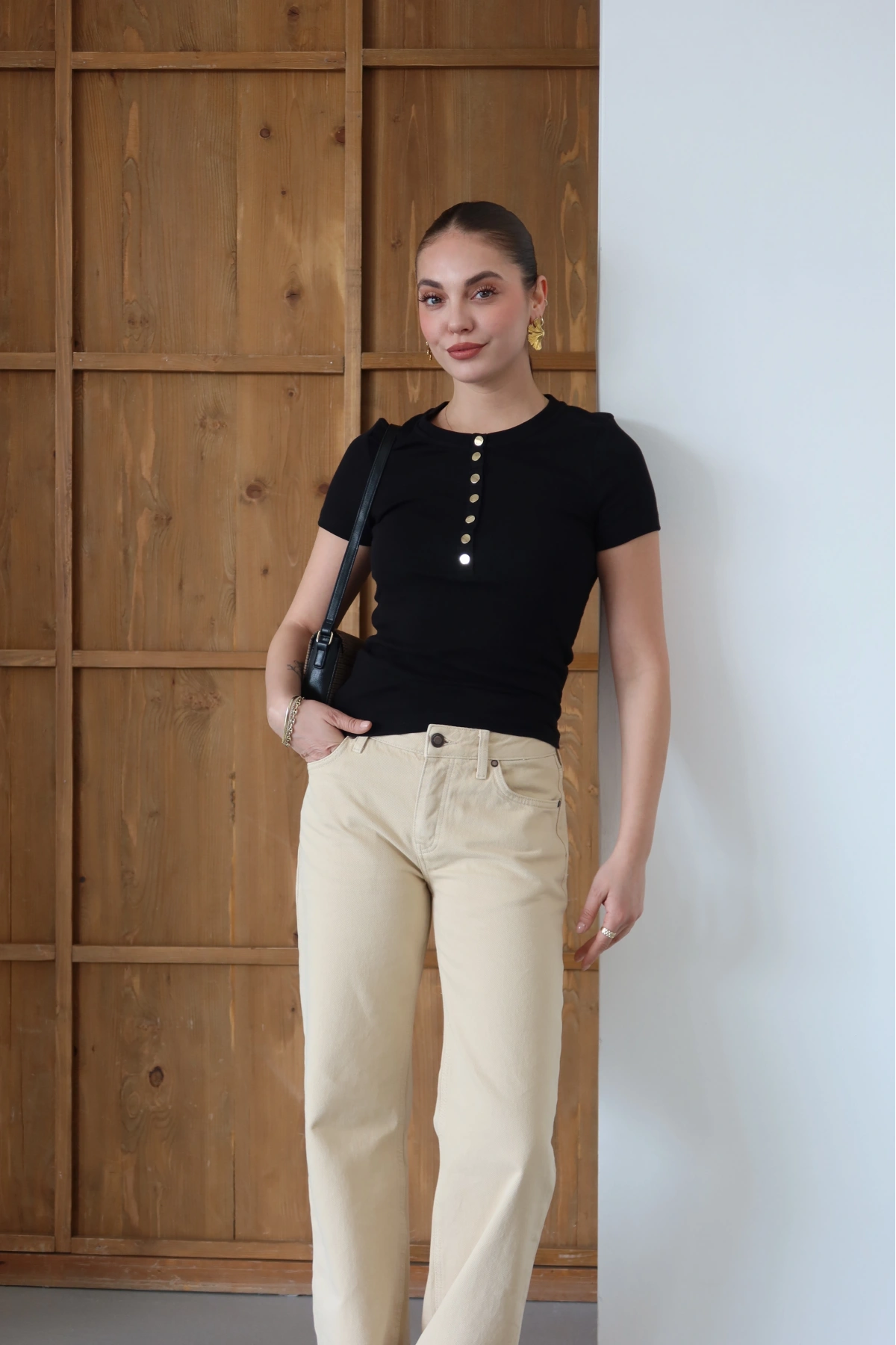 Önü Çıtçıtlı T-shirt Siyah