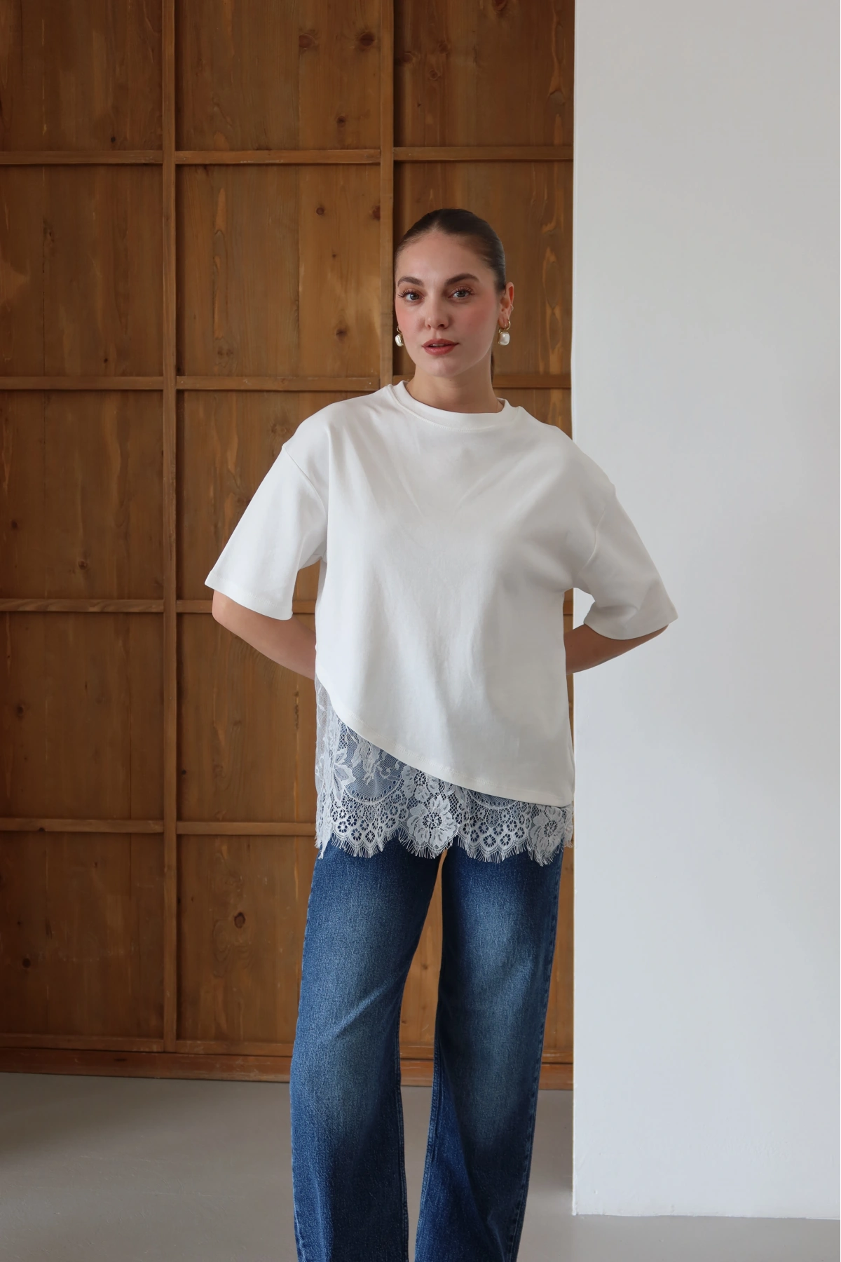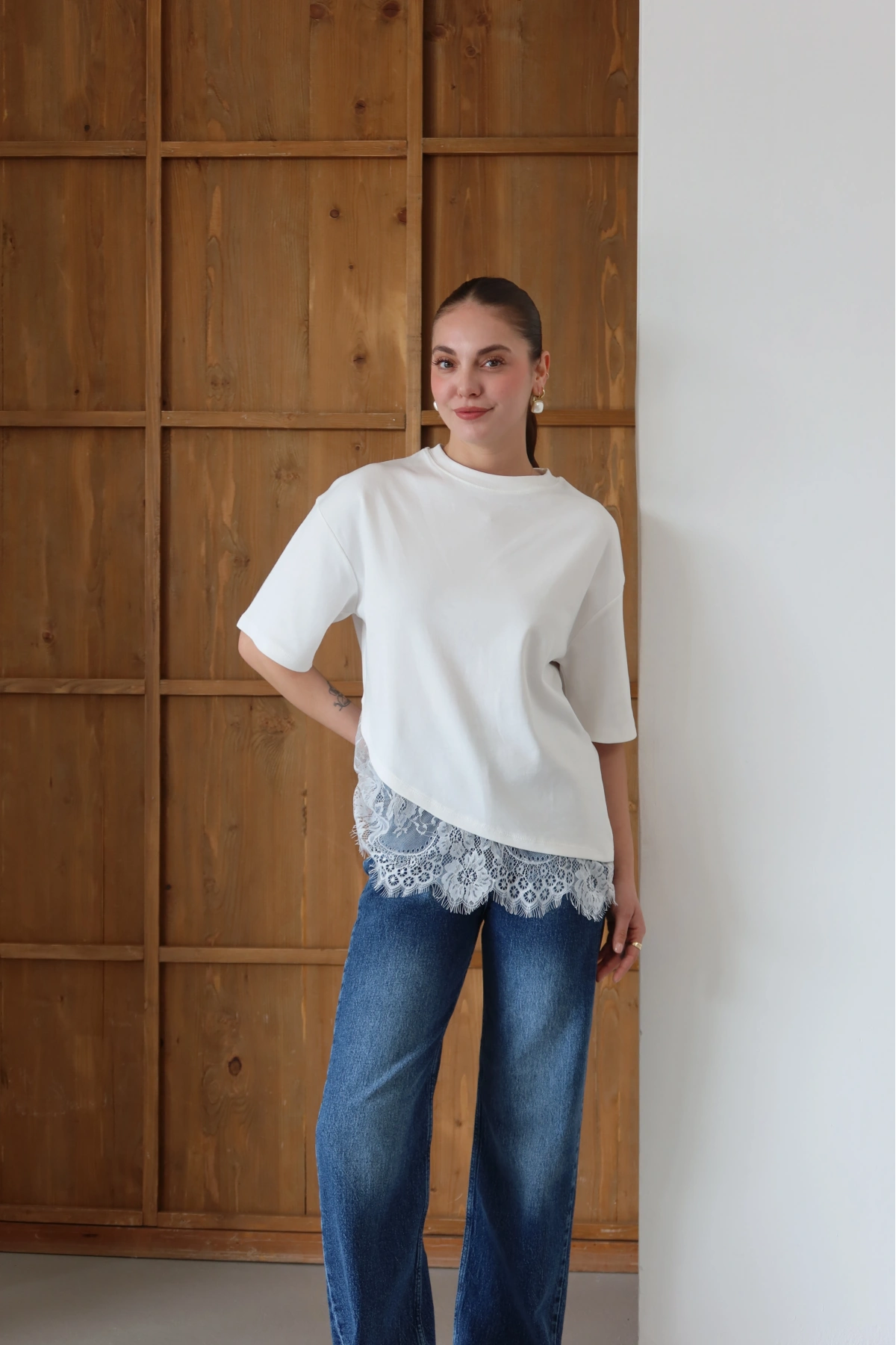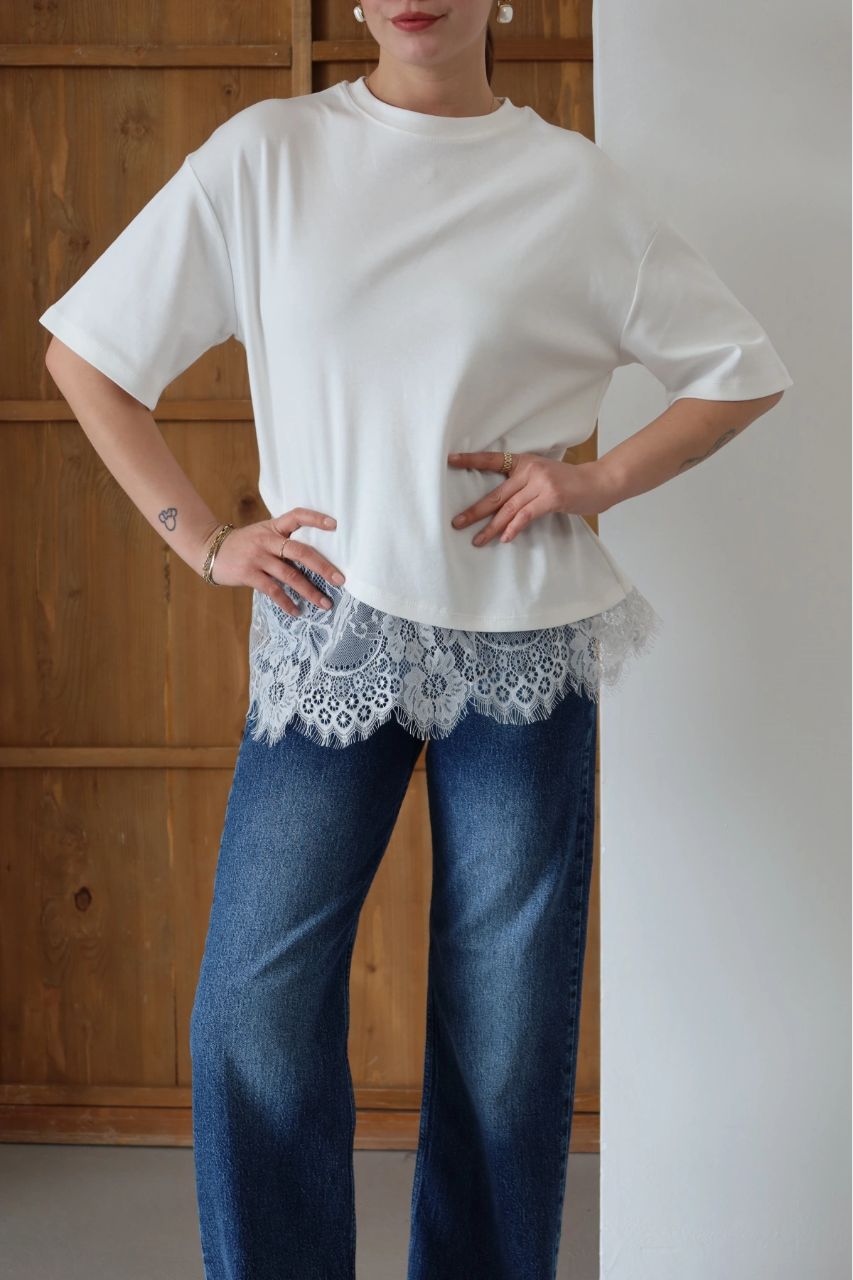 Eteği Dantelli T-shirt Beyaz