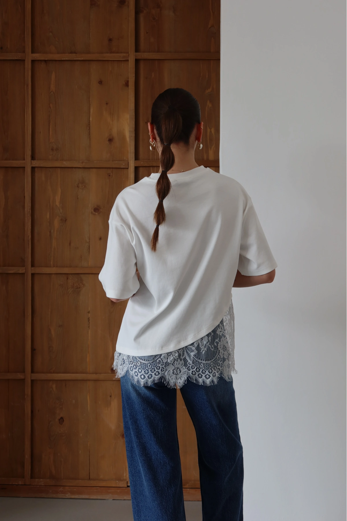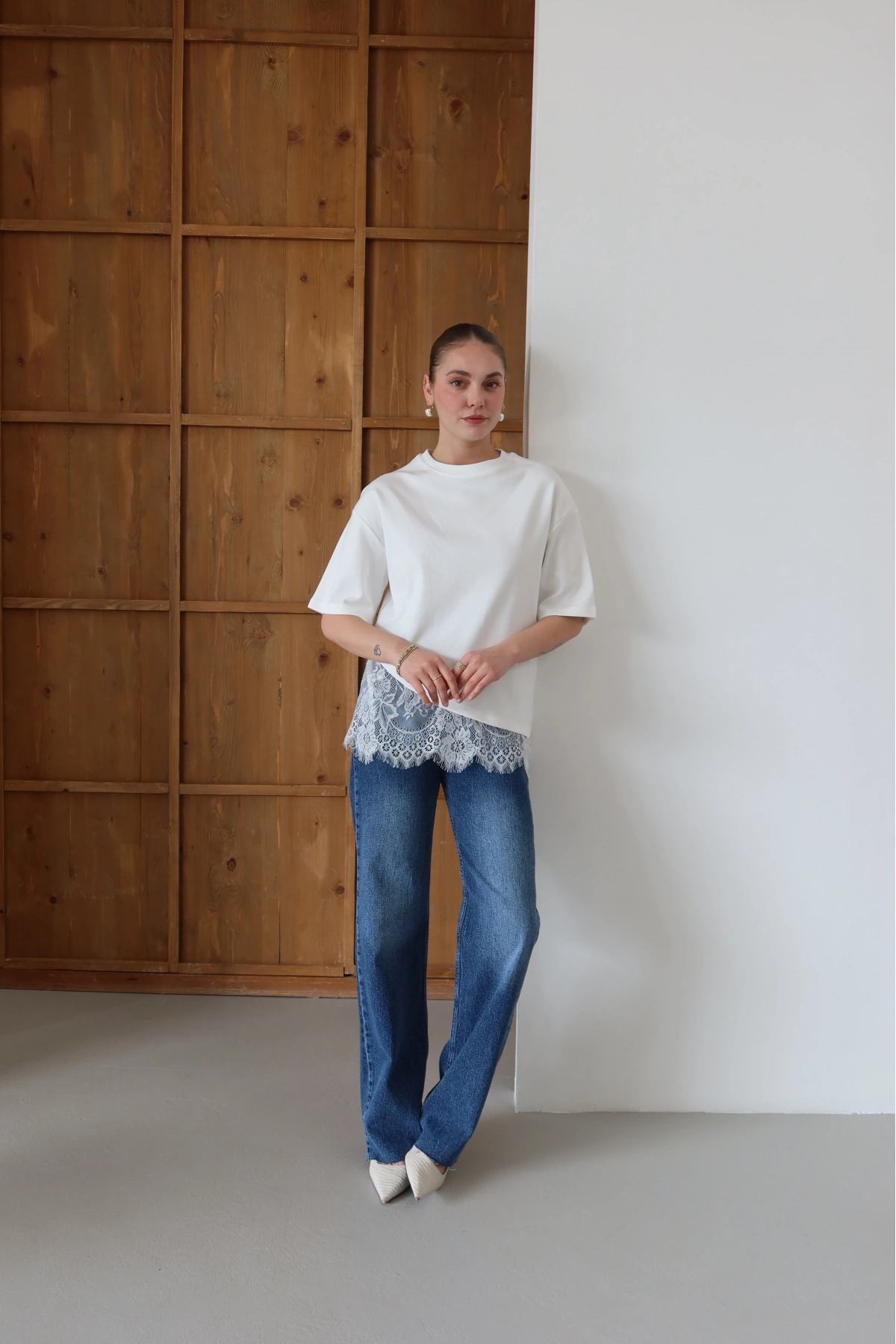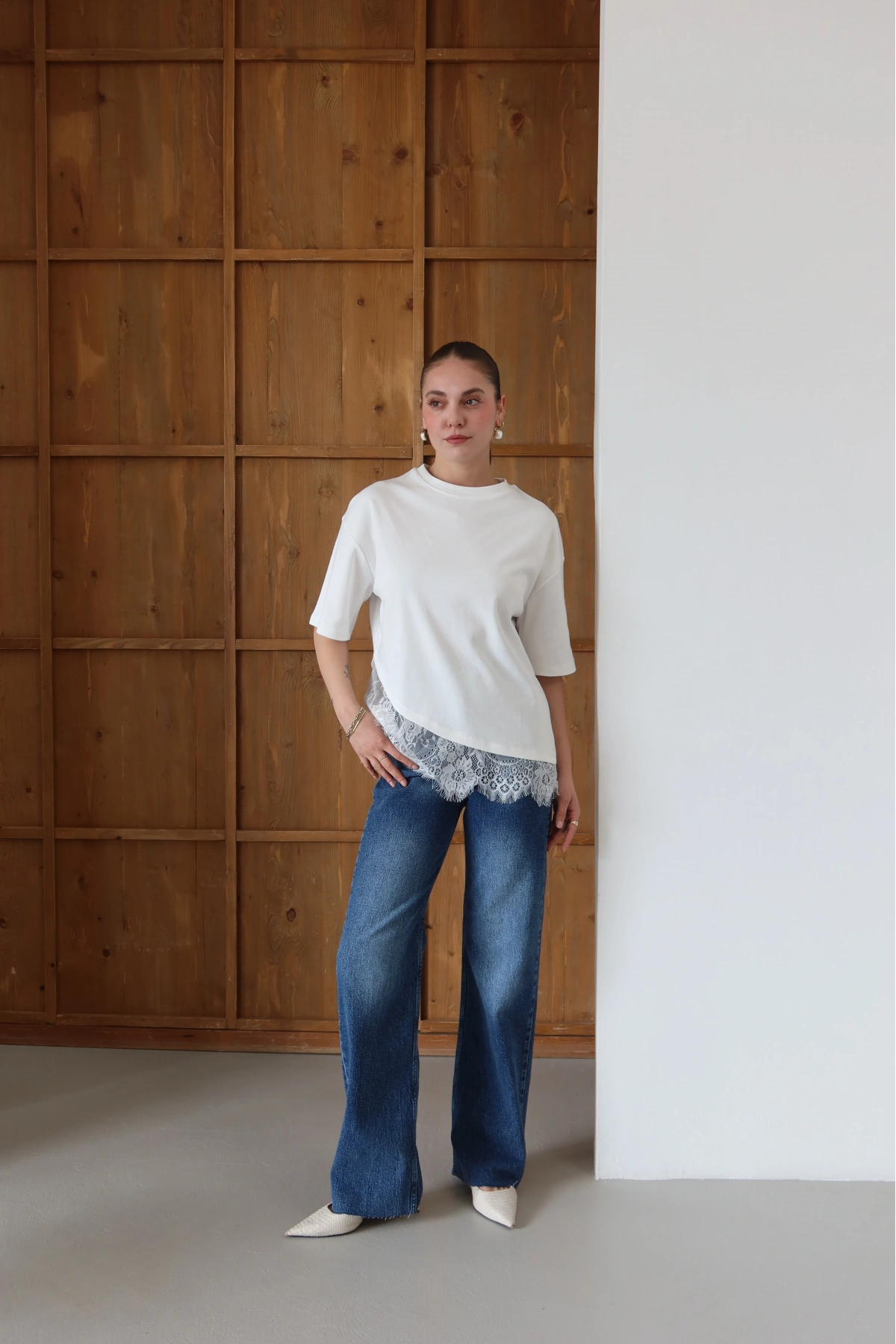 Eteği Dantelli T-shirt Beyaz