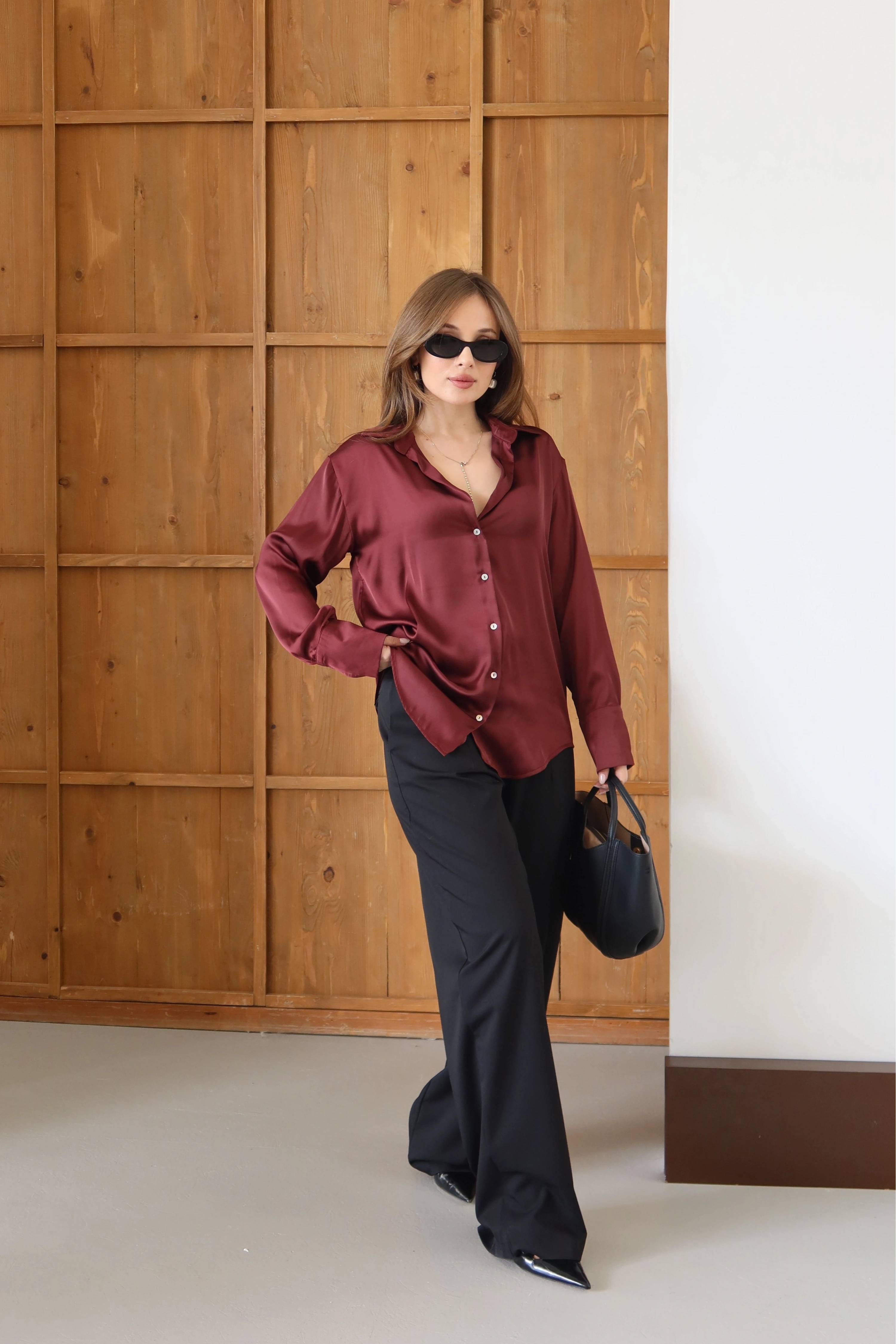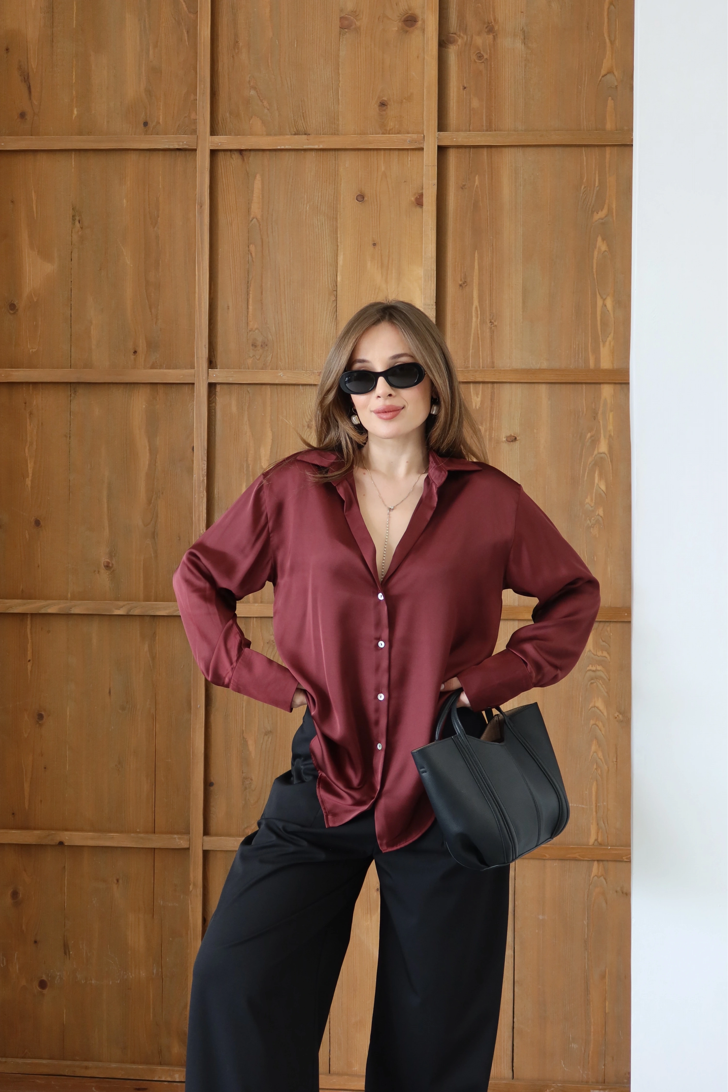 ROÉA’nın Premium serisine ait bu saten gömlek, sıradanlığın ötesine geçmek isteyen kadınlar için tasarlandı. Yüksek gramajlı, birinci sınıf saten dokusu sayesinde vücutta ağır ve asil bir döküm sergiler. V yaka kesimi, dekolteye zarif bir derinlik katarken, kumaşın ipeksi yumuşaklığı teninizde lüks bir his bırakır. Gündüzden geceye, ofisten davete her anınıza eşlik edecek bir kalite yatırımı.