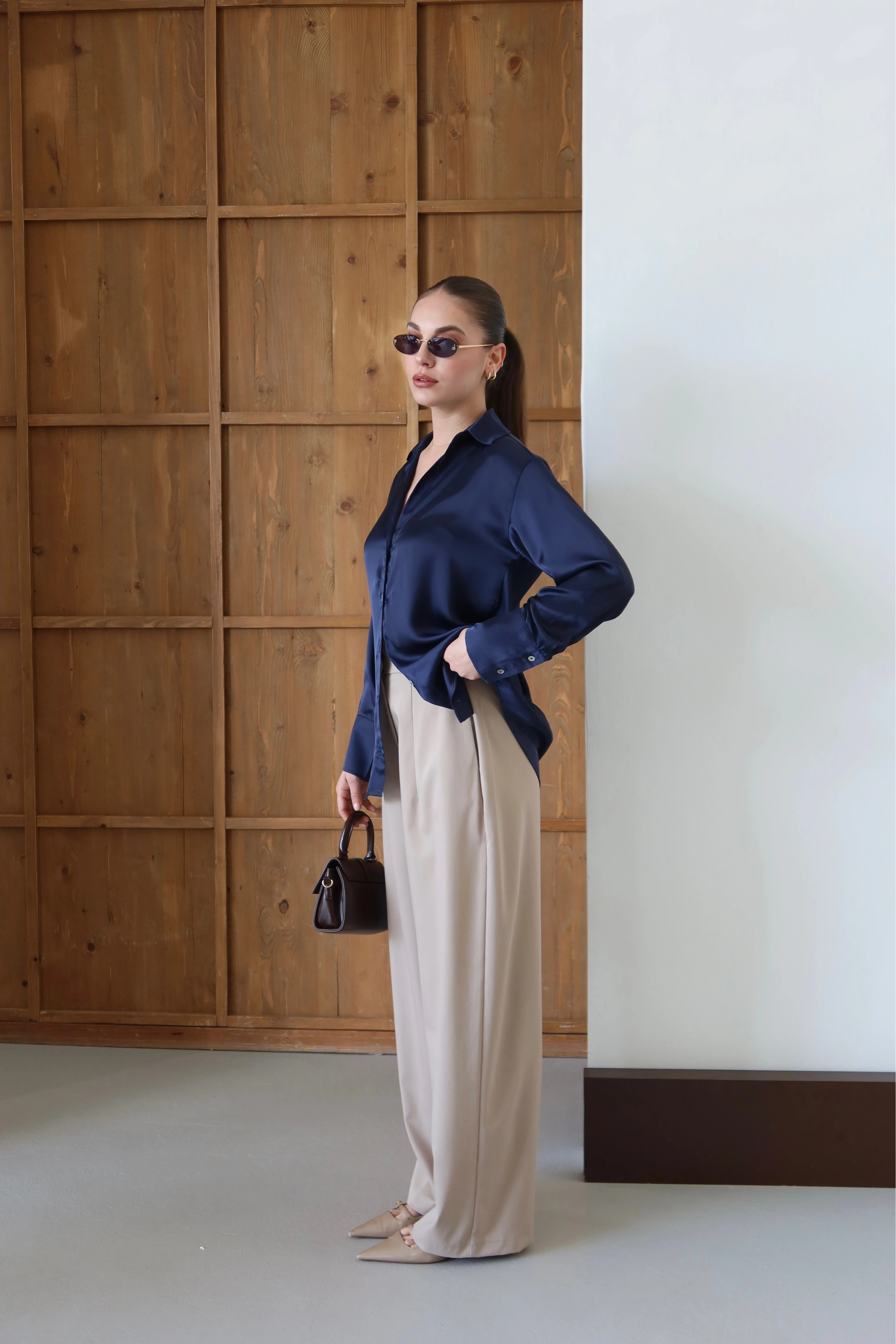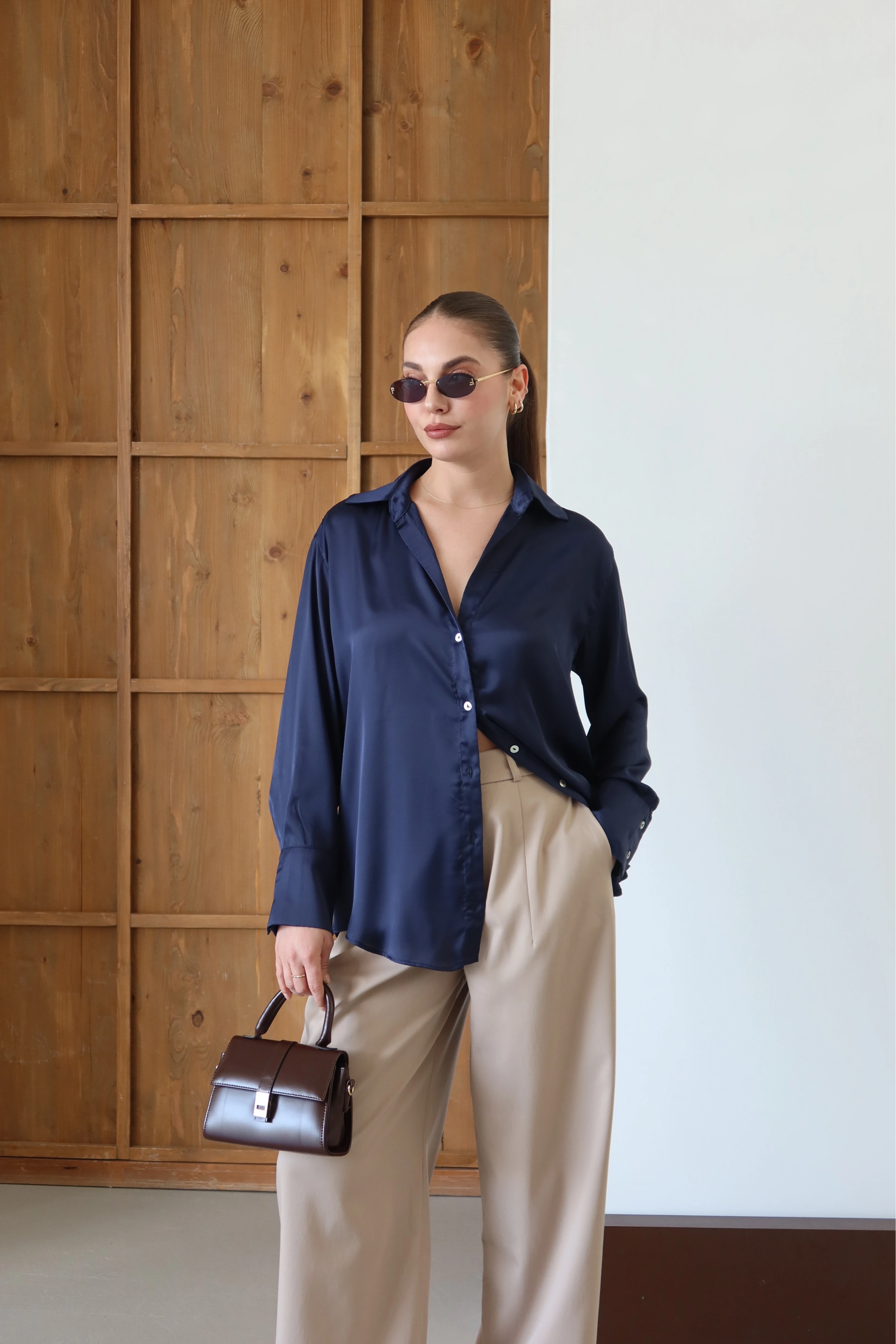 ROÉA’nın Premium serisine ait bu saten gömlek, sıradanlığın ötesine geçmek isteyen kadınlar için tasarlandı. Yüksek gramajlı, birinci sınıf saten dokusu sayesinde vücutta ağır ve asil bir döküm sergiler. V yaka kesimi, dekolteye zarif bir derinlik katarken, kumaşın ipeksi yumuşaklığı teninizde lüks bir his bırakır. Gündüzden geceye, ofisten davete her anınıza eşlik edecek bir kalite yatırımı.