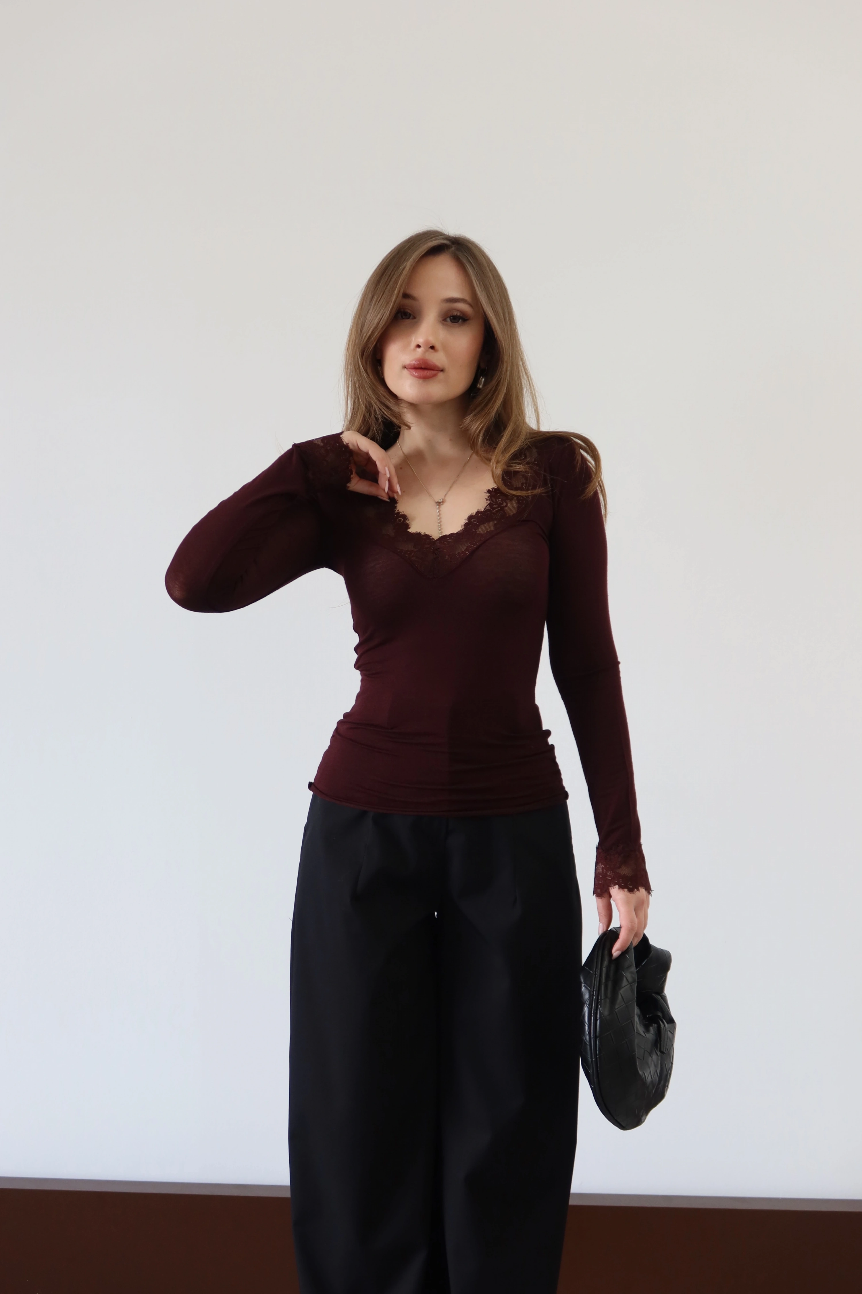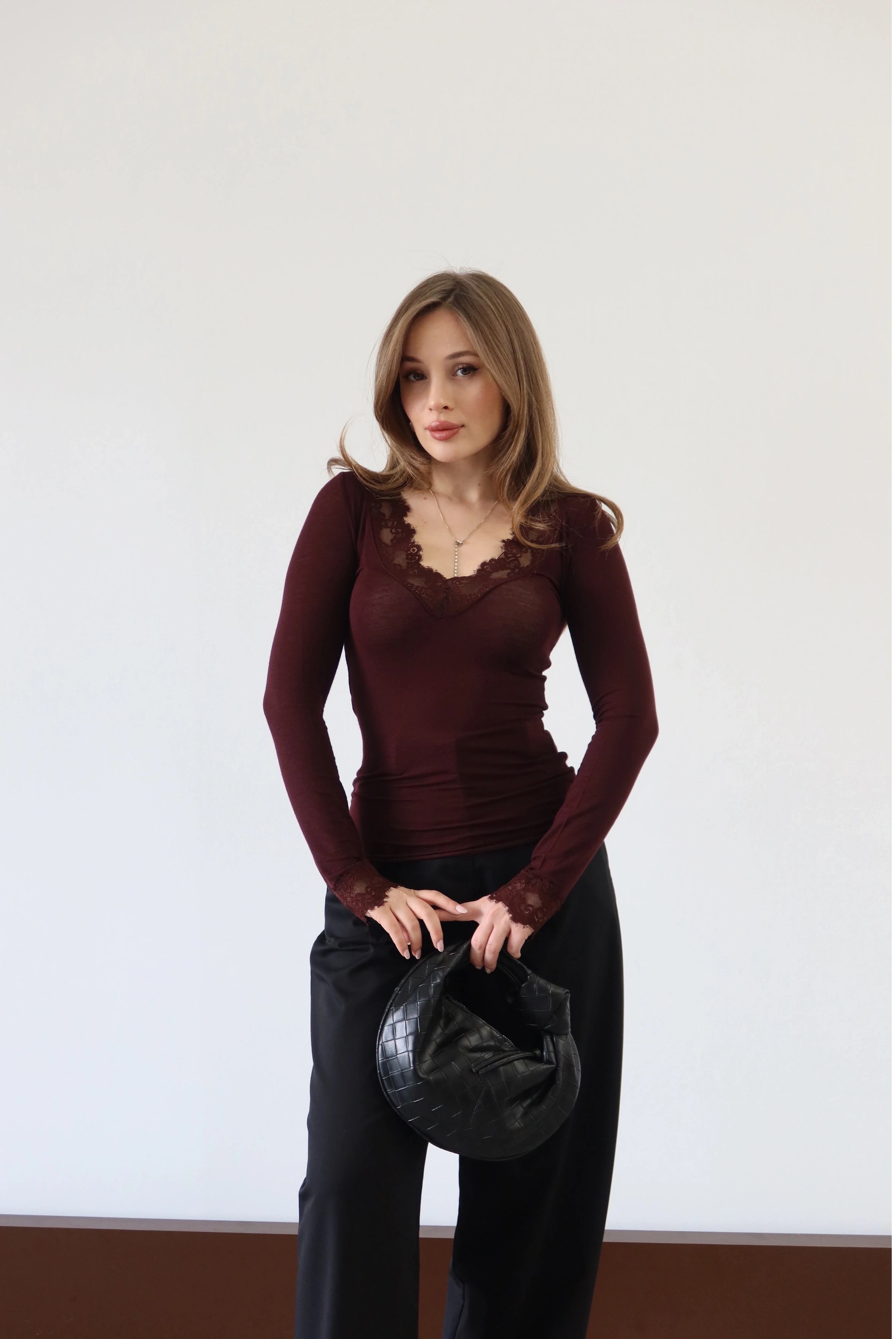 ROÉA’nın romantik seçkisinde parlayan bu bluz, yakasındaki ince işçilikli dantel detayıyla feminen bir hikaye anlatıyor. Teninizde yokmuş hissi uyandıran incecik dokusu, gün boyu konfor sağlarken; dantelli yakası yüzünüze aydınlık ve zarif bir çerçeve sunar. Hem ceket içlerinde şık bir detay, hem de tek başına bir zarafet sembolü.