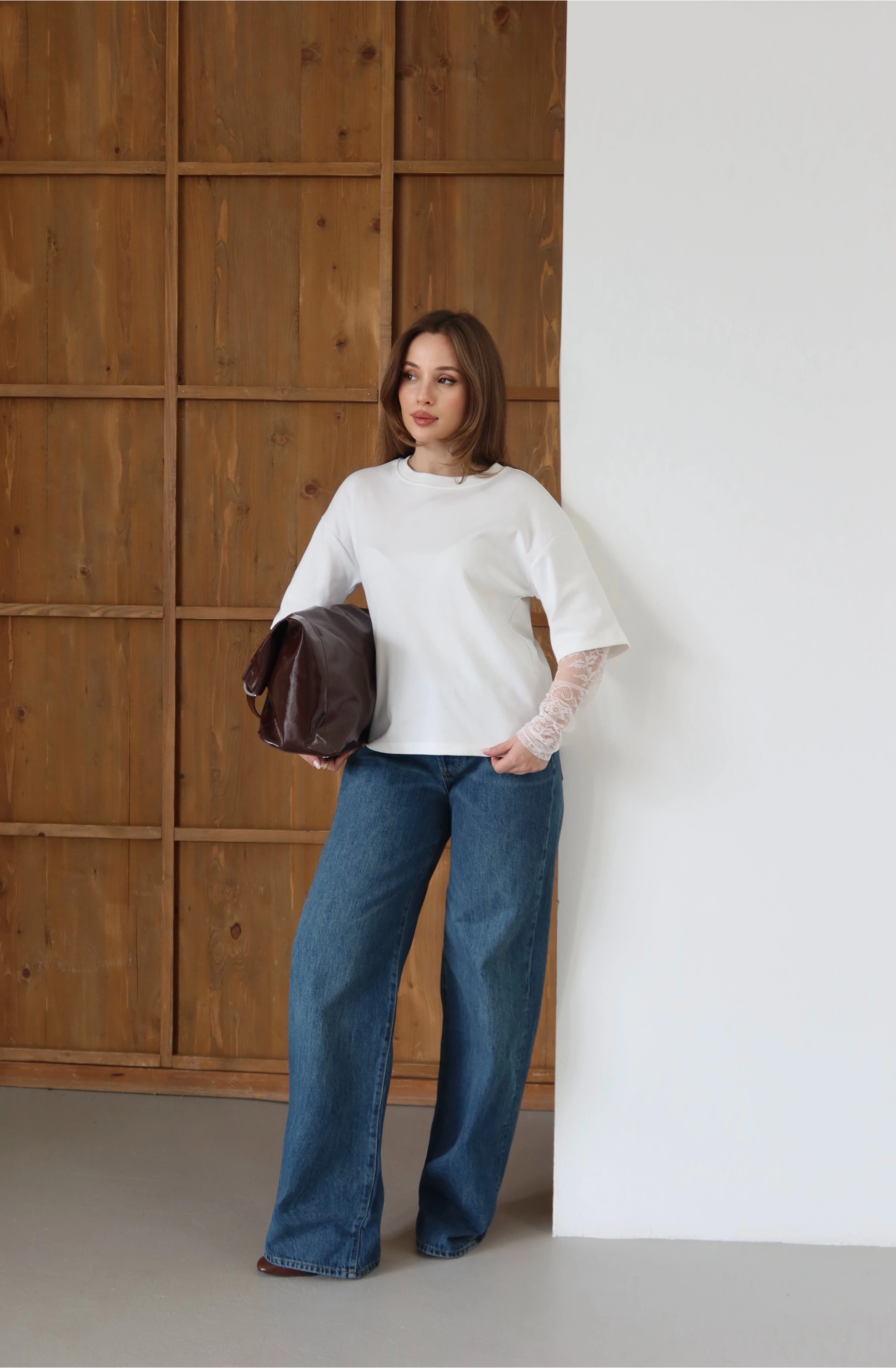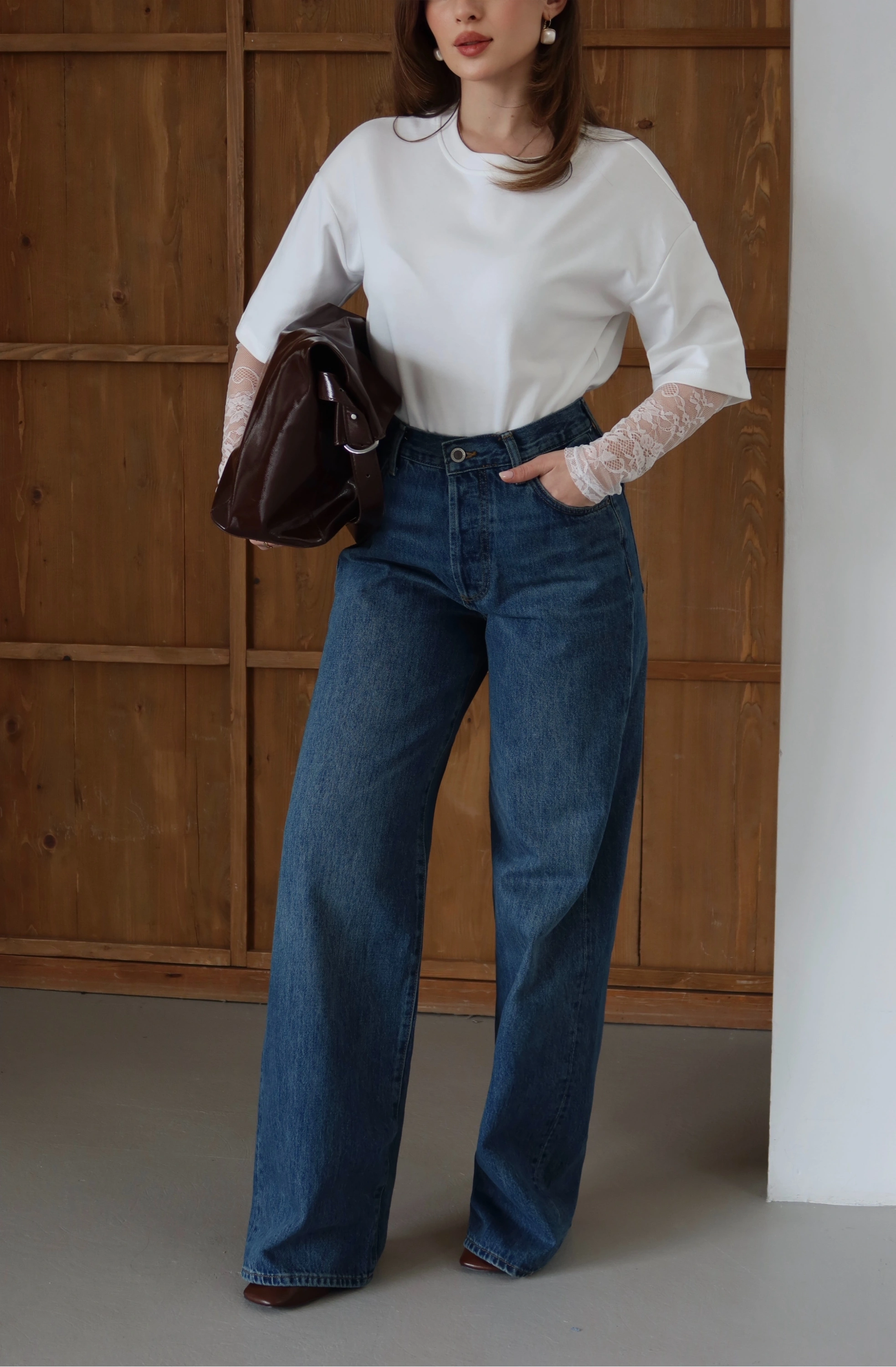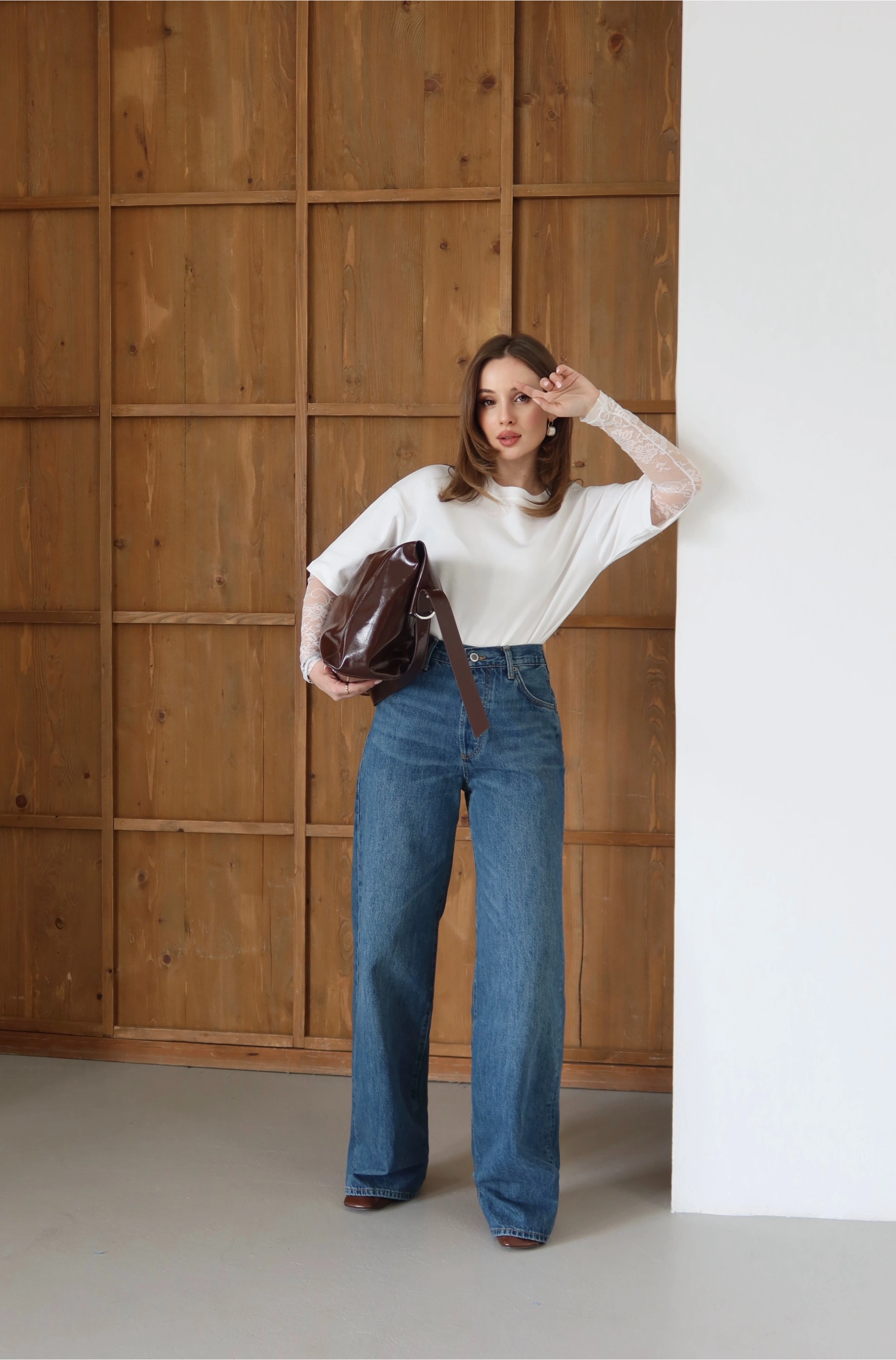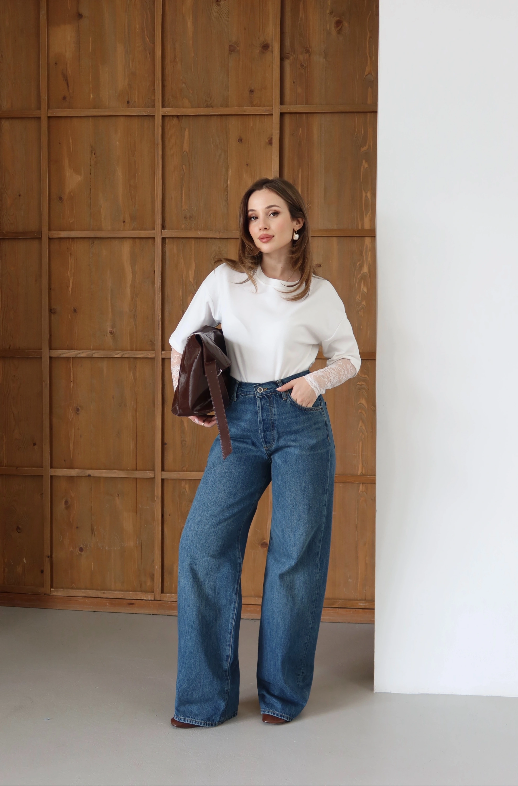 Detay: Bel hattını yücelten yüksek bel kalıbı ve adımlara karakter katan geniş paça.